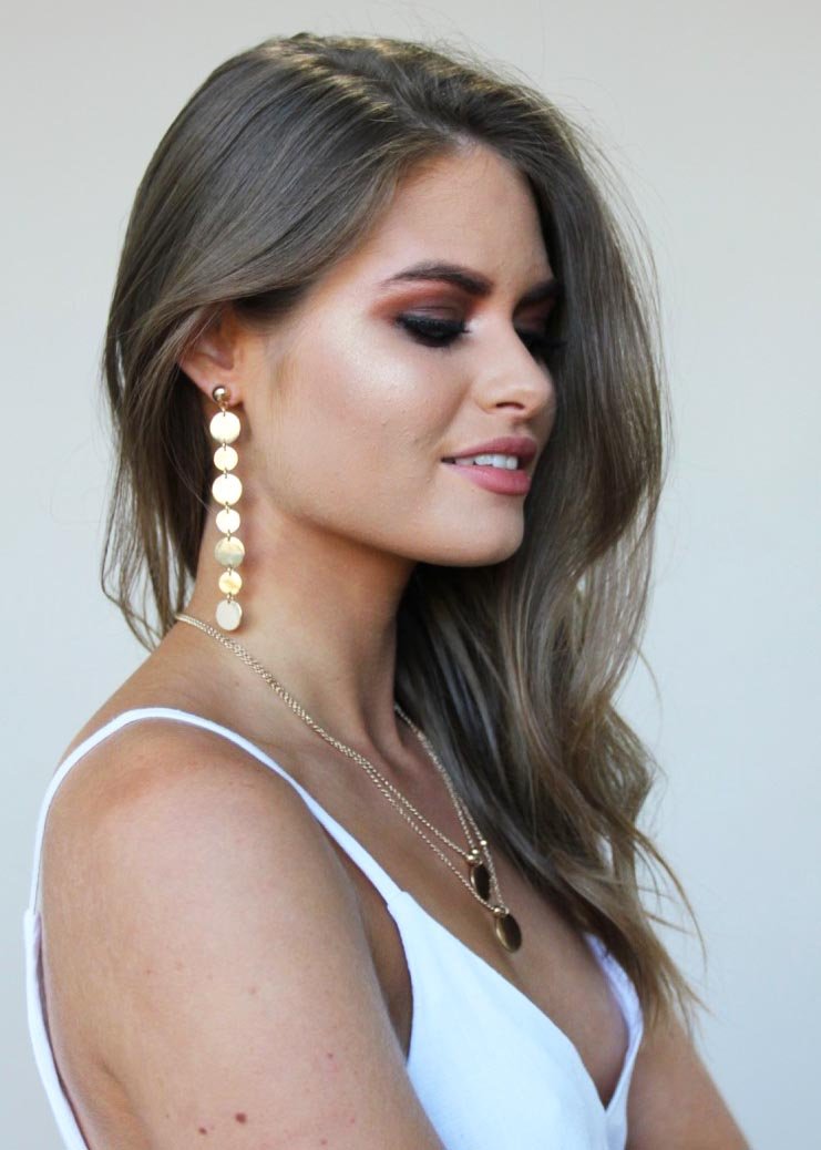 The gorgeous shoulder-skimming Aje earrings features polished gold-coloured discs in a single row that are sure to catch the light with every move. Team it with our Karmella Blouse for an glam evening look.