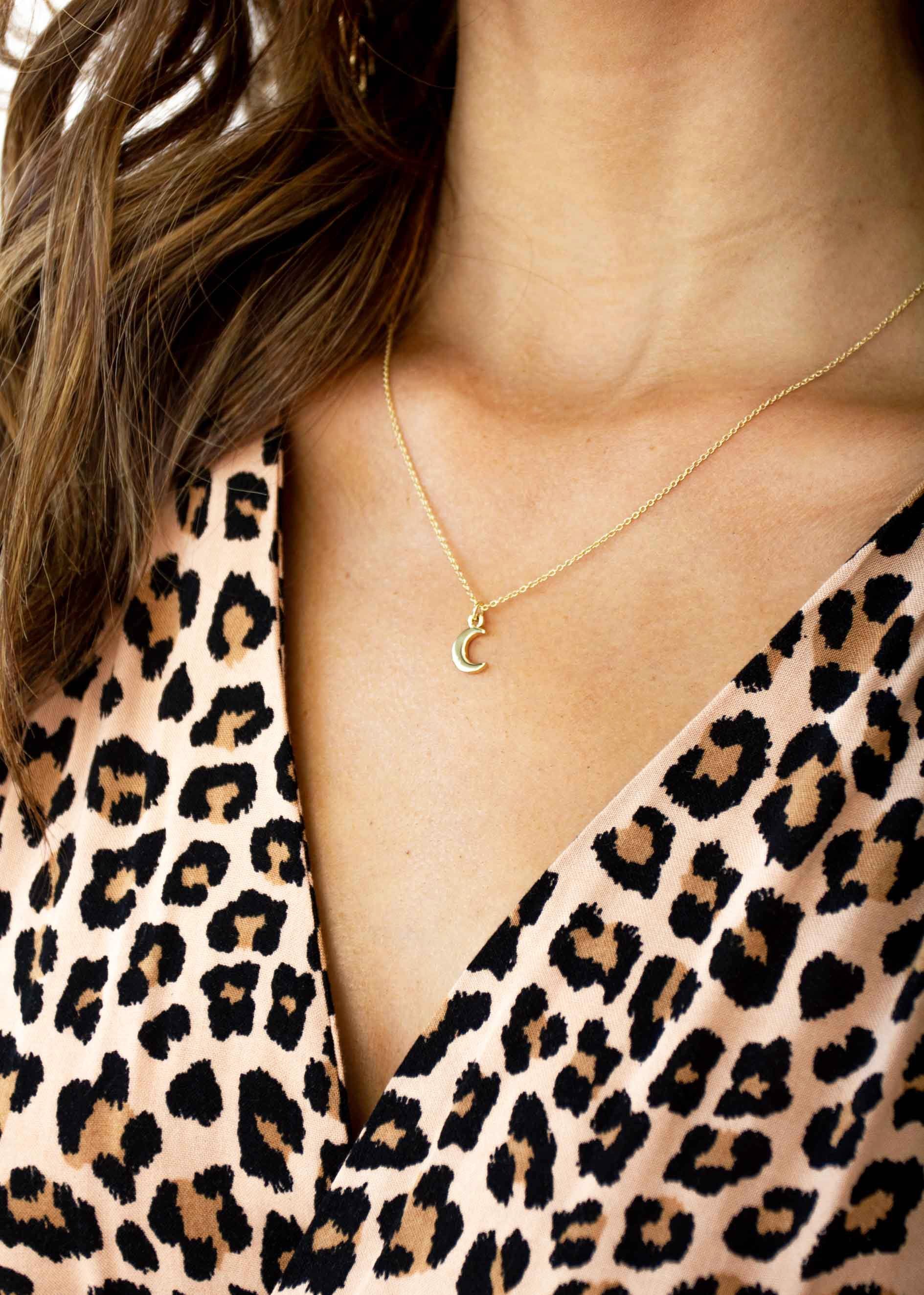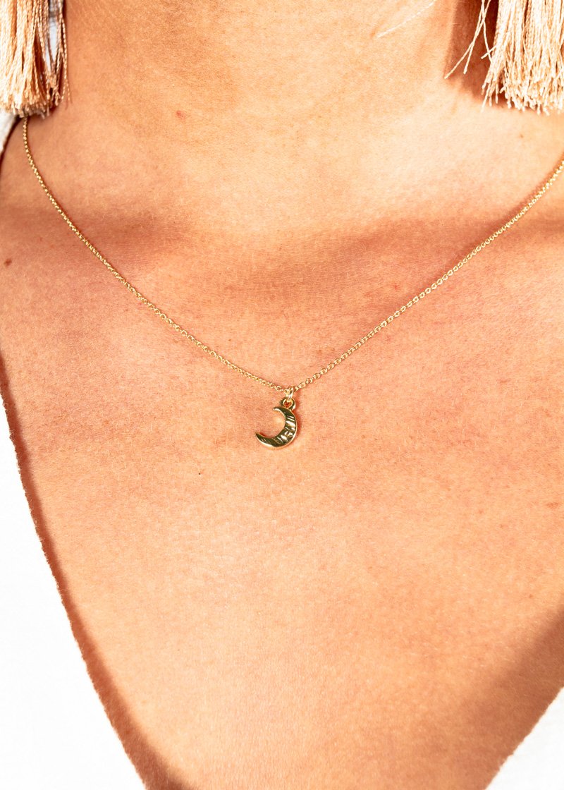 The Stargazer Necklace features one layer of fine chain with a flat crescent moon pendant.