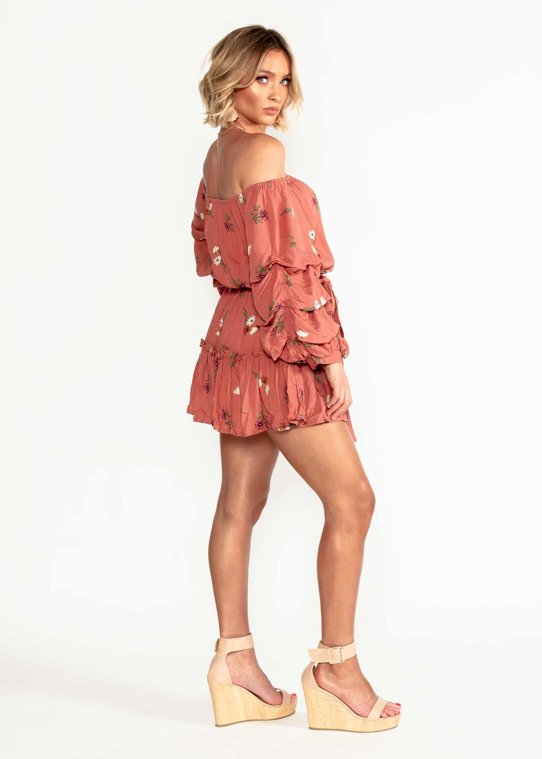 Gorgeous rose print dress with frill sleeve and cute waist tie, worn with or without tie. Staff Favourite.
