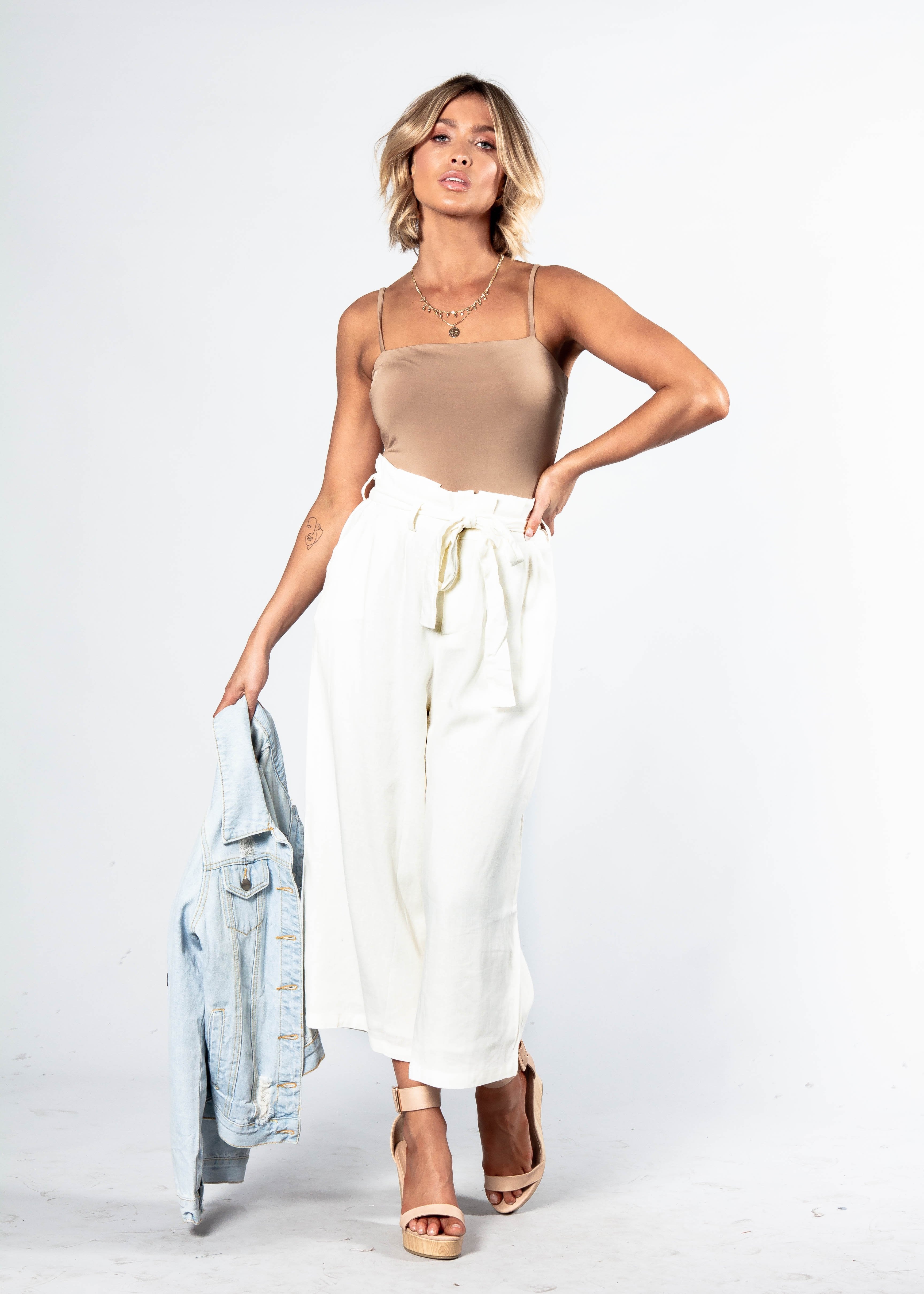 This fabulous bodysuit is our favourite. With a trending square neckline and spaghetti straps, it can be worn on a night out or with a jacket and skinny leg jeans. A thin swimsuit-like fabric with slight sheen. Also available in khaki and black.