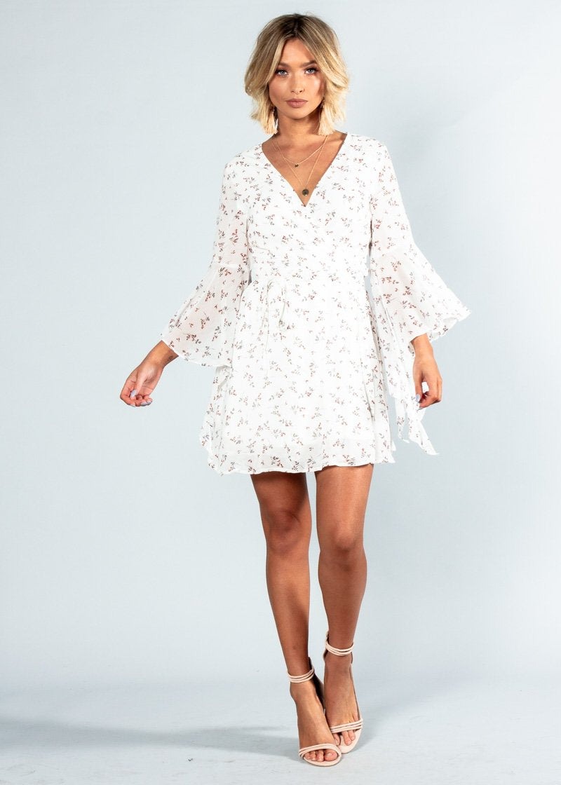 Pretty Posy Wrap Dress - White Floral