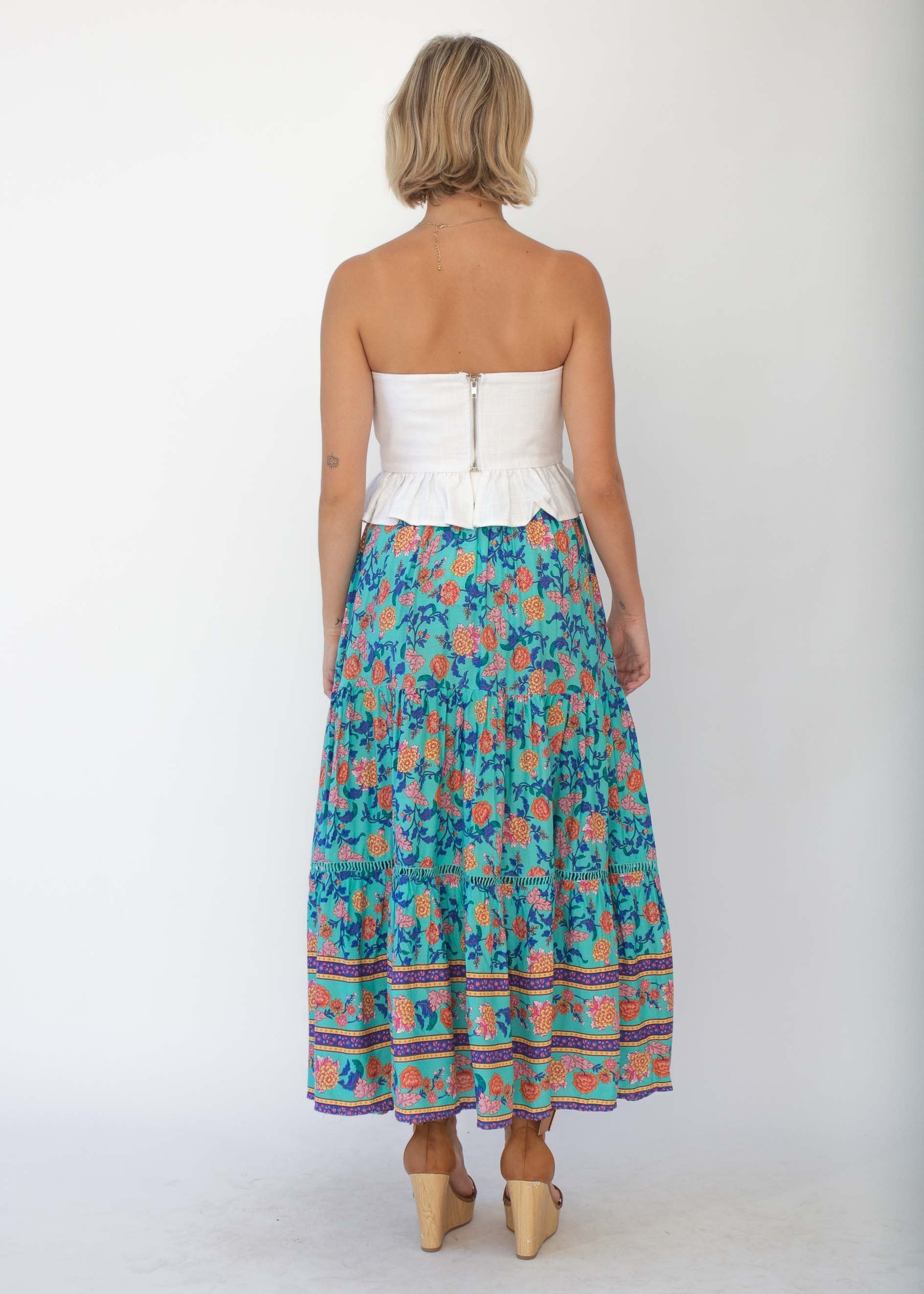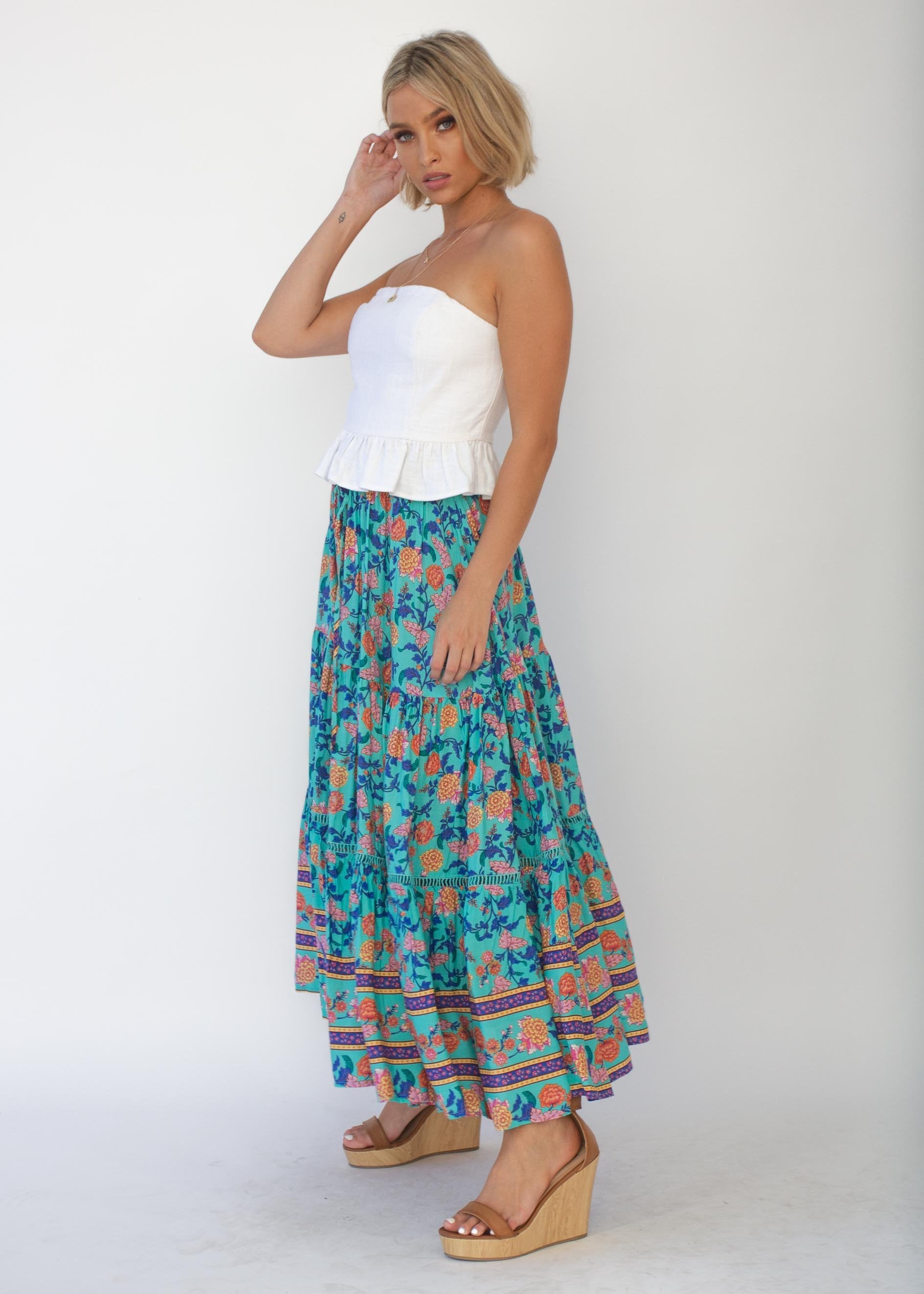 Josie Midi Skirt - Teal Garden
