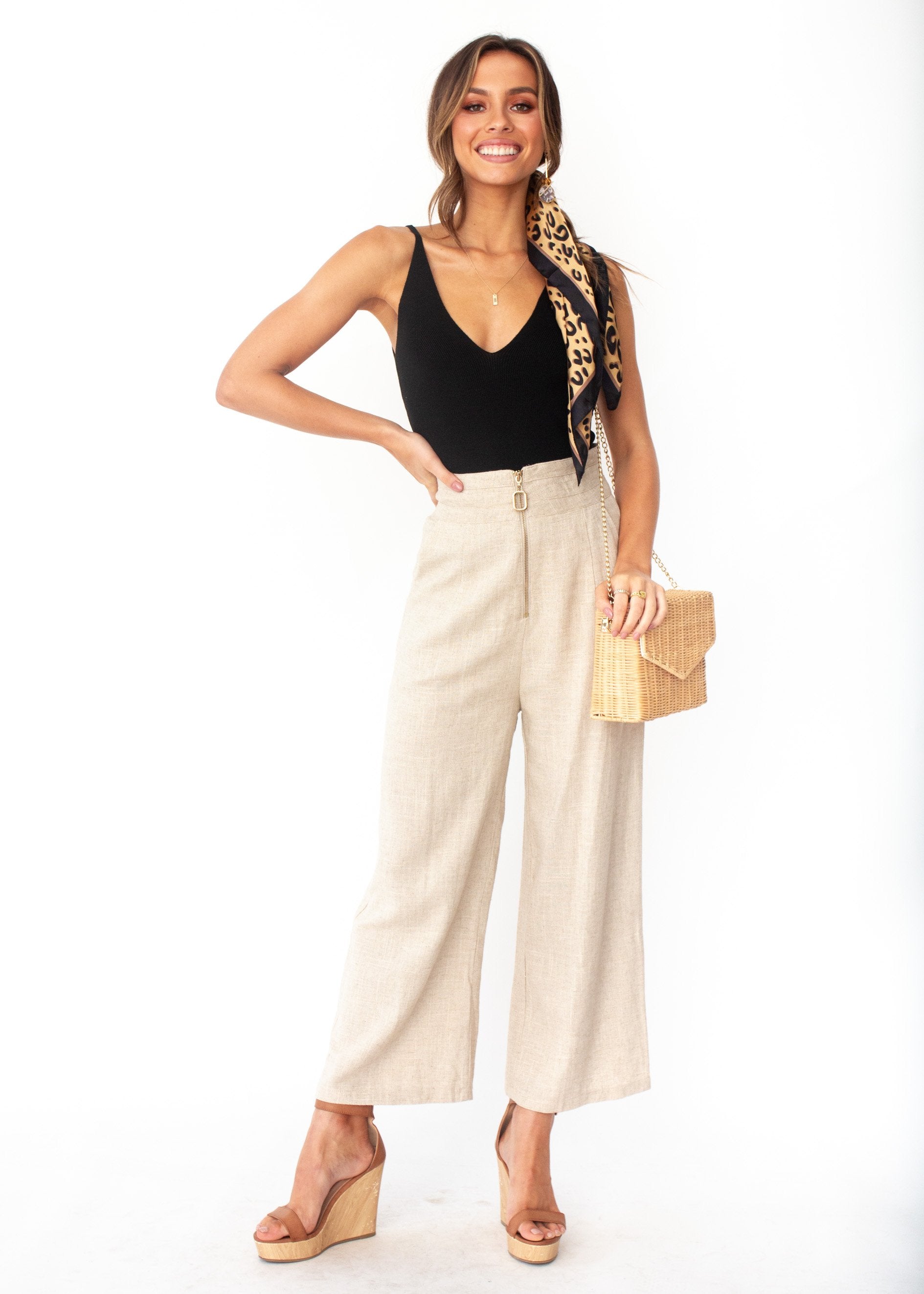 These natural coloured pants with an exposed front zip statement will be your favourite bottoms all season long.