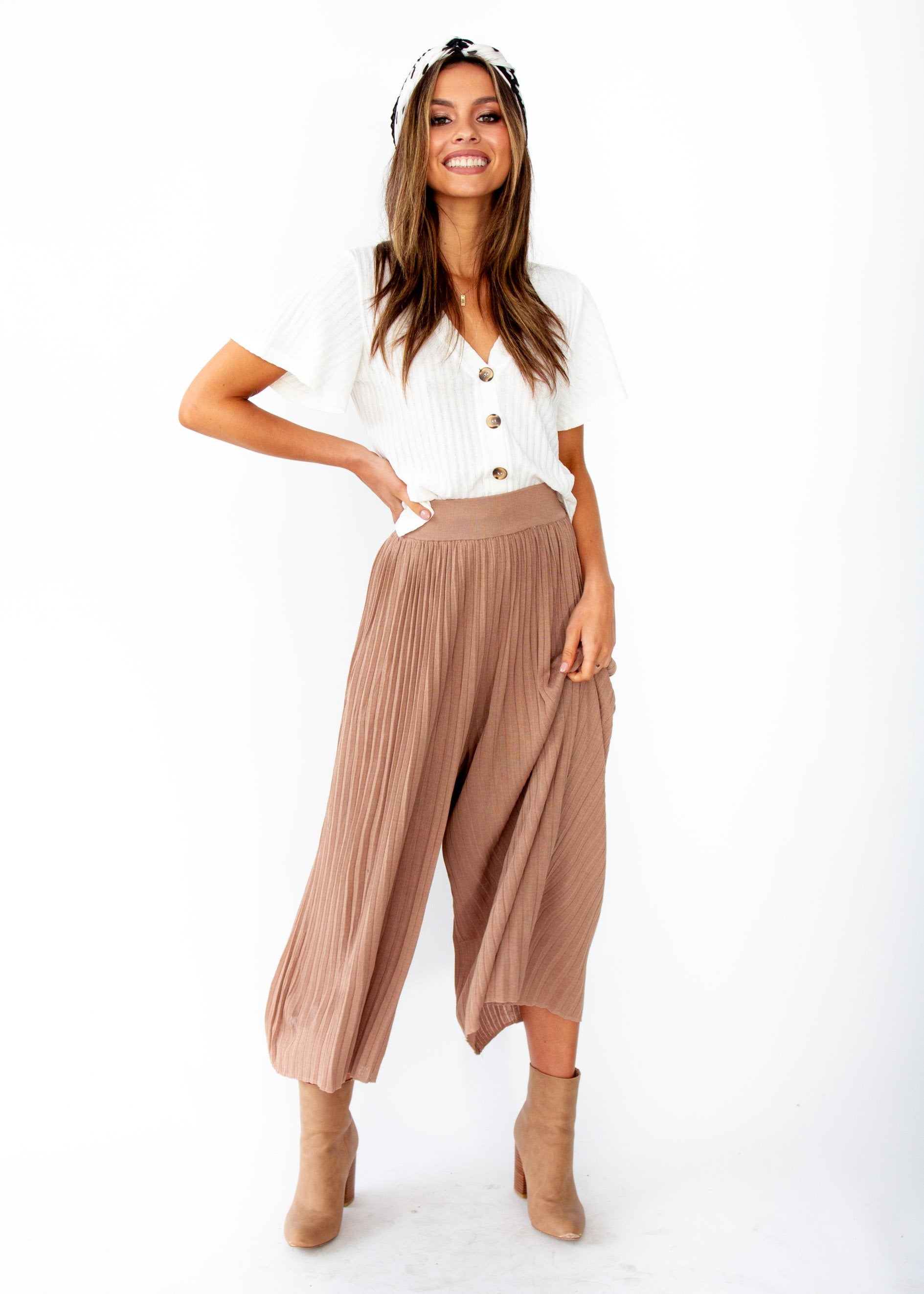 These comfy, easy-to-wear yet super stylish mocha knit culottes will be your go-to all season long.