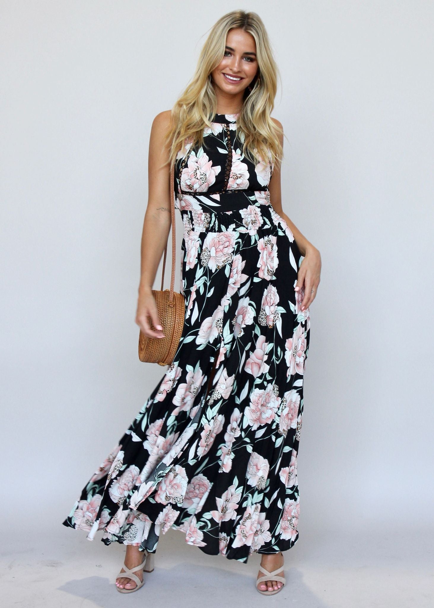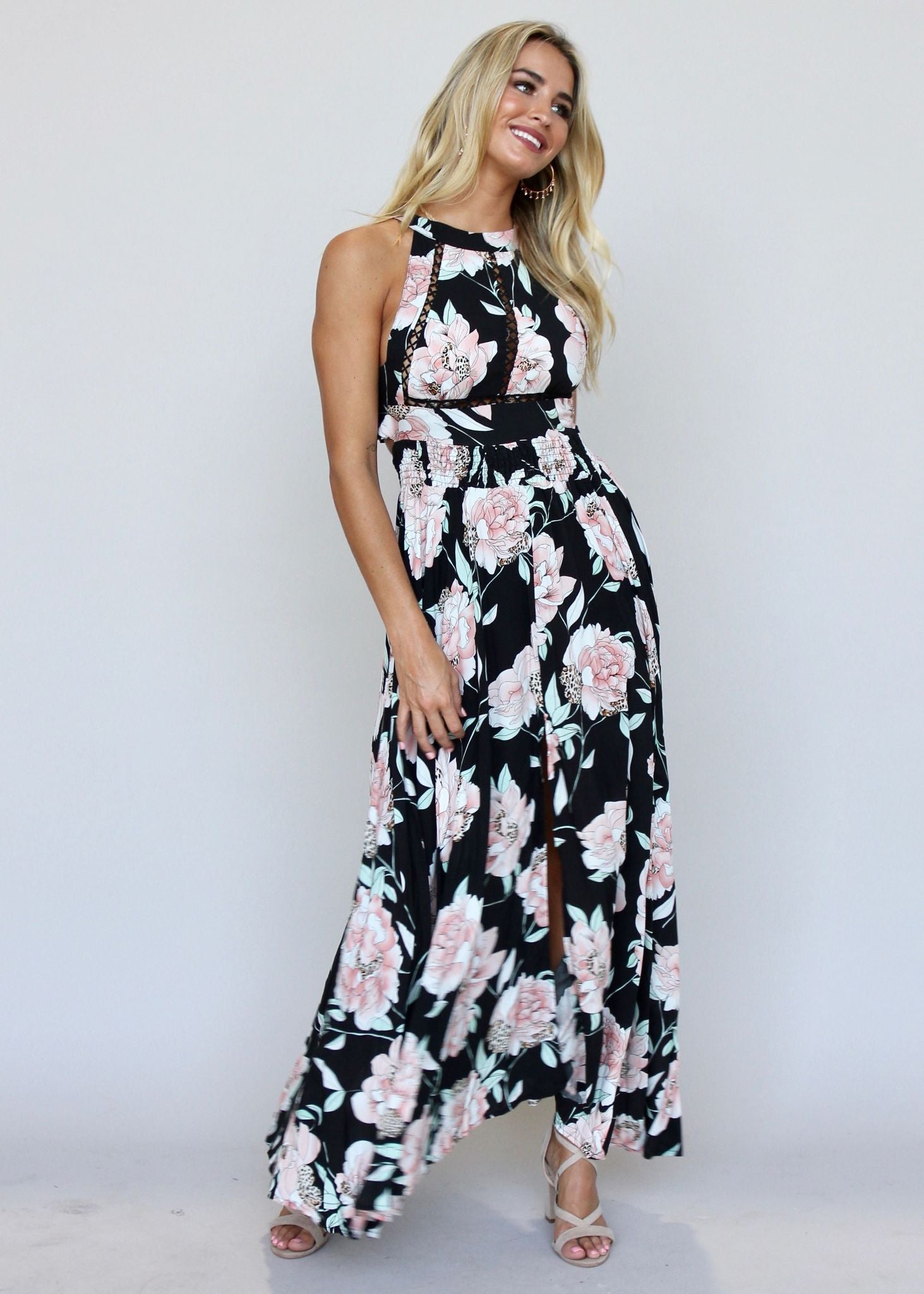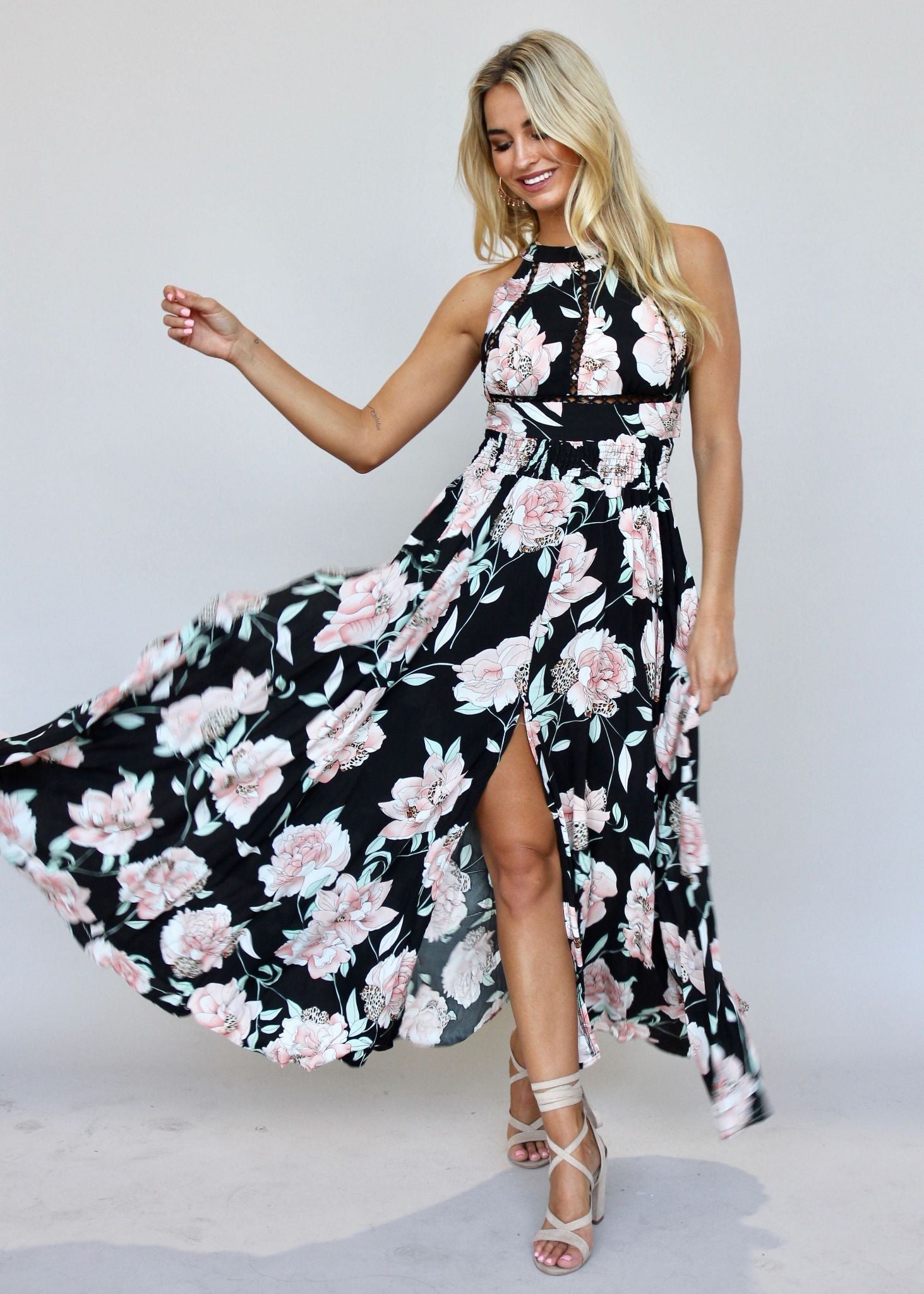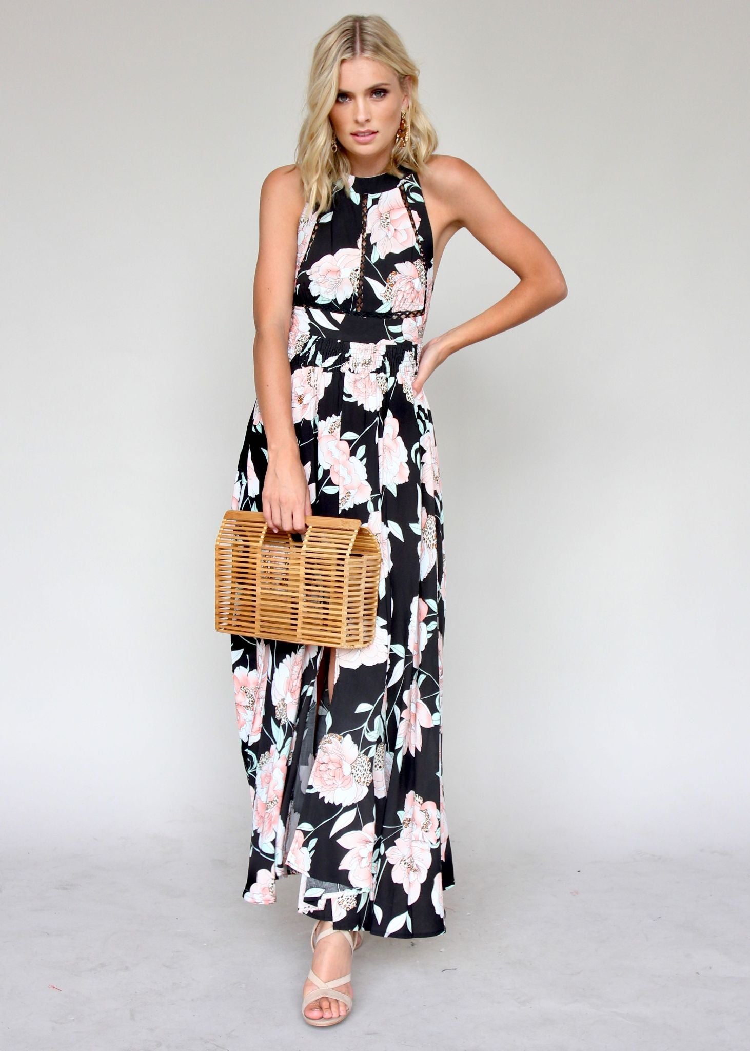 We're loving this sweet summer style for afternoon cocktails with the girls or a lazy afternoon in the sun. In a gorgeous dark floral, perfect for the season!
