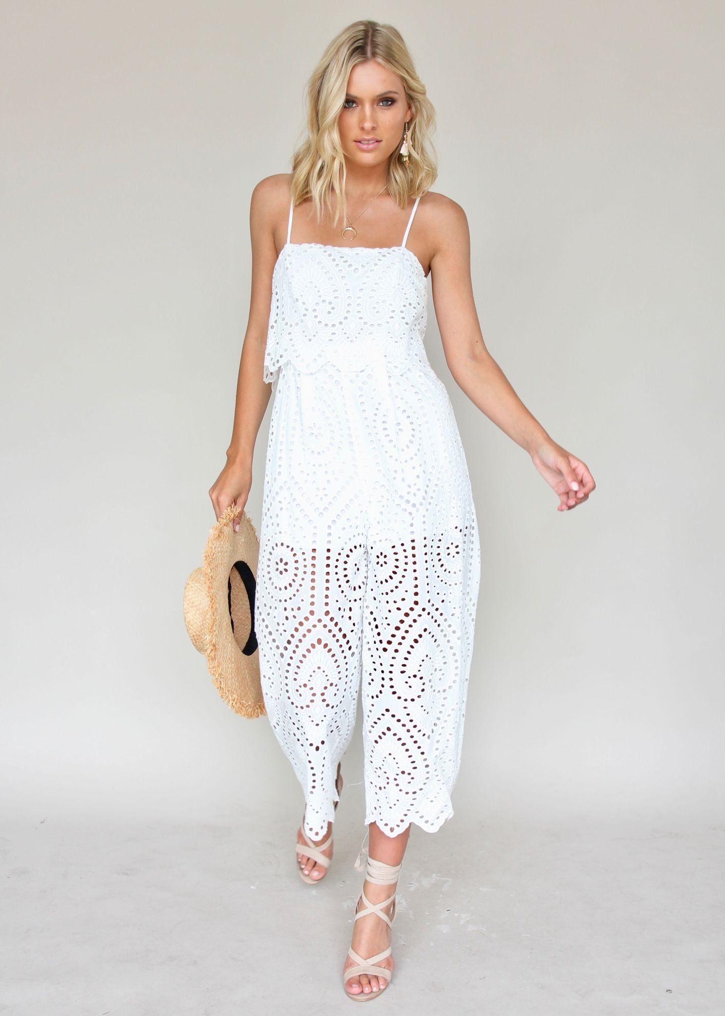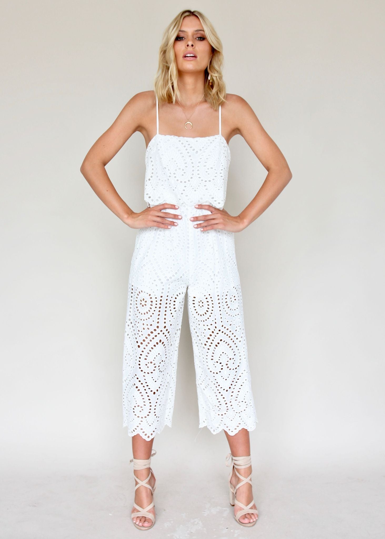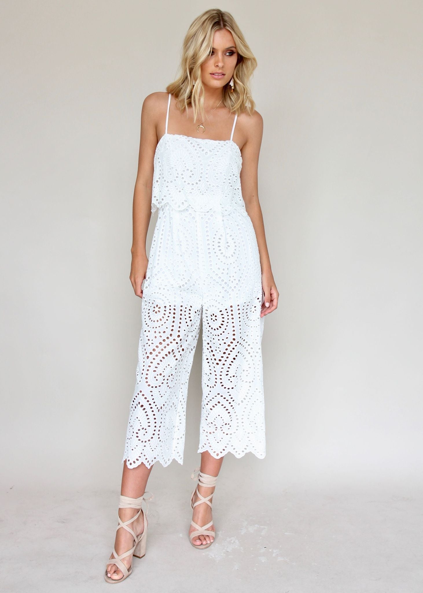 Simple and sophisticated, a gorgeous and delicate eyelet detailed pantsuit! Perfect as festive season nears, this is a great piece to dress up or down.
