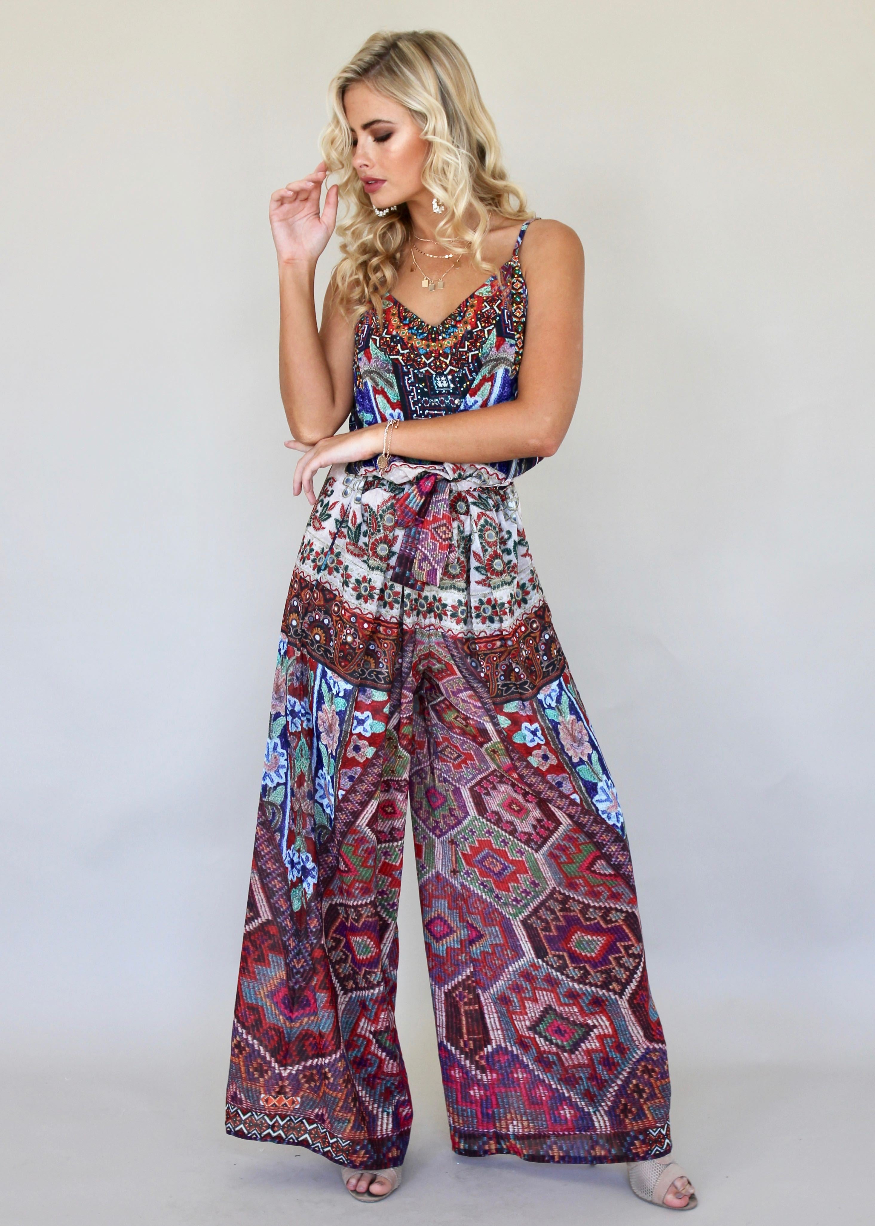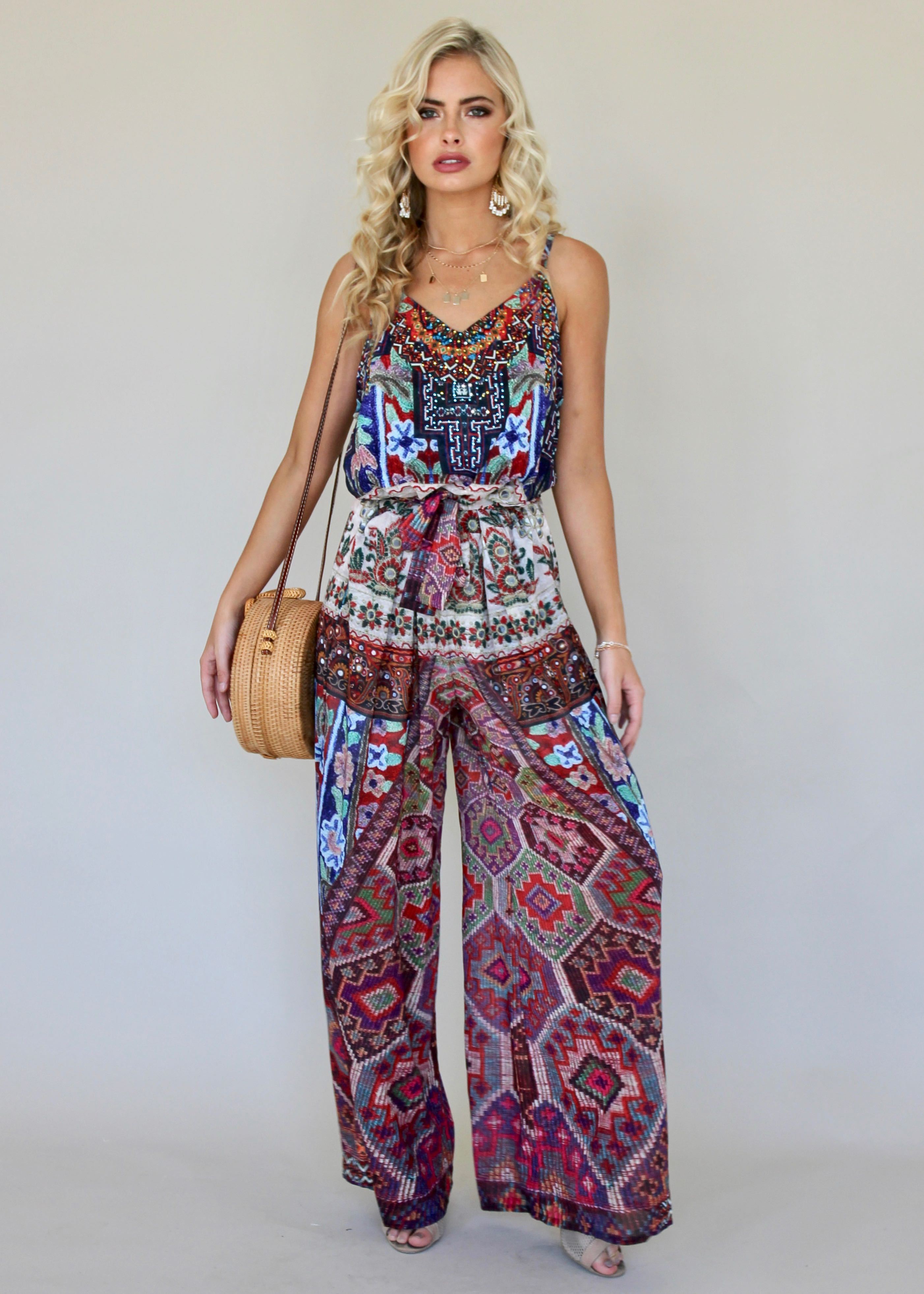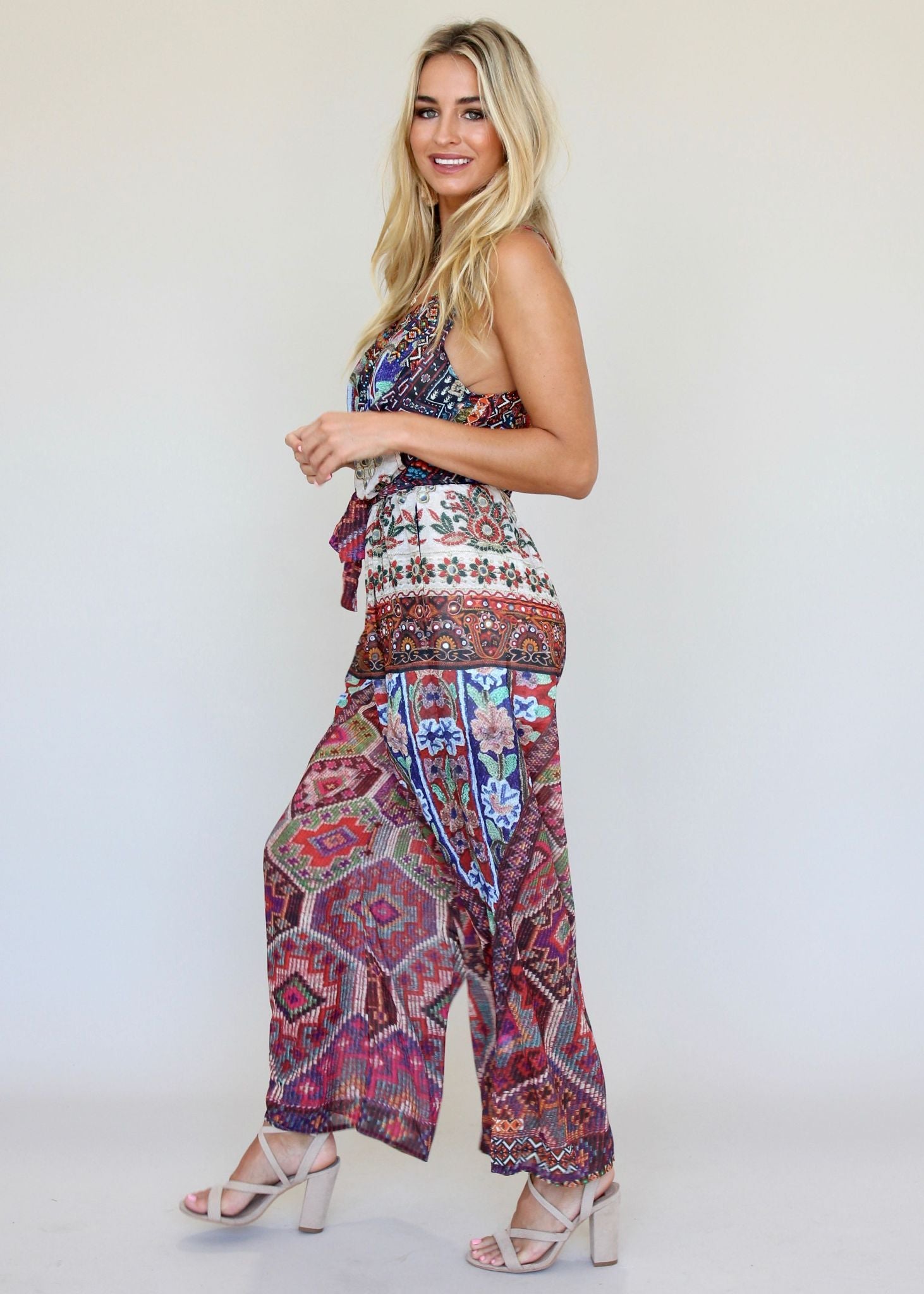 Dress it up this season with the ultimate outfit! In a gorgeous tribal print, this pantsuit speaks for itself.