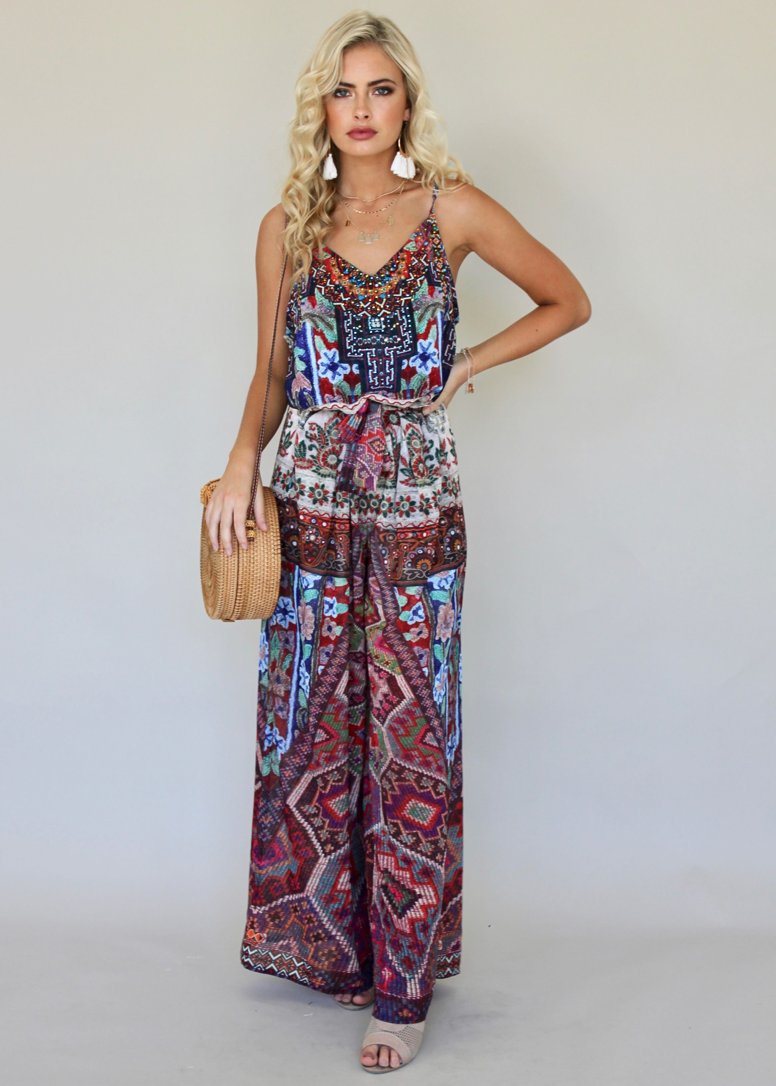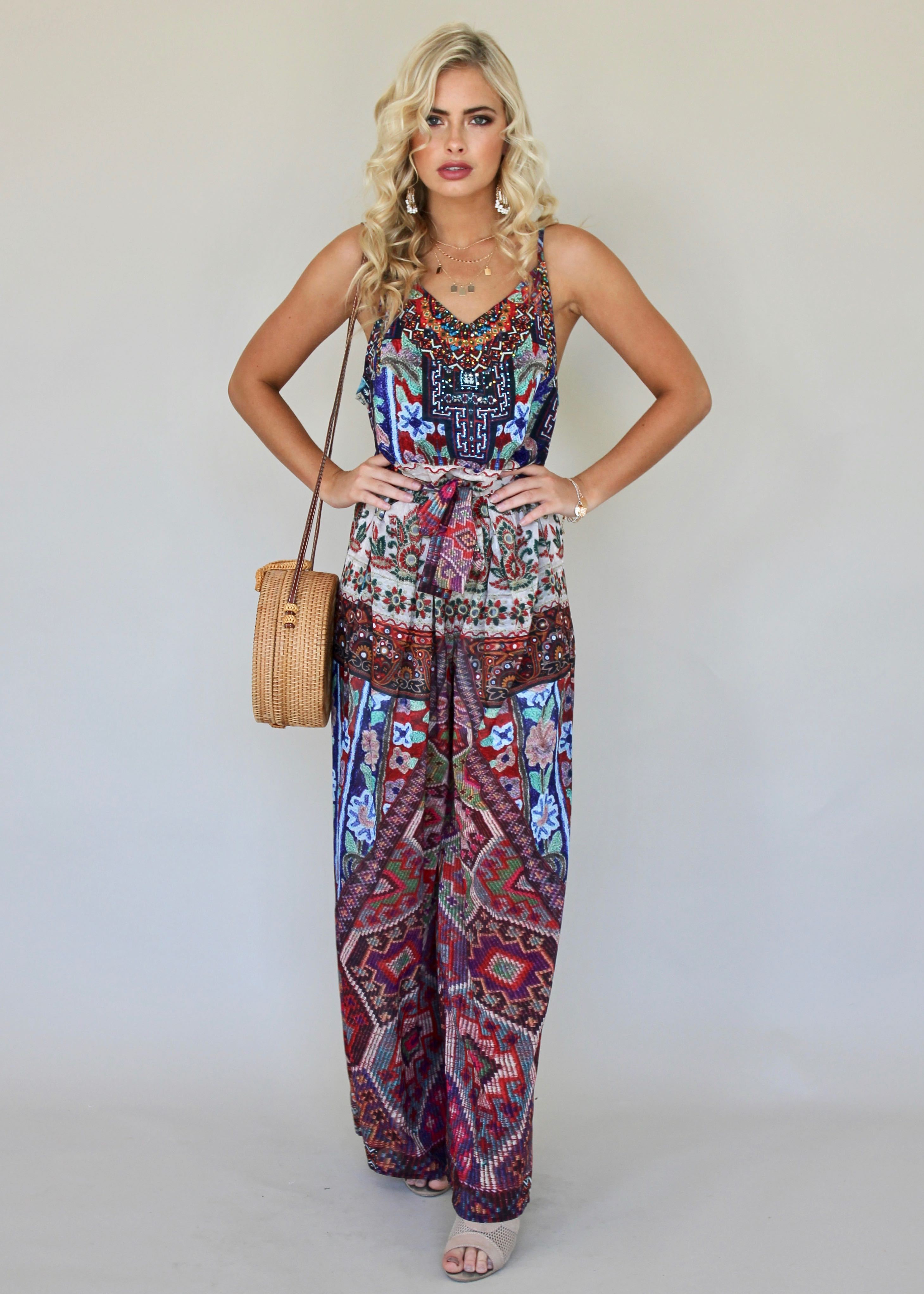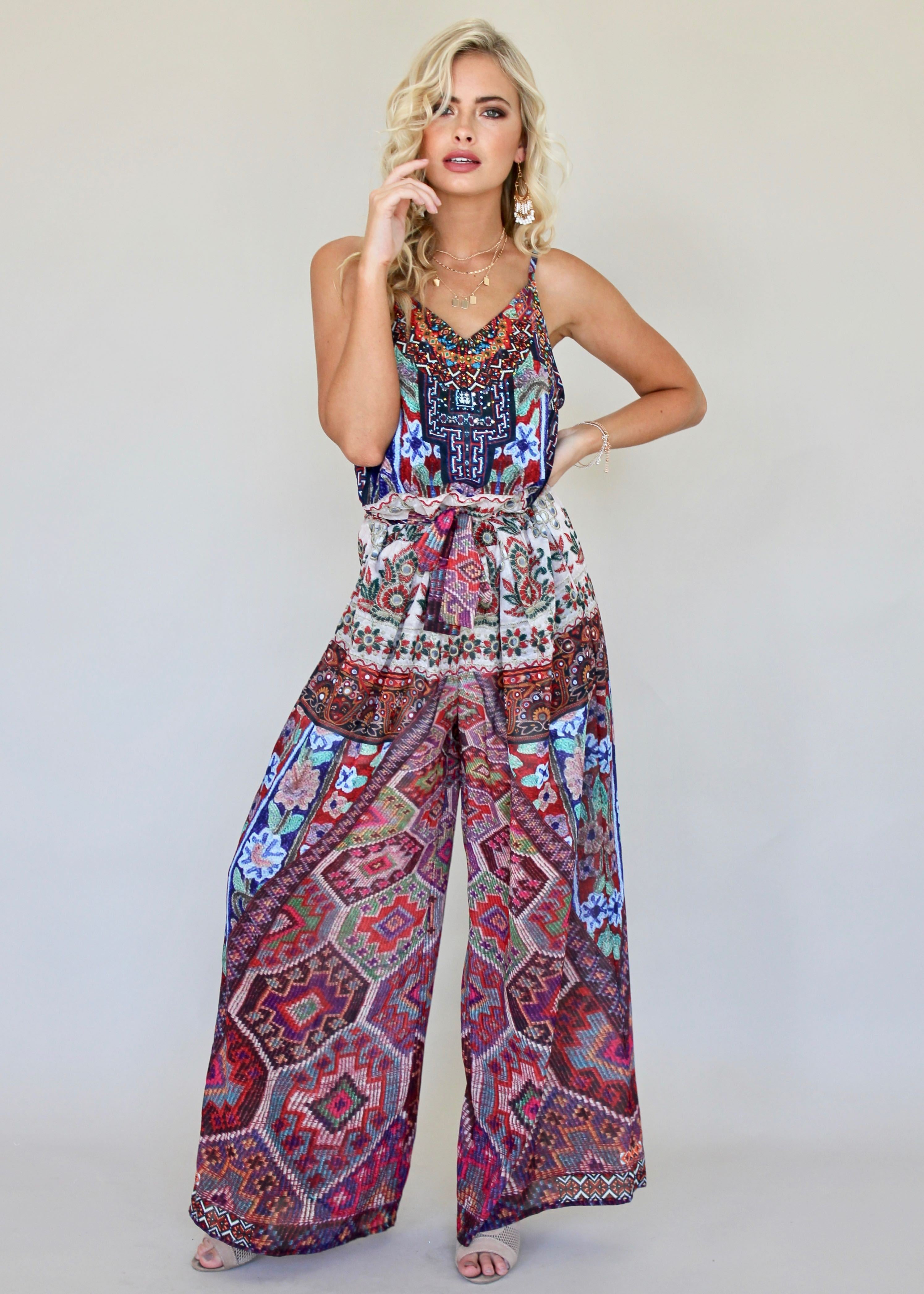 Dress it up this season with the ultimate outfit! In a gorgeous tribal print, this pantsuit speaks for itself.