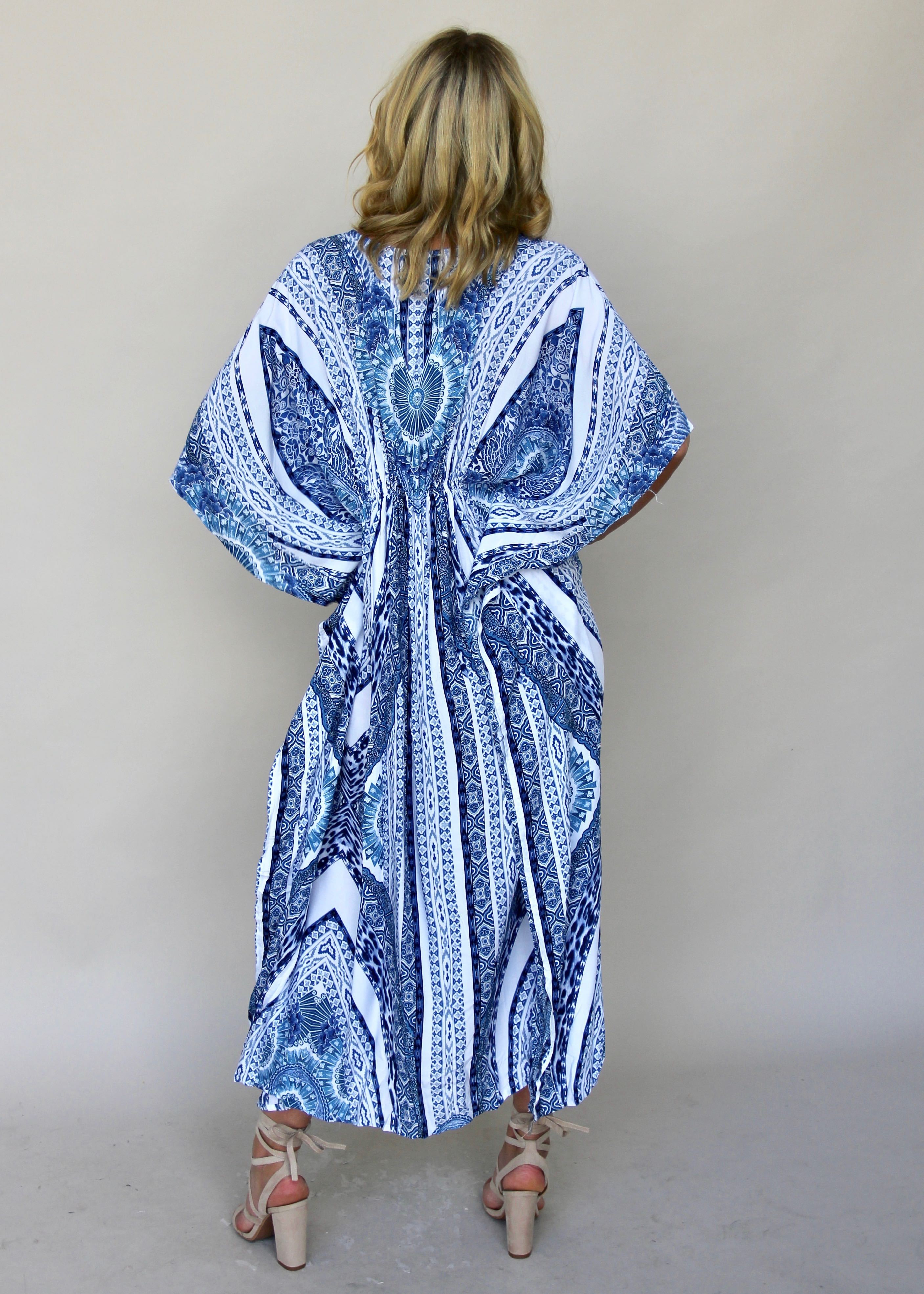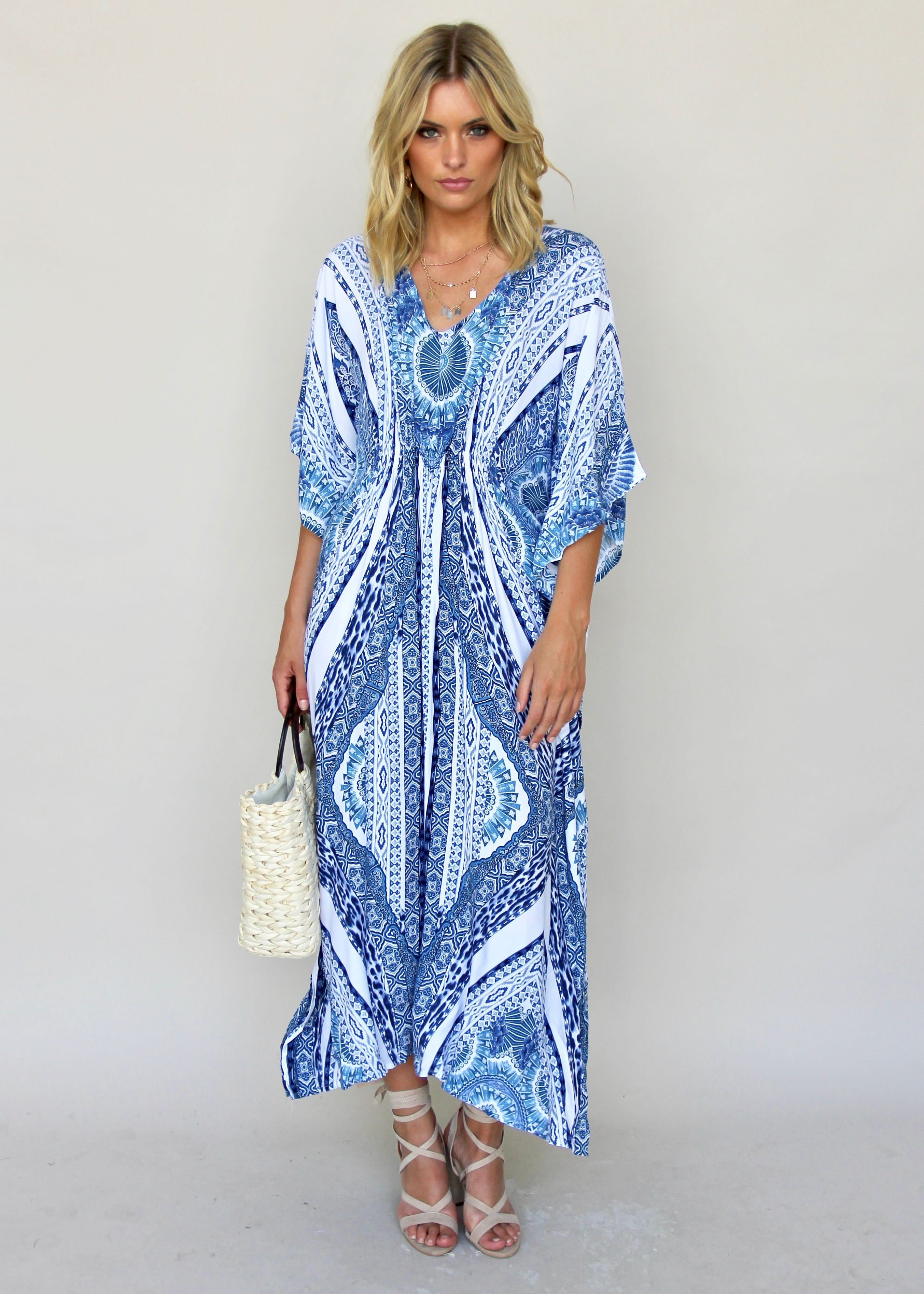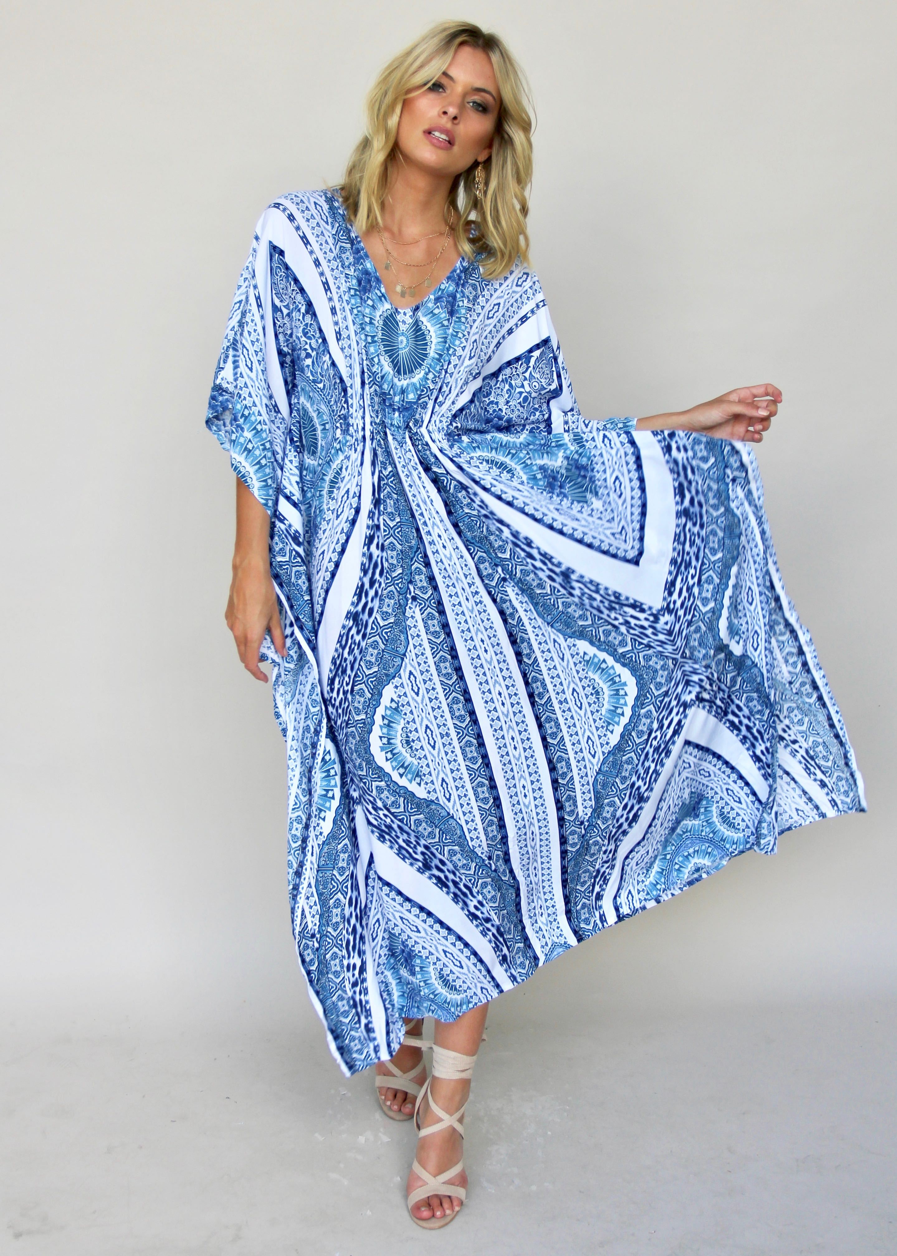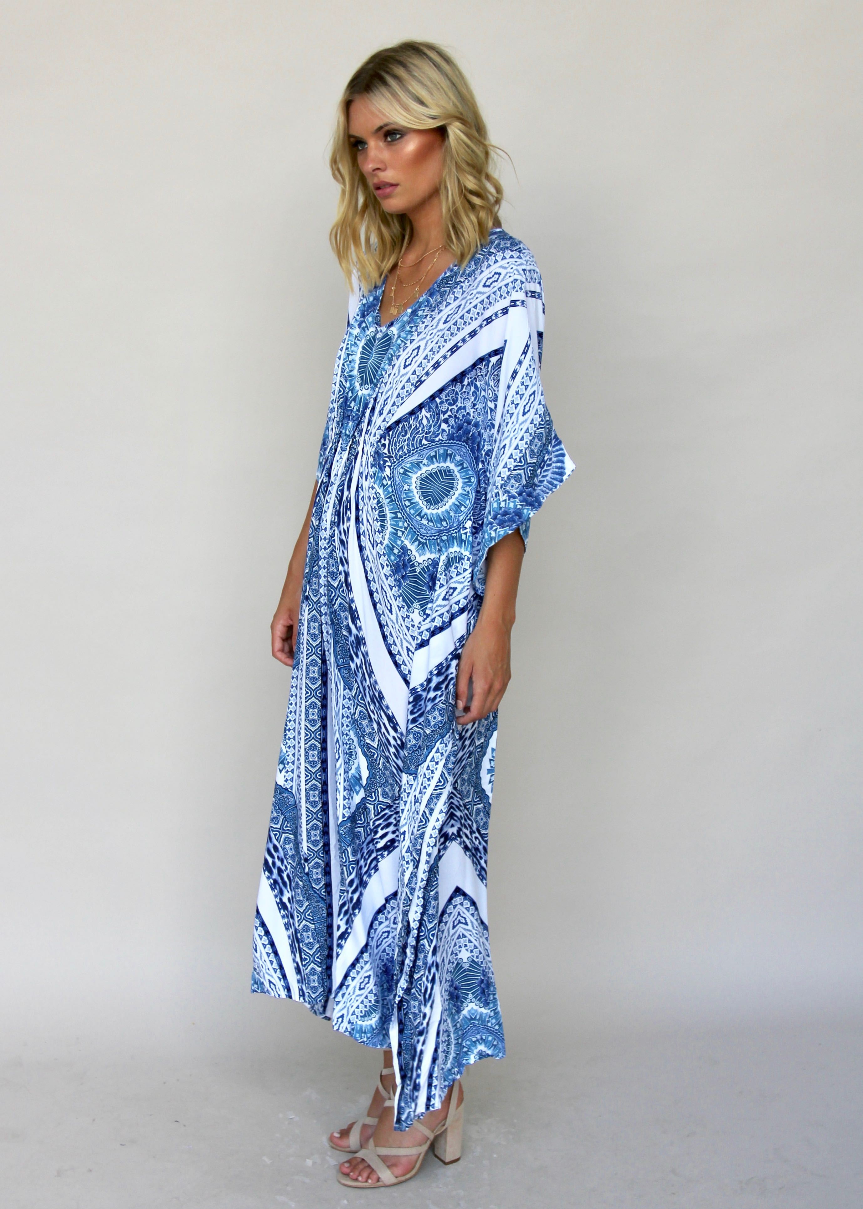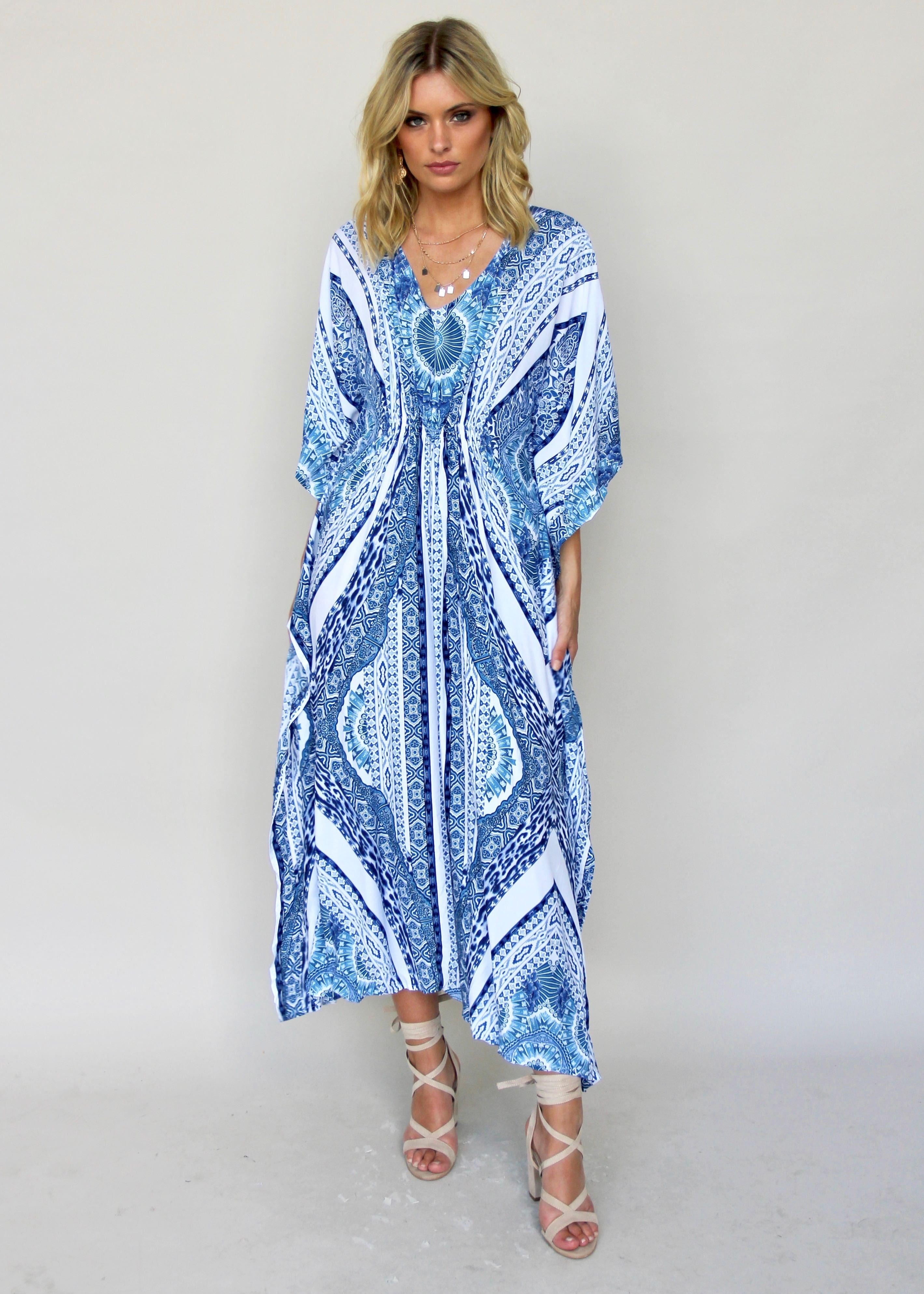 The perfect outfit for those hot, lazy Summer days! Easy to wear and lightweight, you'll love this maxi and the beautiful blue print!