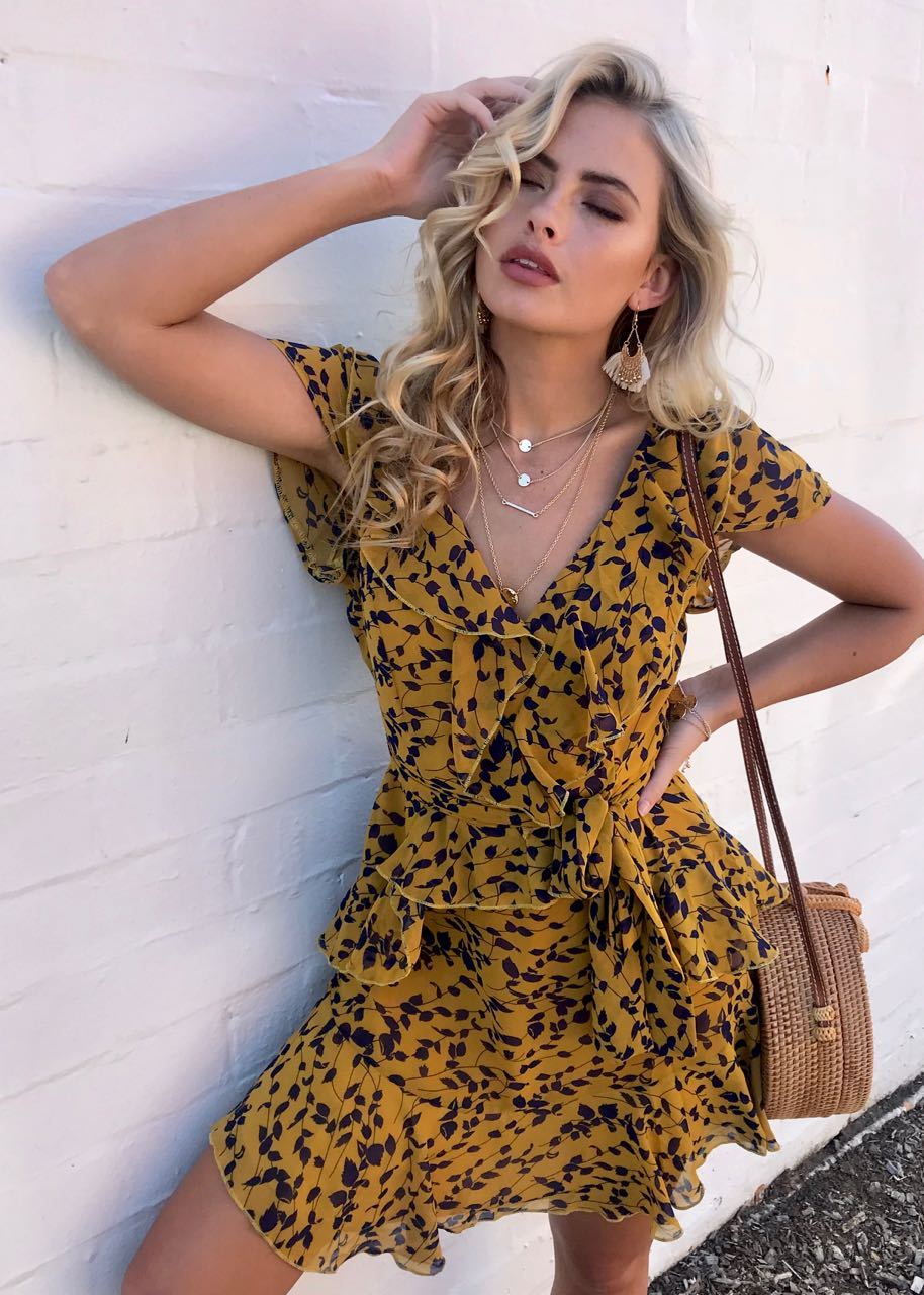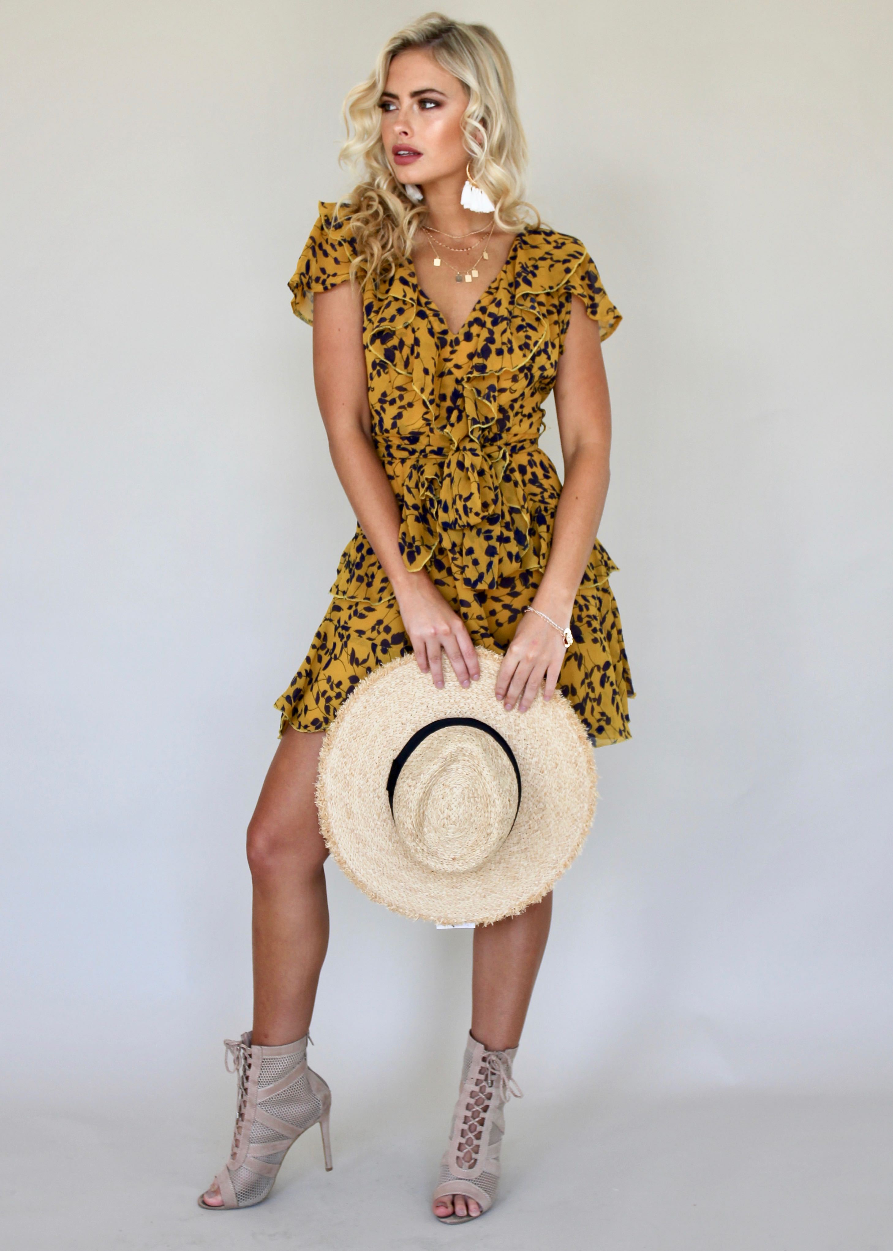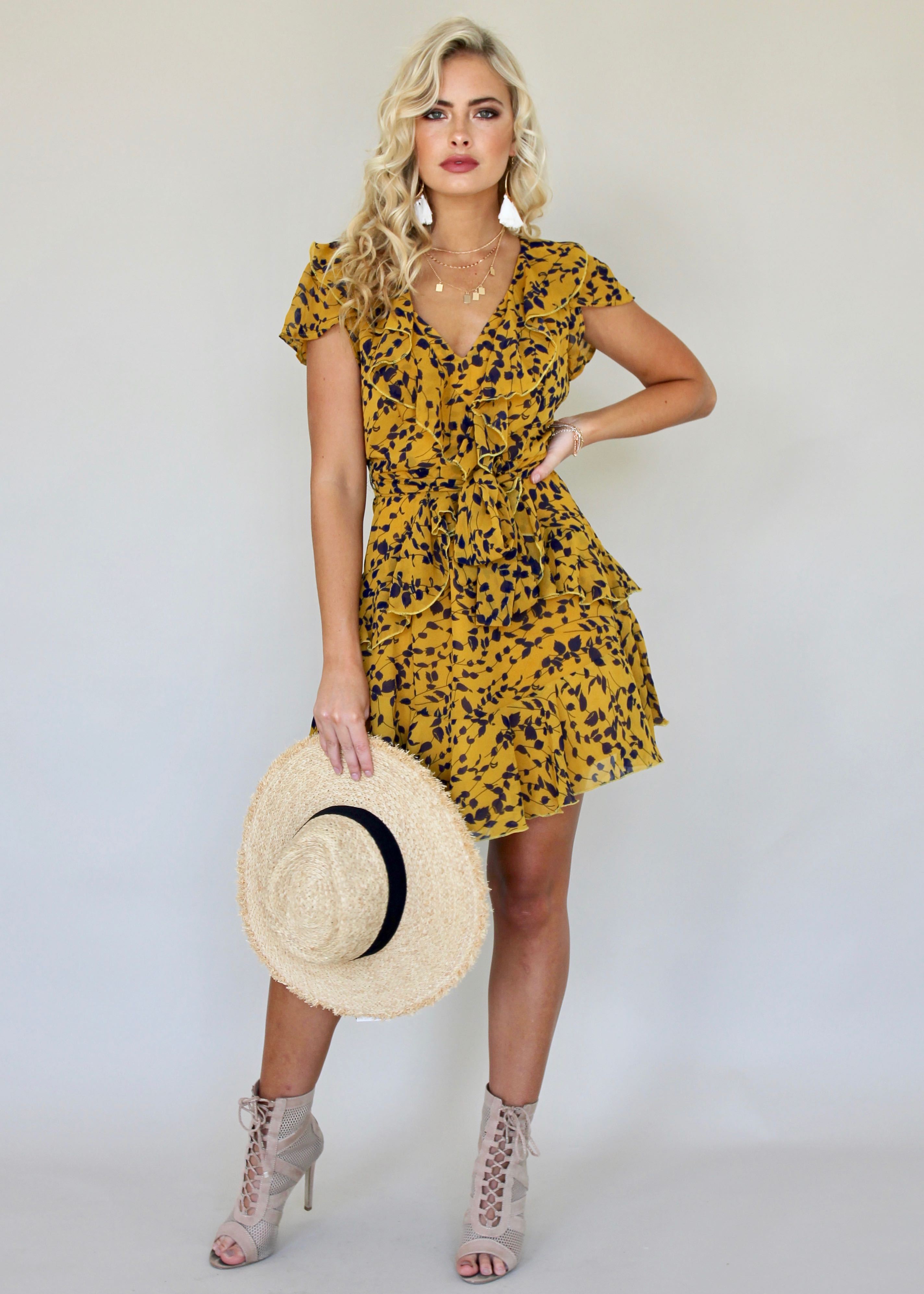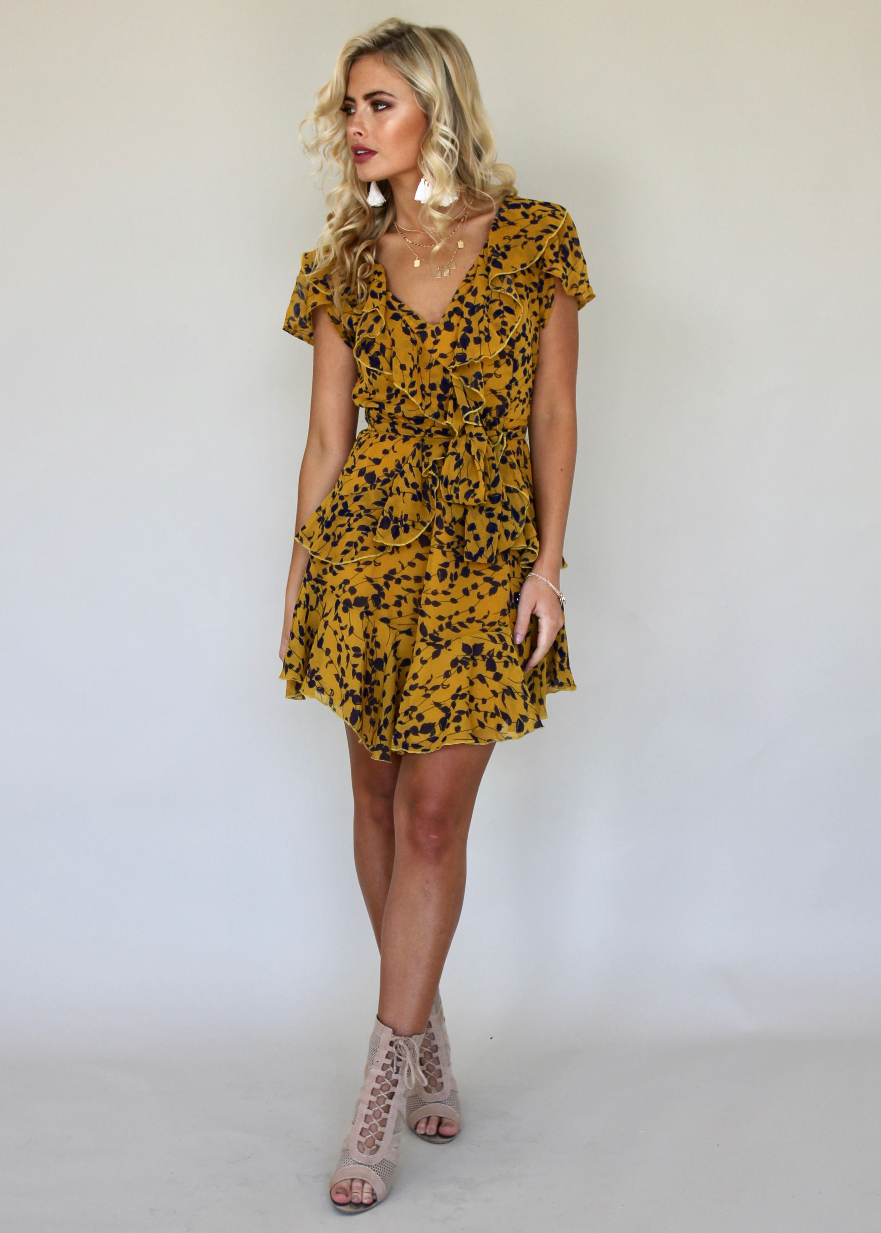 Simple yet stunning! In a gorgeous mustard print, you'll love how comfy yet gorgeous this dress is!