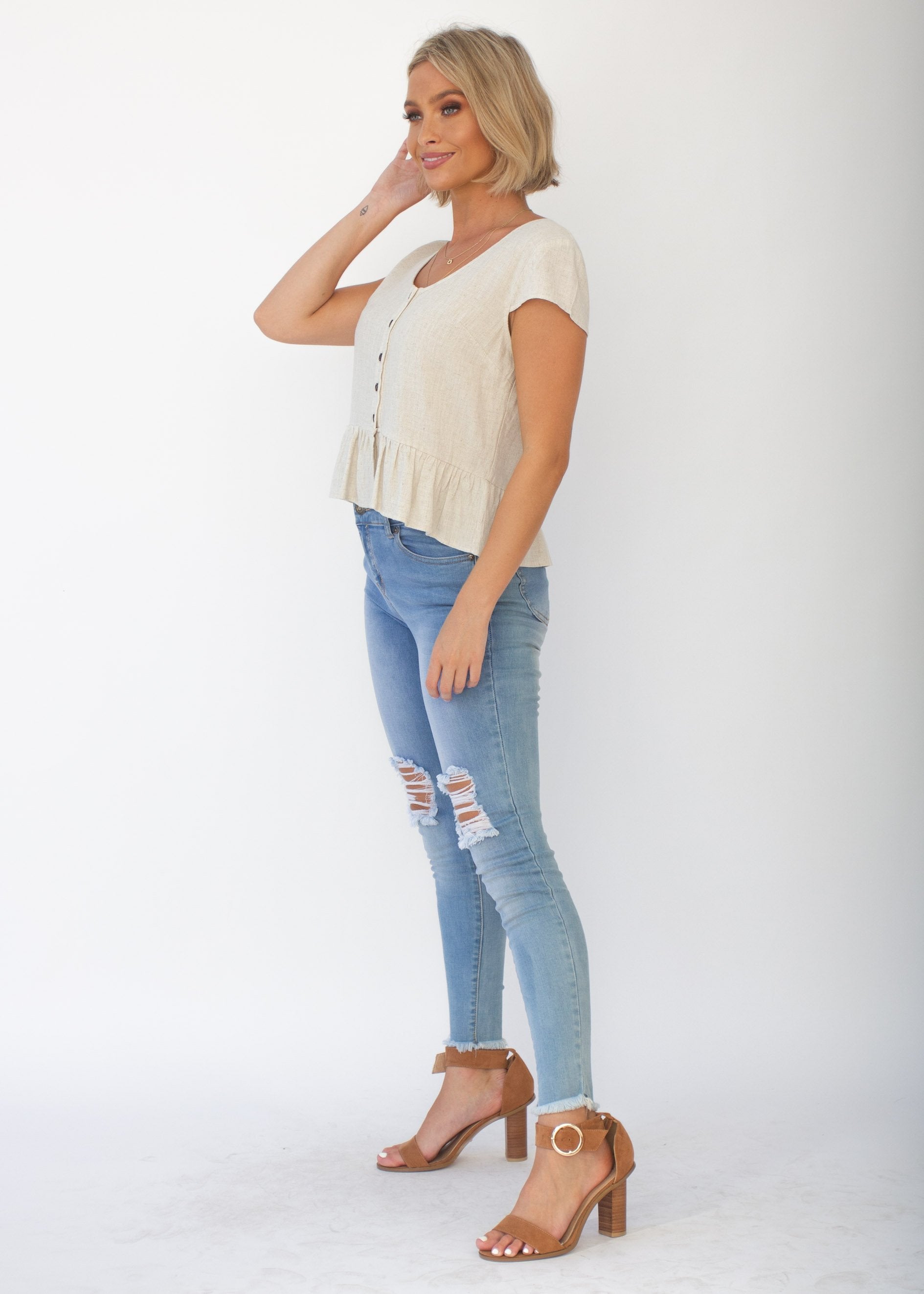 Bring the heat this Summer in this gorgeous linen top! Style with your favourite denim or a cute skirt and finish with slides for a low-key look or heels for night-time chic!