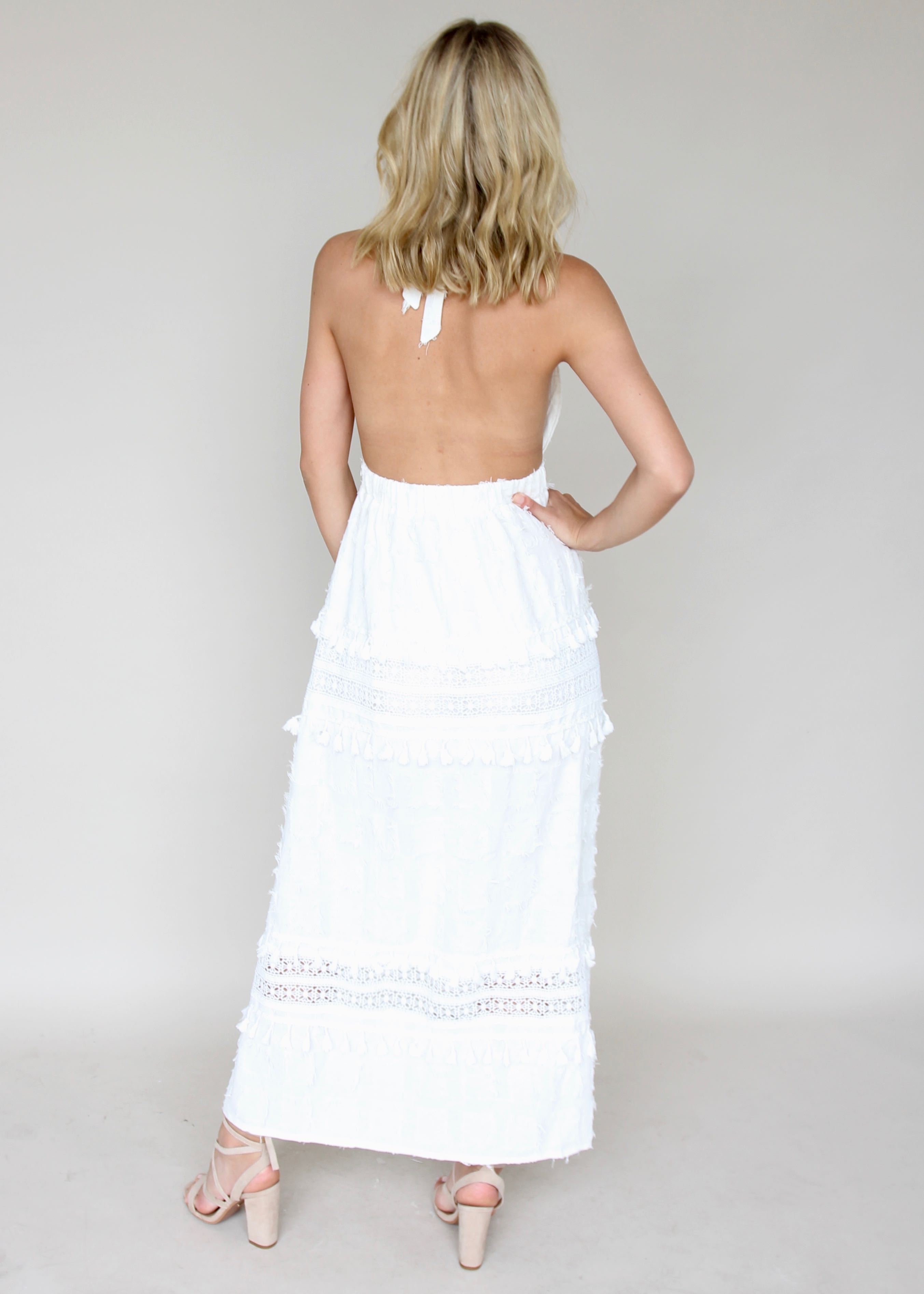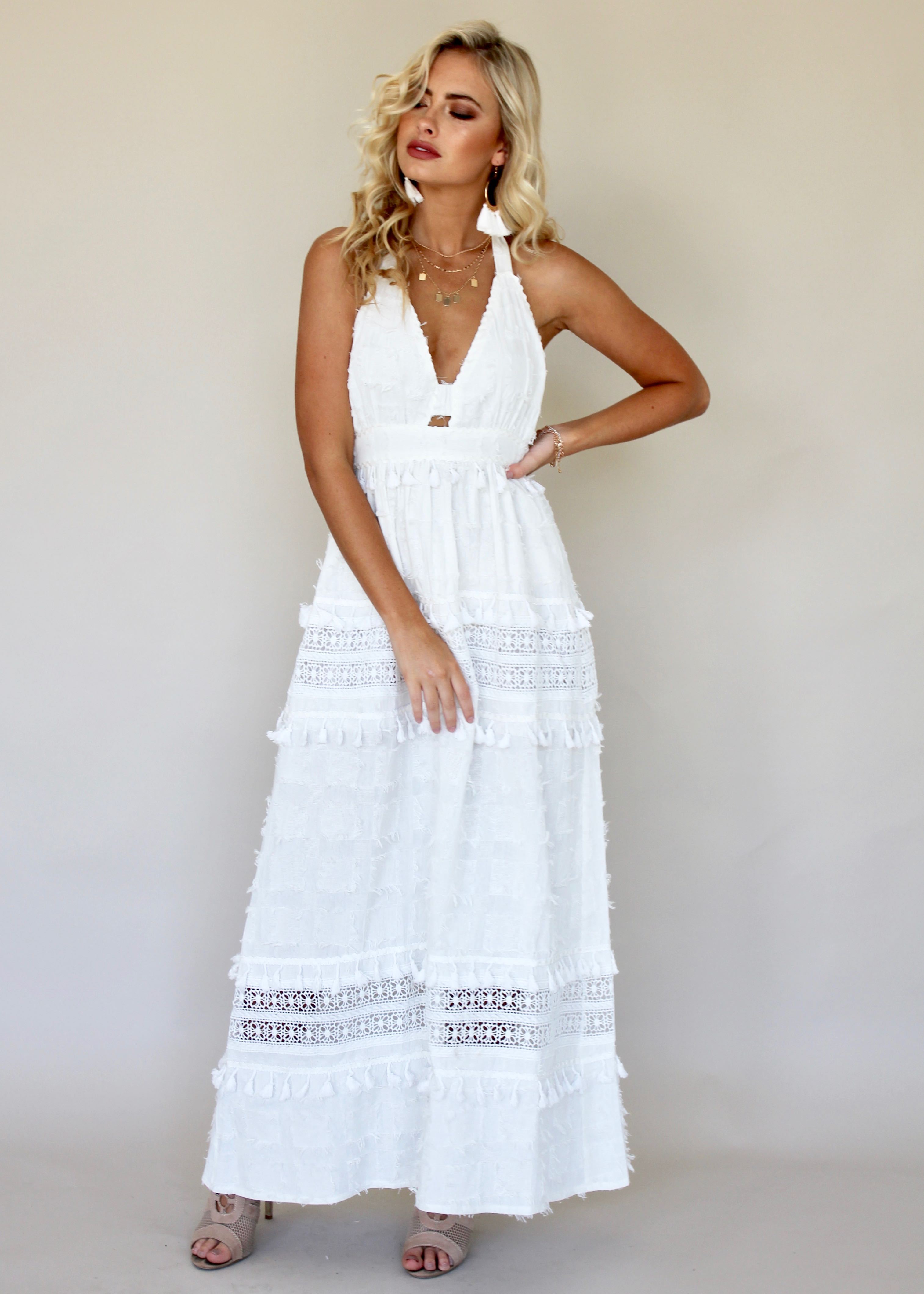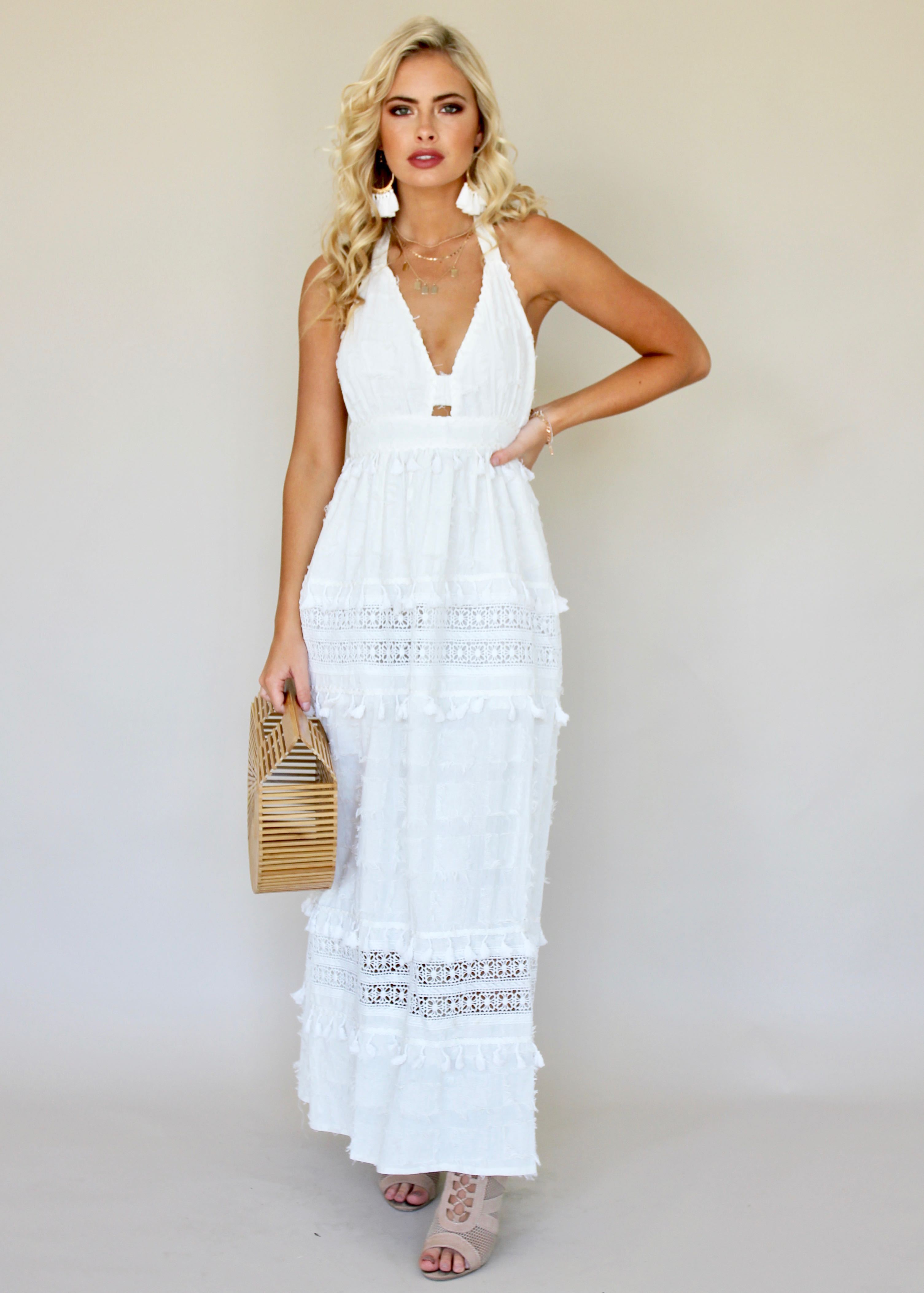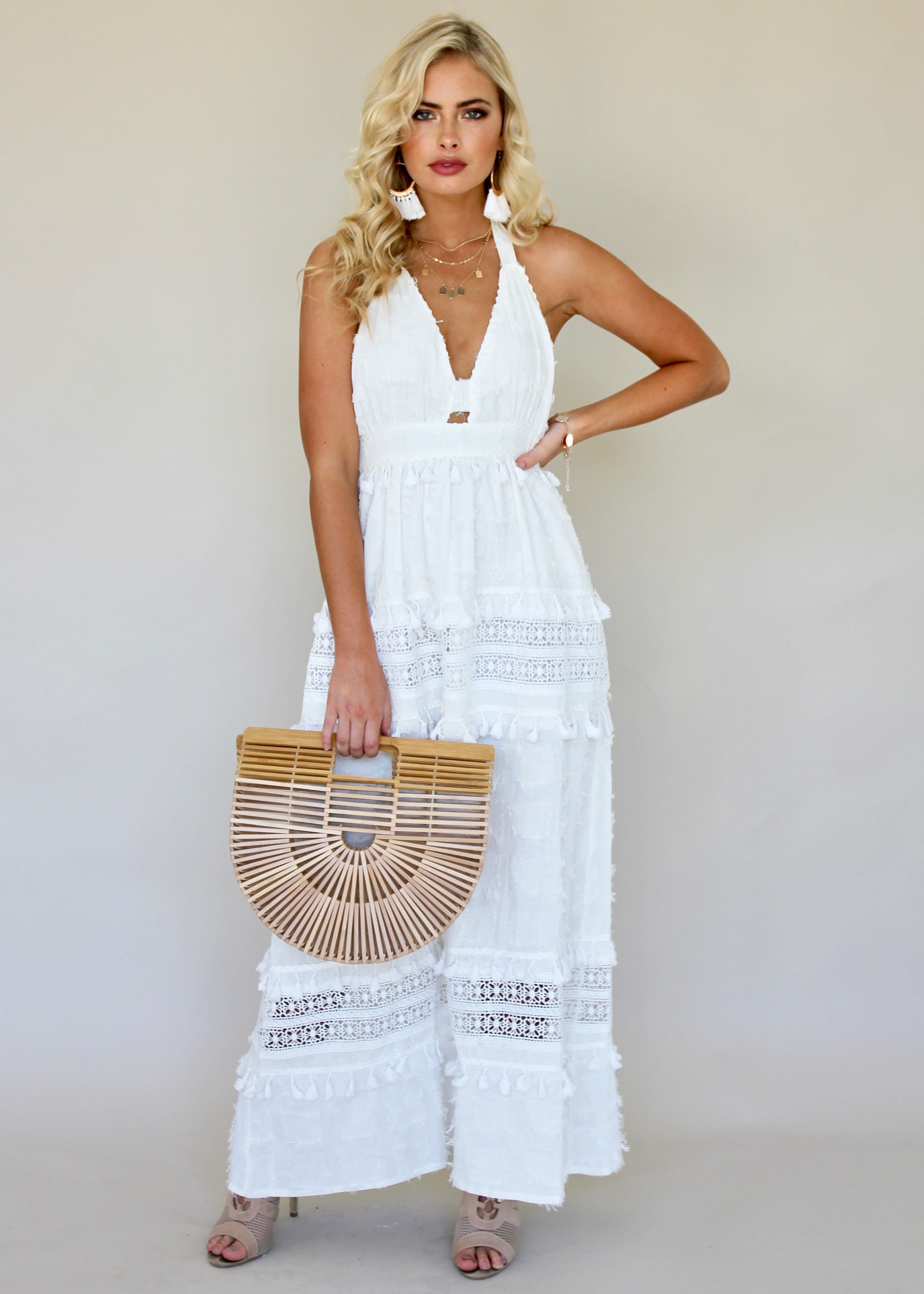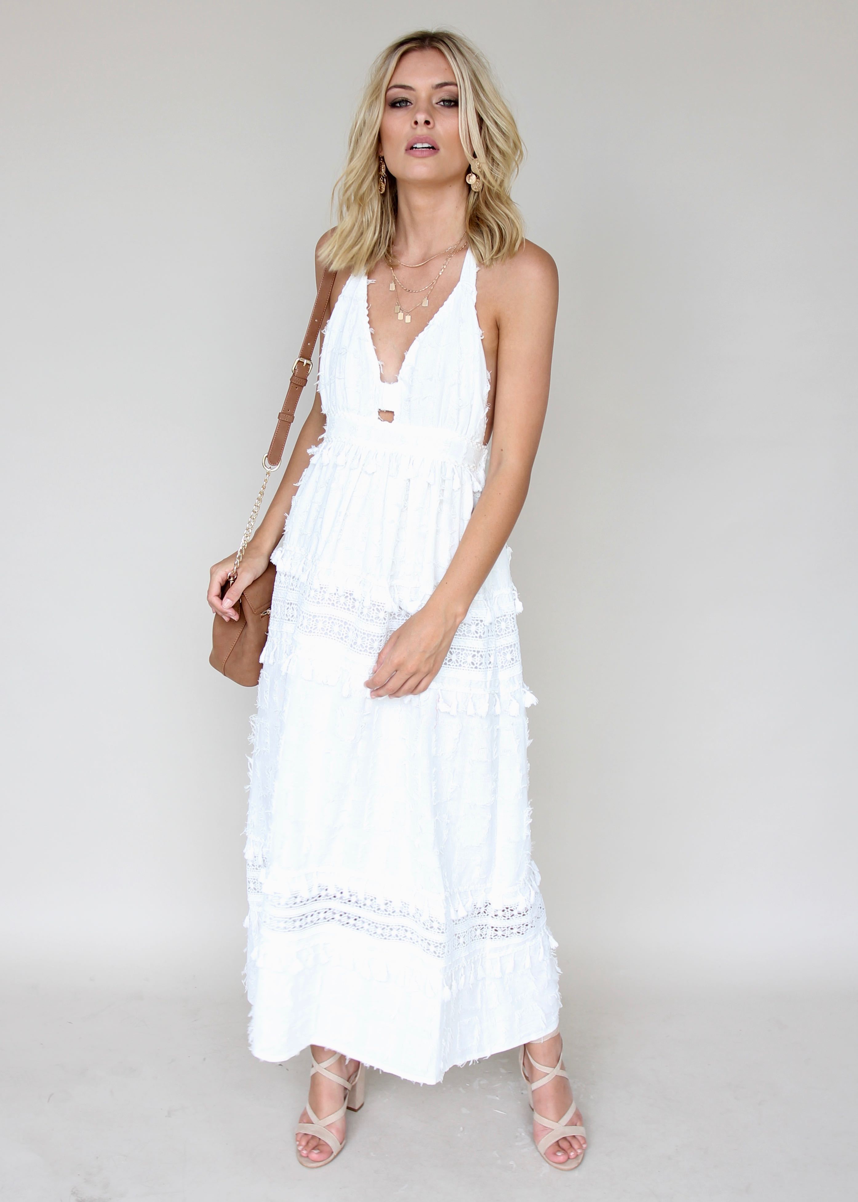 Get holiday ready with our gorgeous Lost Heaven Maxi! An easy to wear and stunning white maxi that is perfect with your fave tan accessories.
