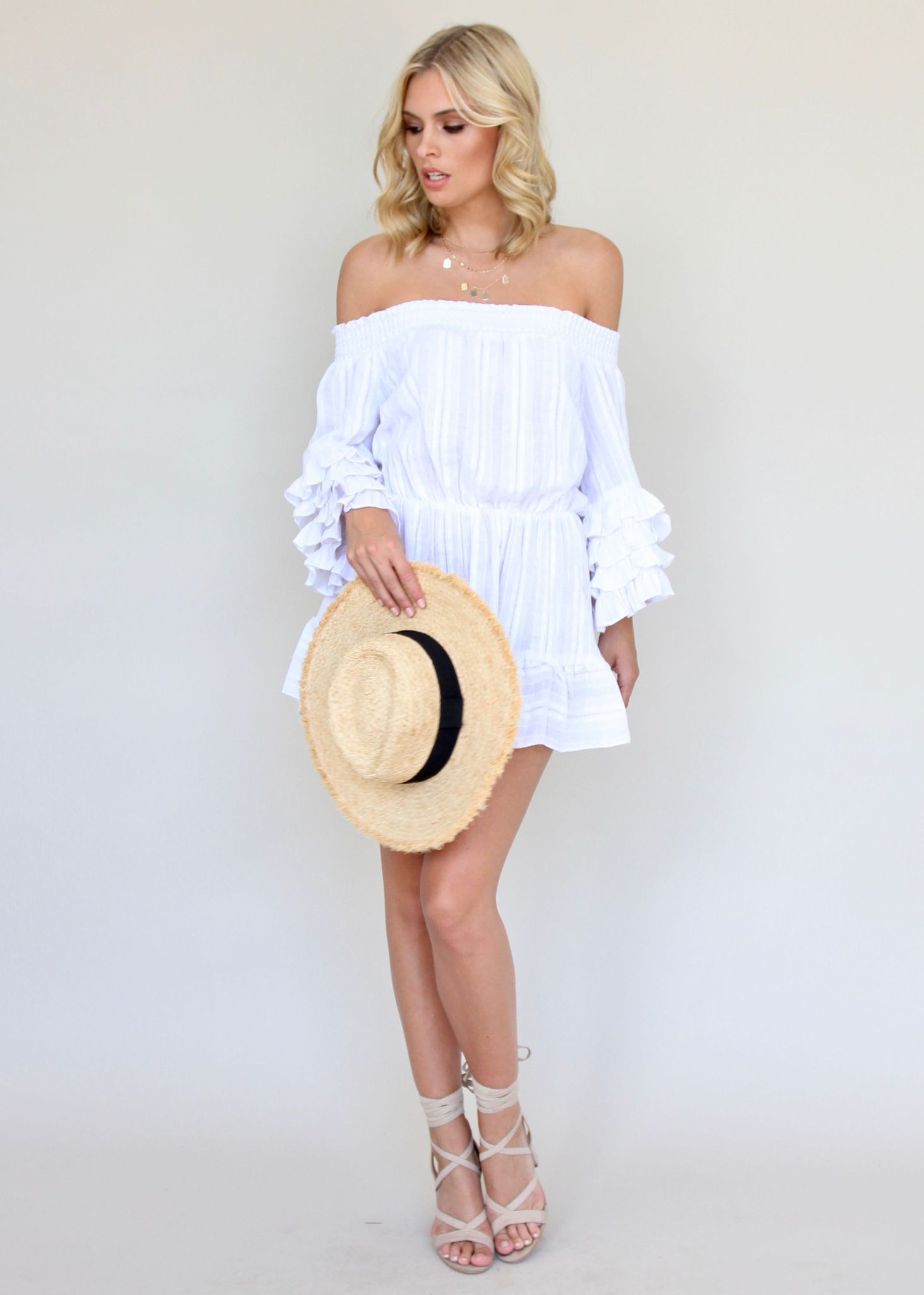 Freshen up your Summer wardrobe with this gorgeous off shoulder mini dress!