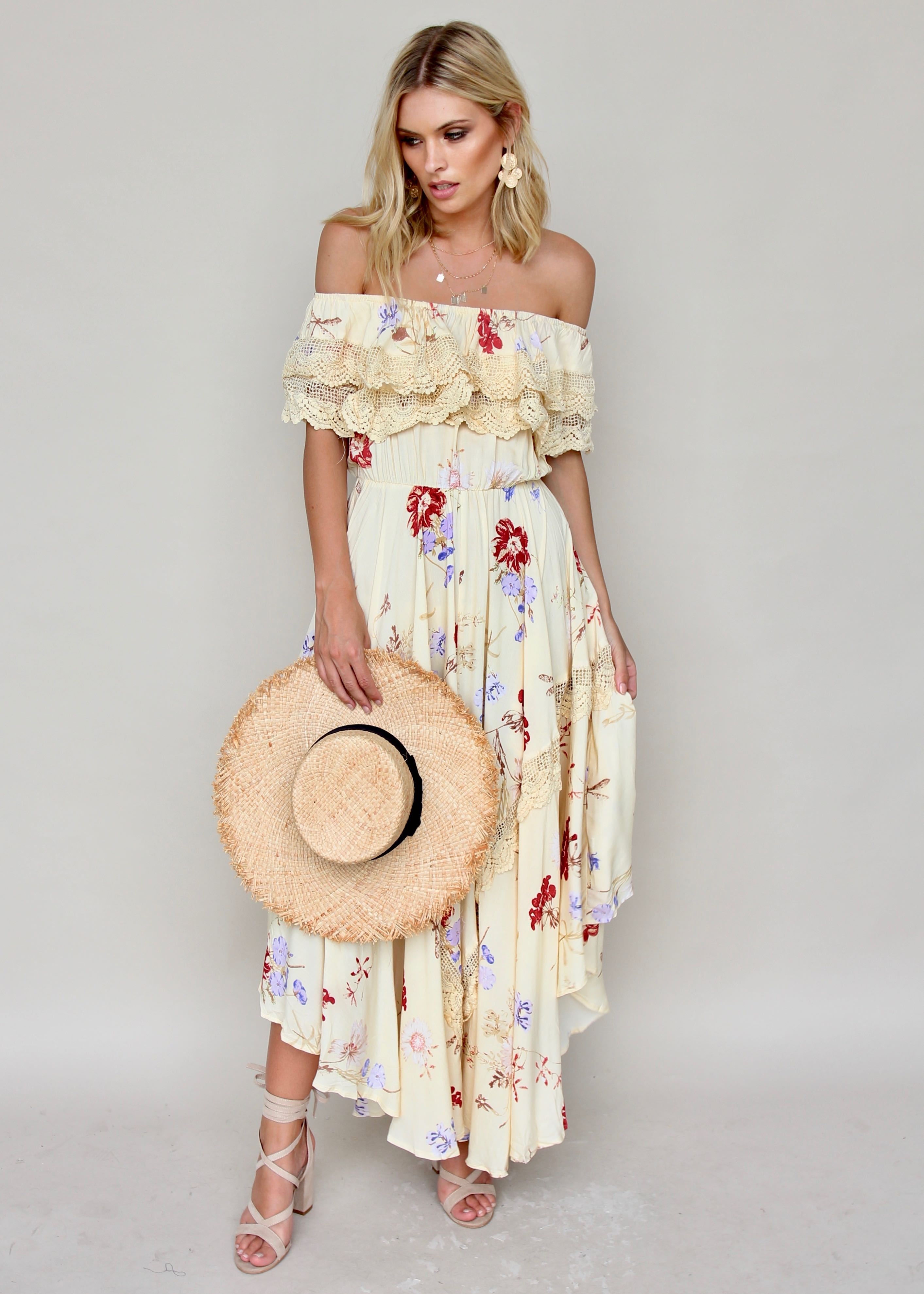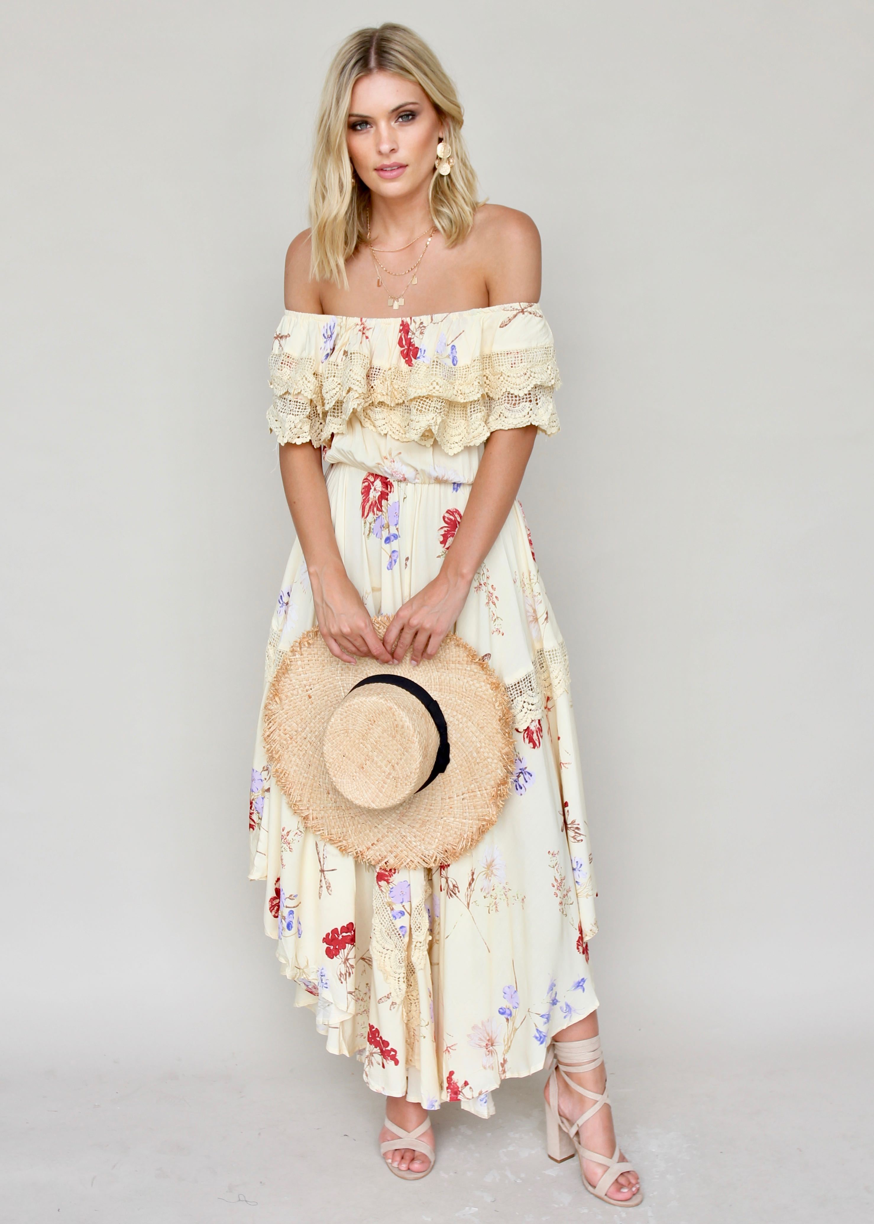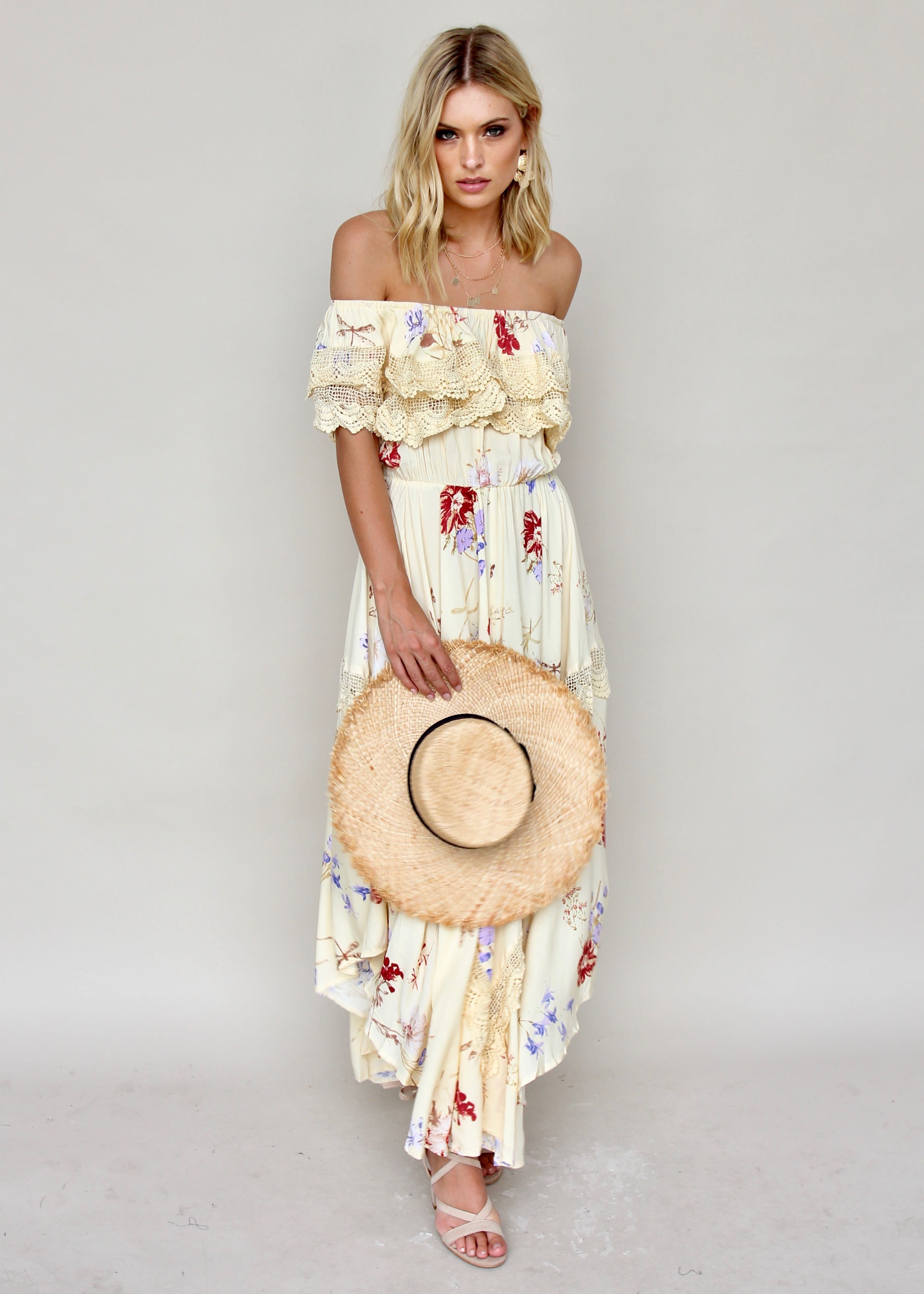 This is the must-have maxi dress for the season! In a gorgeous blue print, you'll want to wear this gorgeous piece everywhere! Finish the look off with our Harlo Bag and our Malaa Choker for an effortless finishing touch.