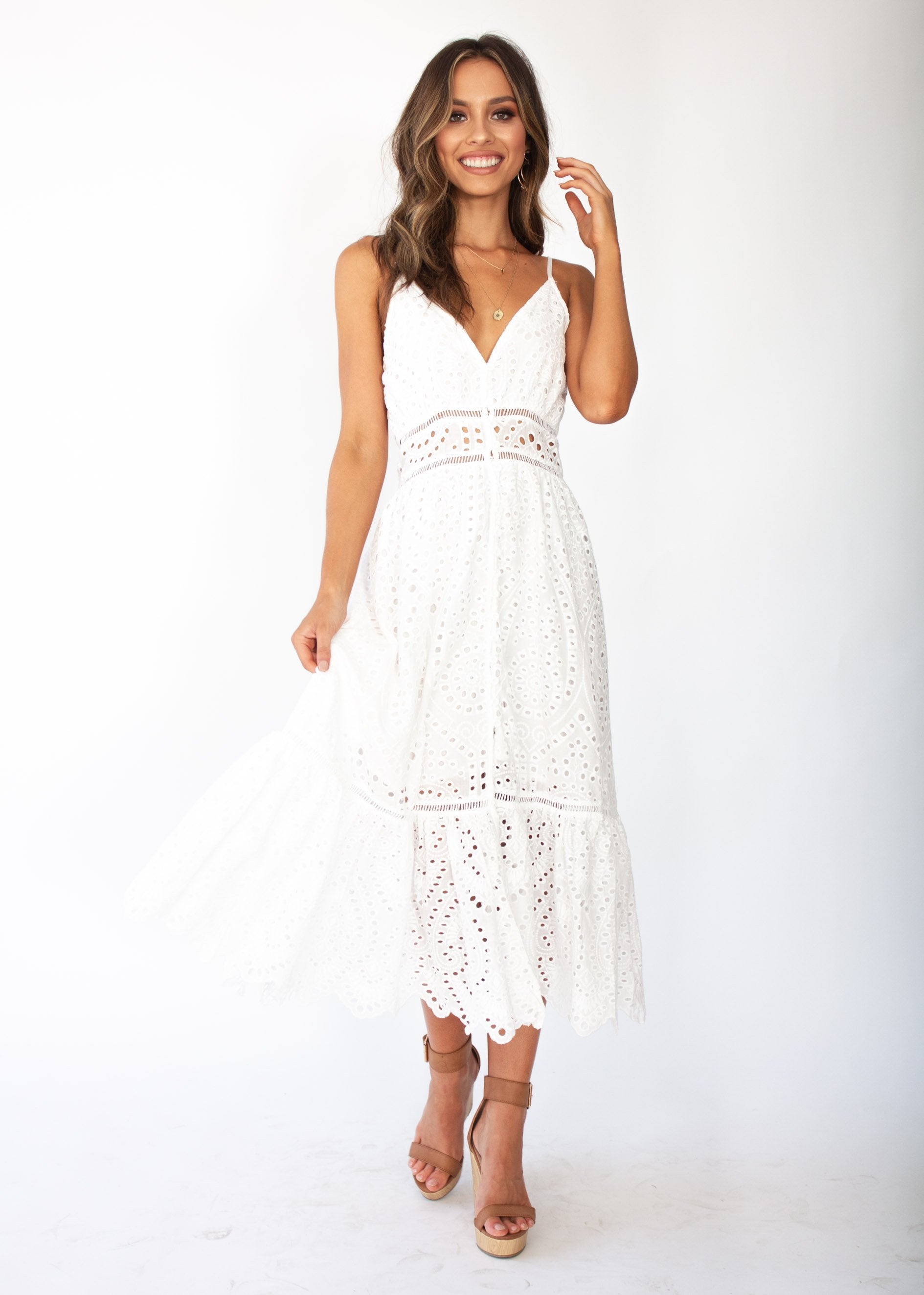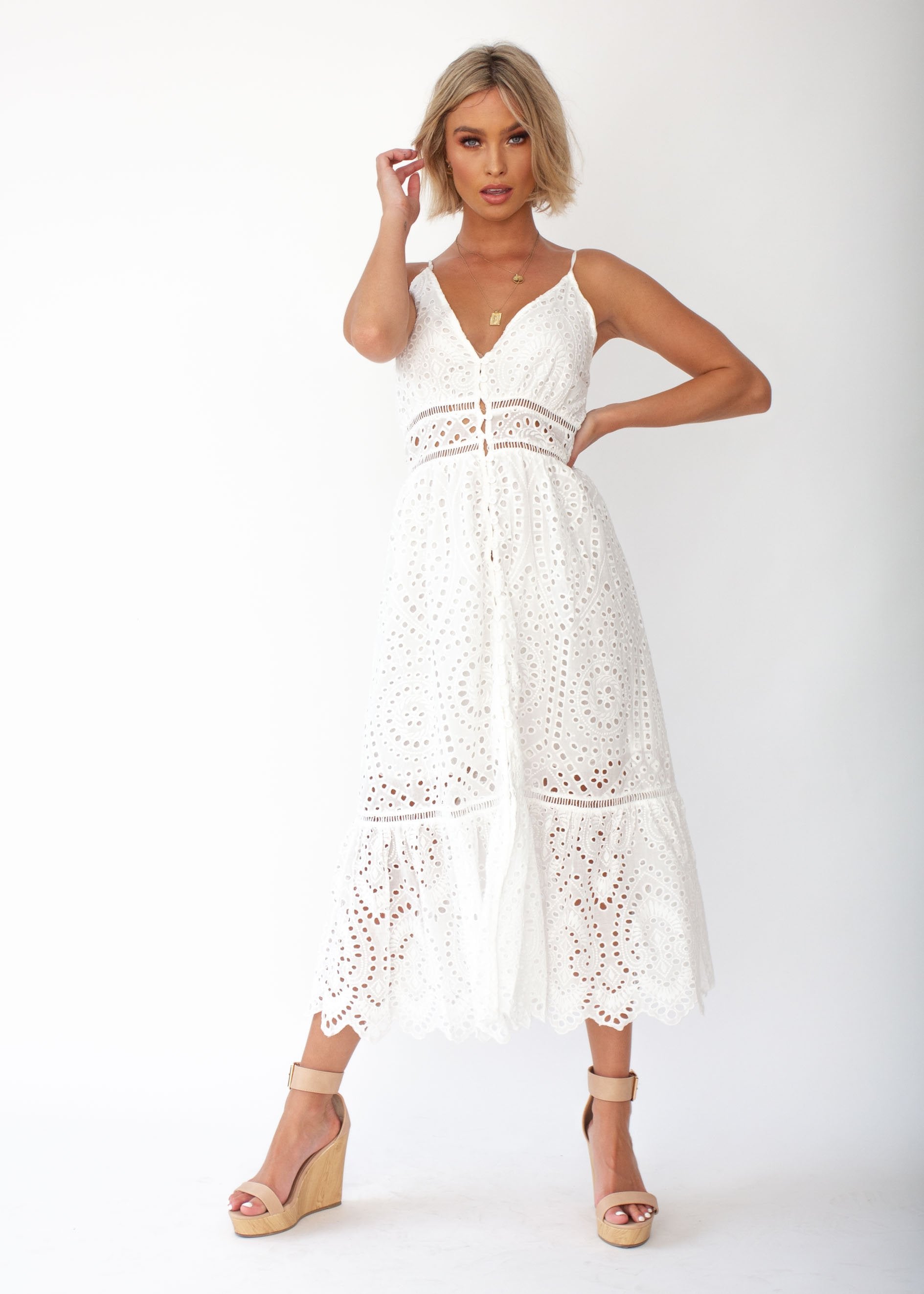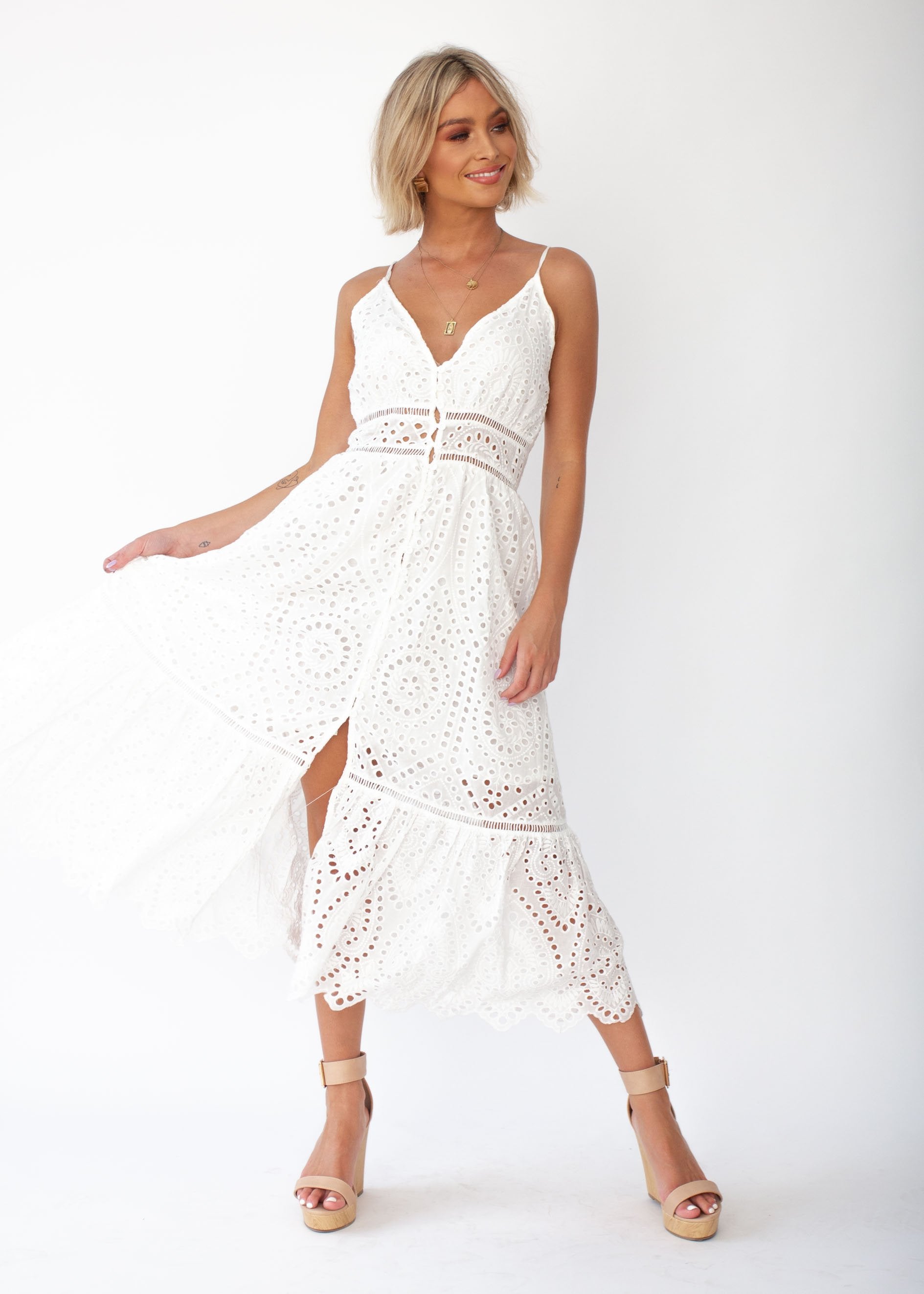 This beautiful eyelet dress is a must have and staple for your Spring Summer wardrobe.
