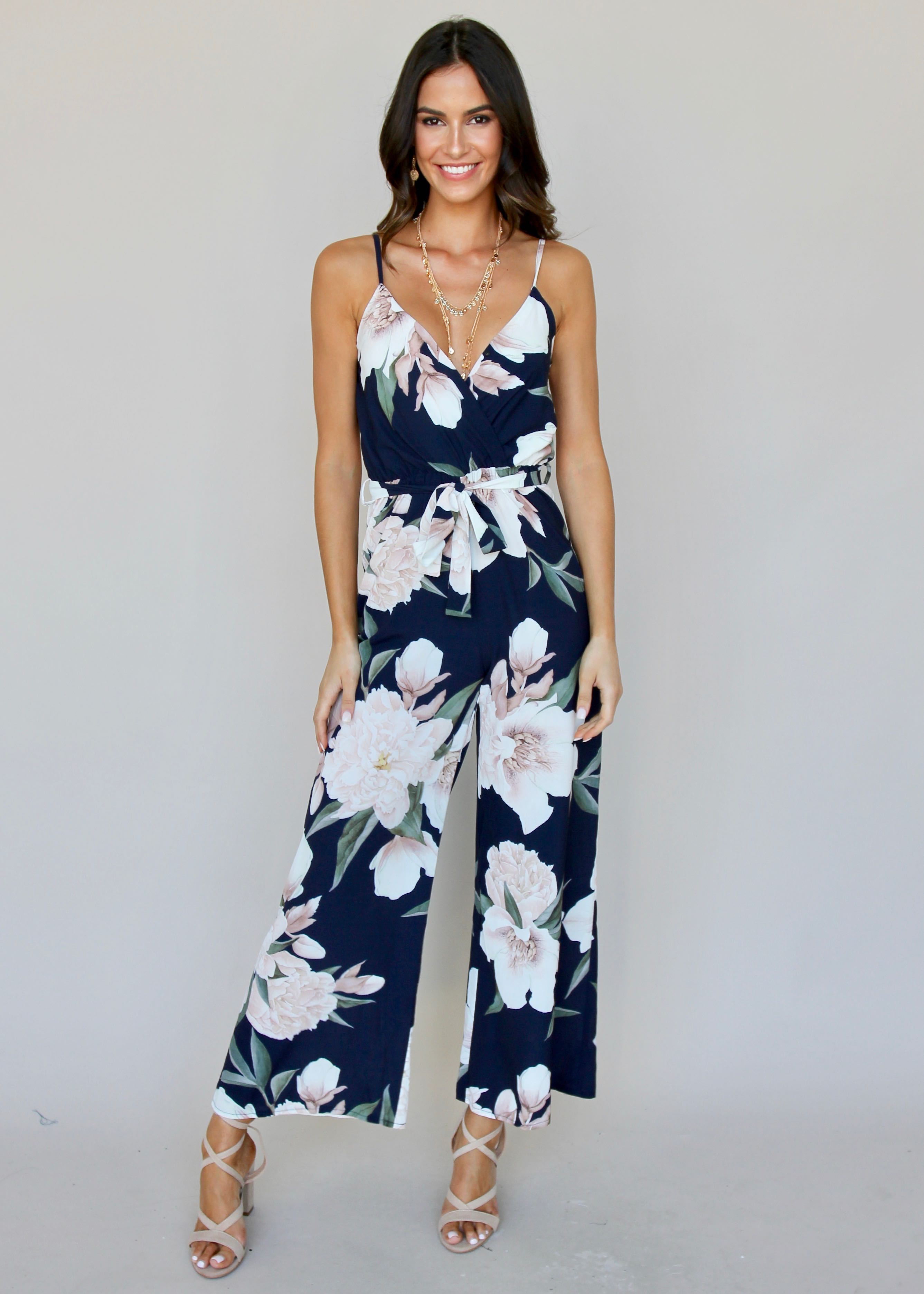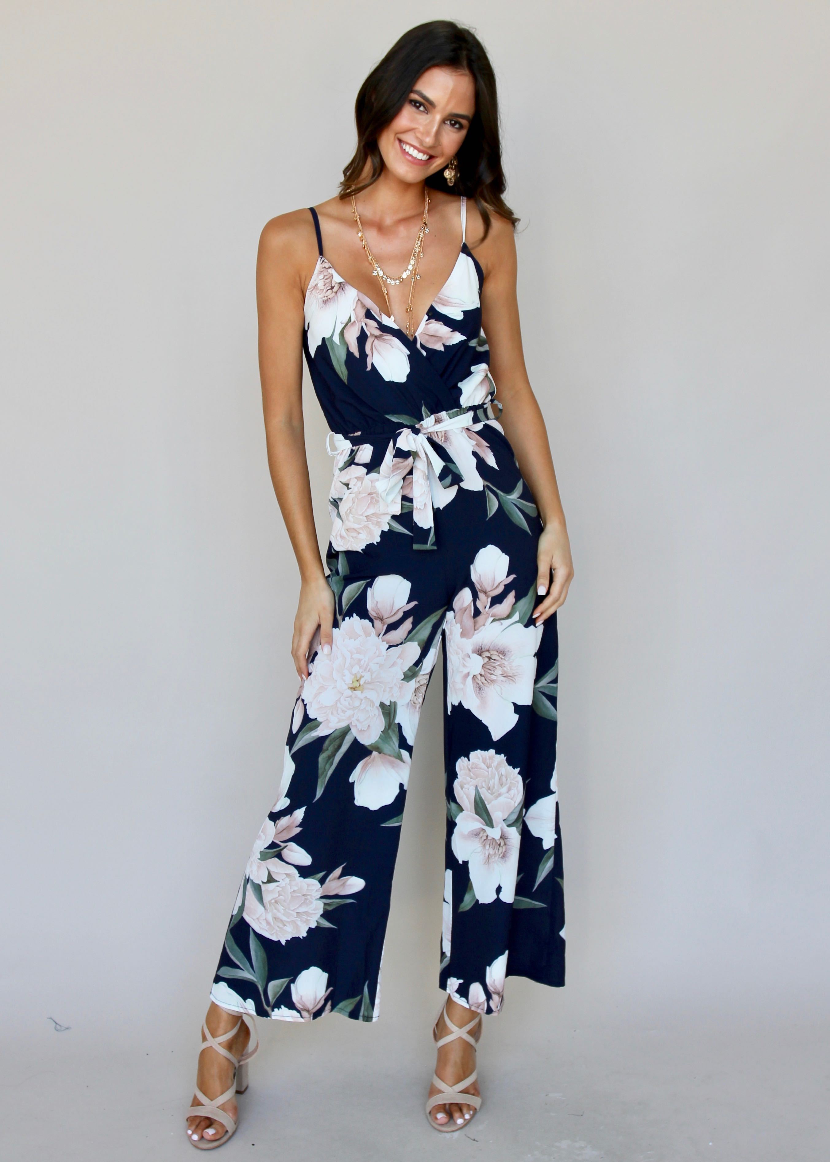 The perfect all in one outfit, a must-have this season! Effortless and gorgeous, in an easy to wear navy floral. Keep it simple and pair this with your fave tan accessories.
