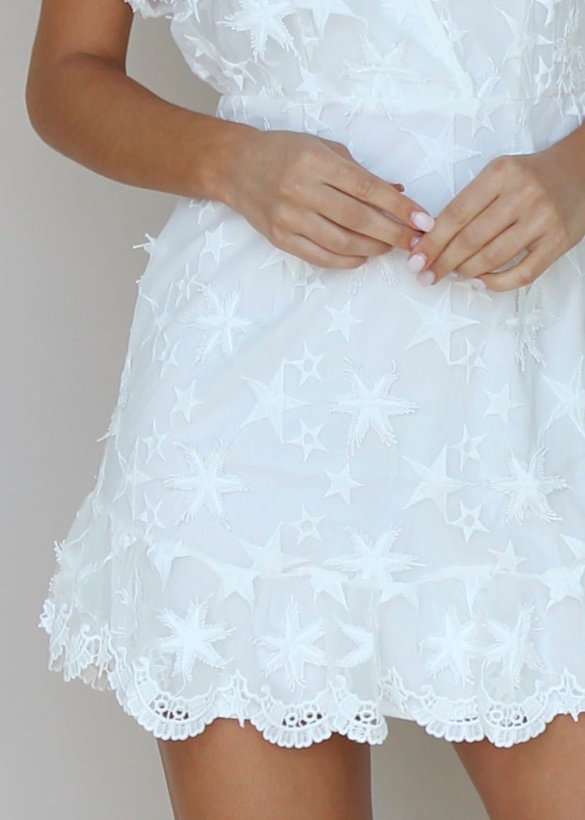 A lightweight swing dress that is the perfect dress as event season neats! With embroidered detailing, it adds a special touch to a simple dress! This is a must-have white dress for your wardrobe.
