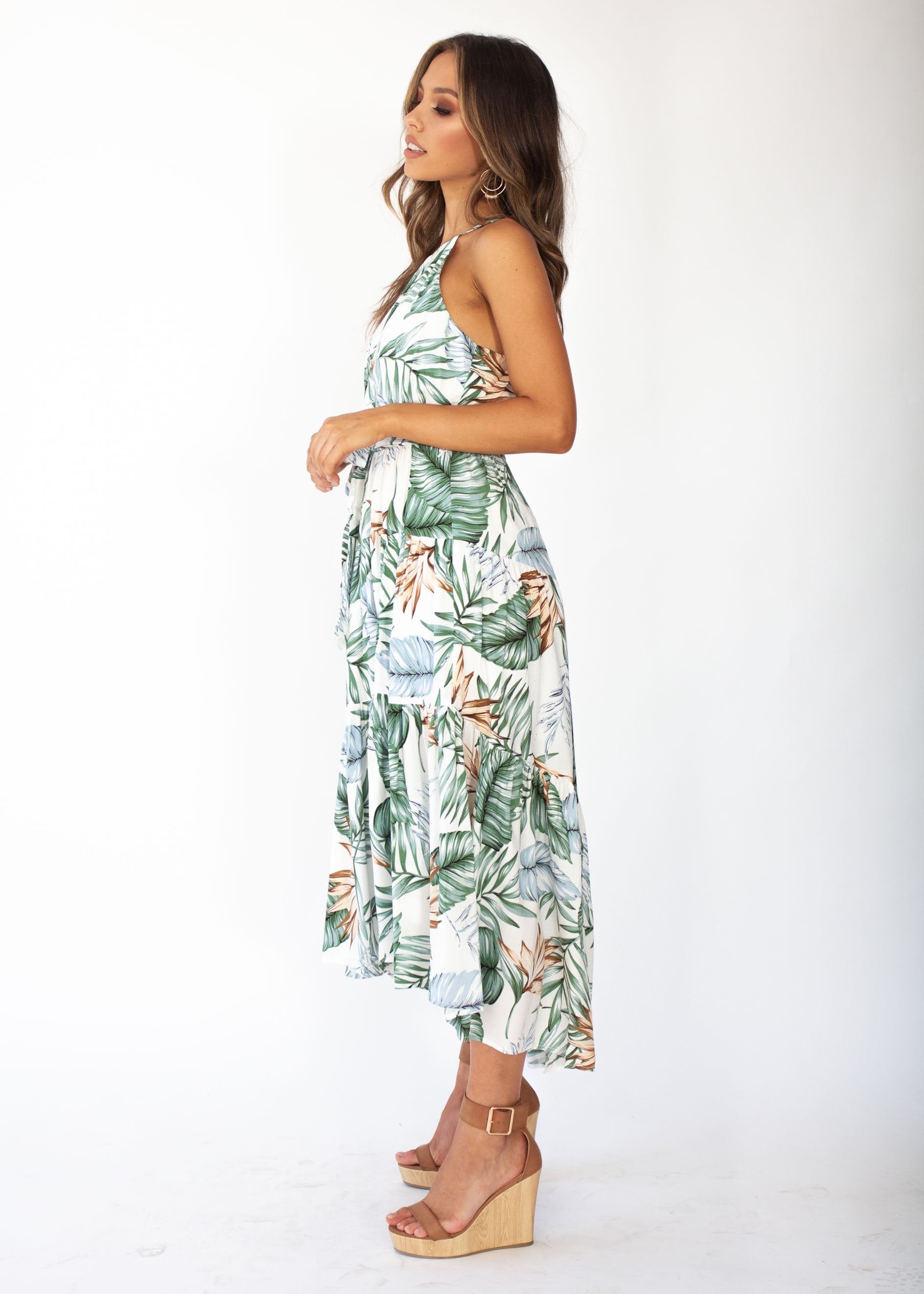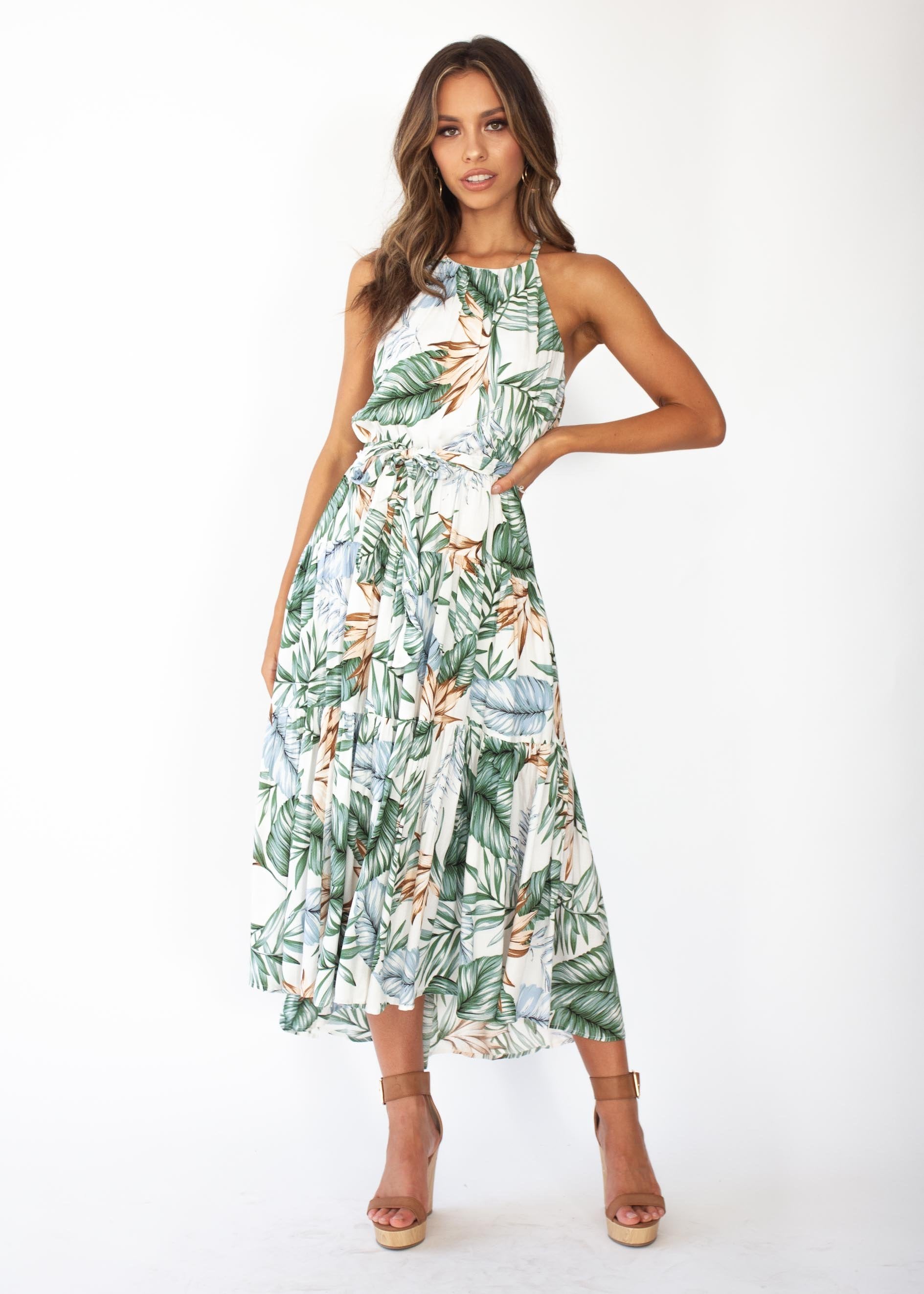 Solstace Midi Dress - White Palm