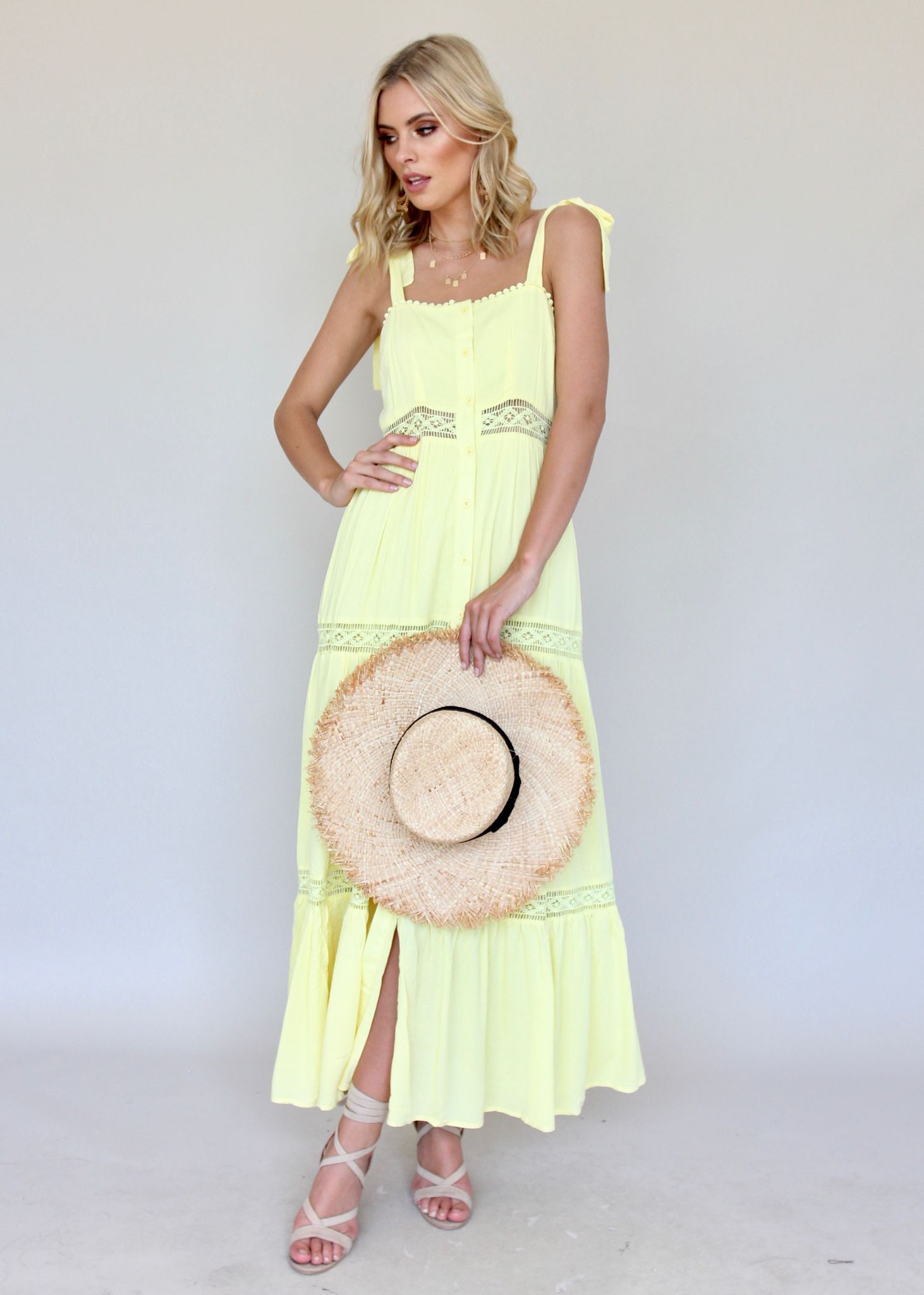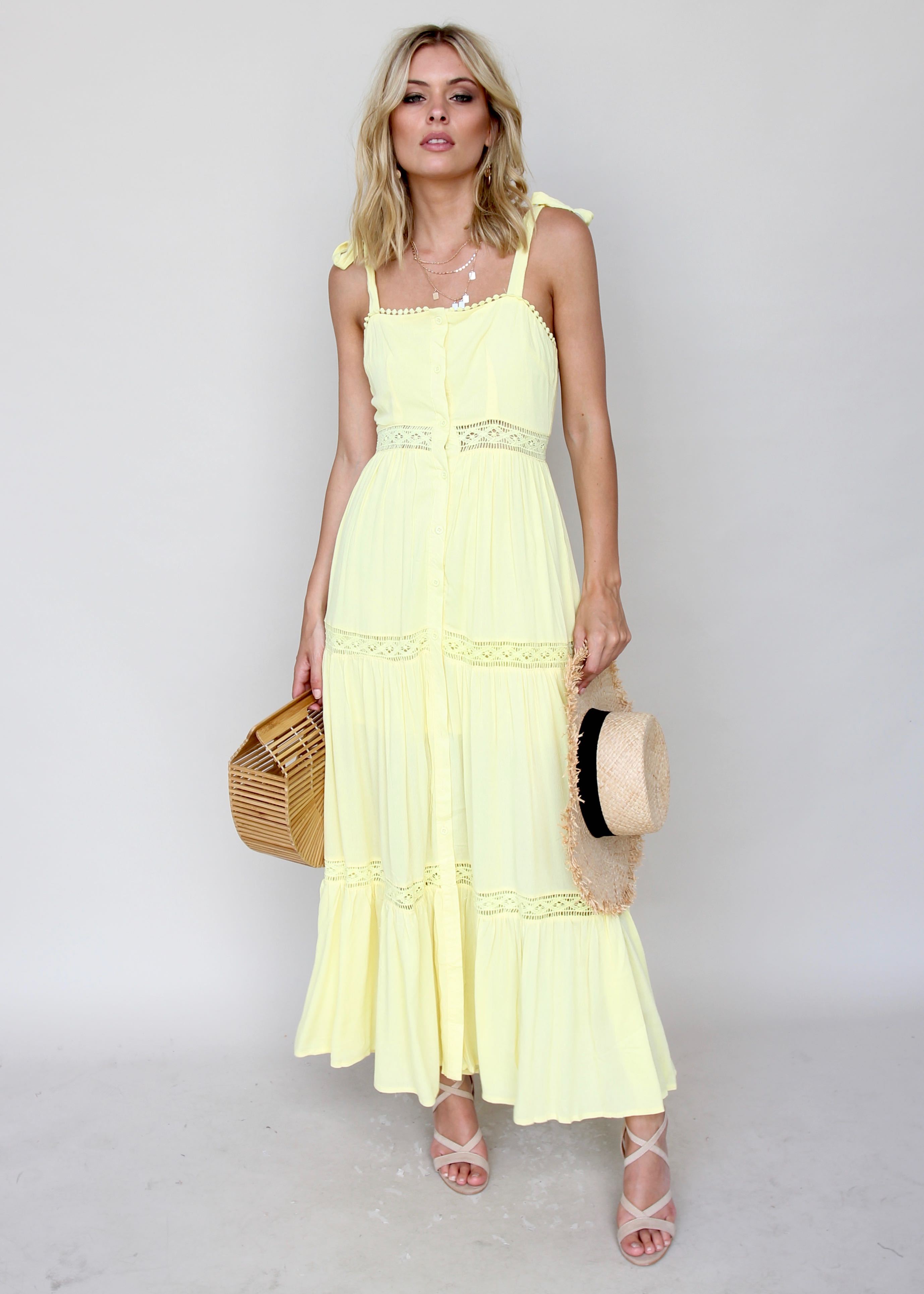 A simple and easy to wear maxi dress, in a pale yellow colour!