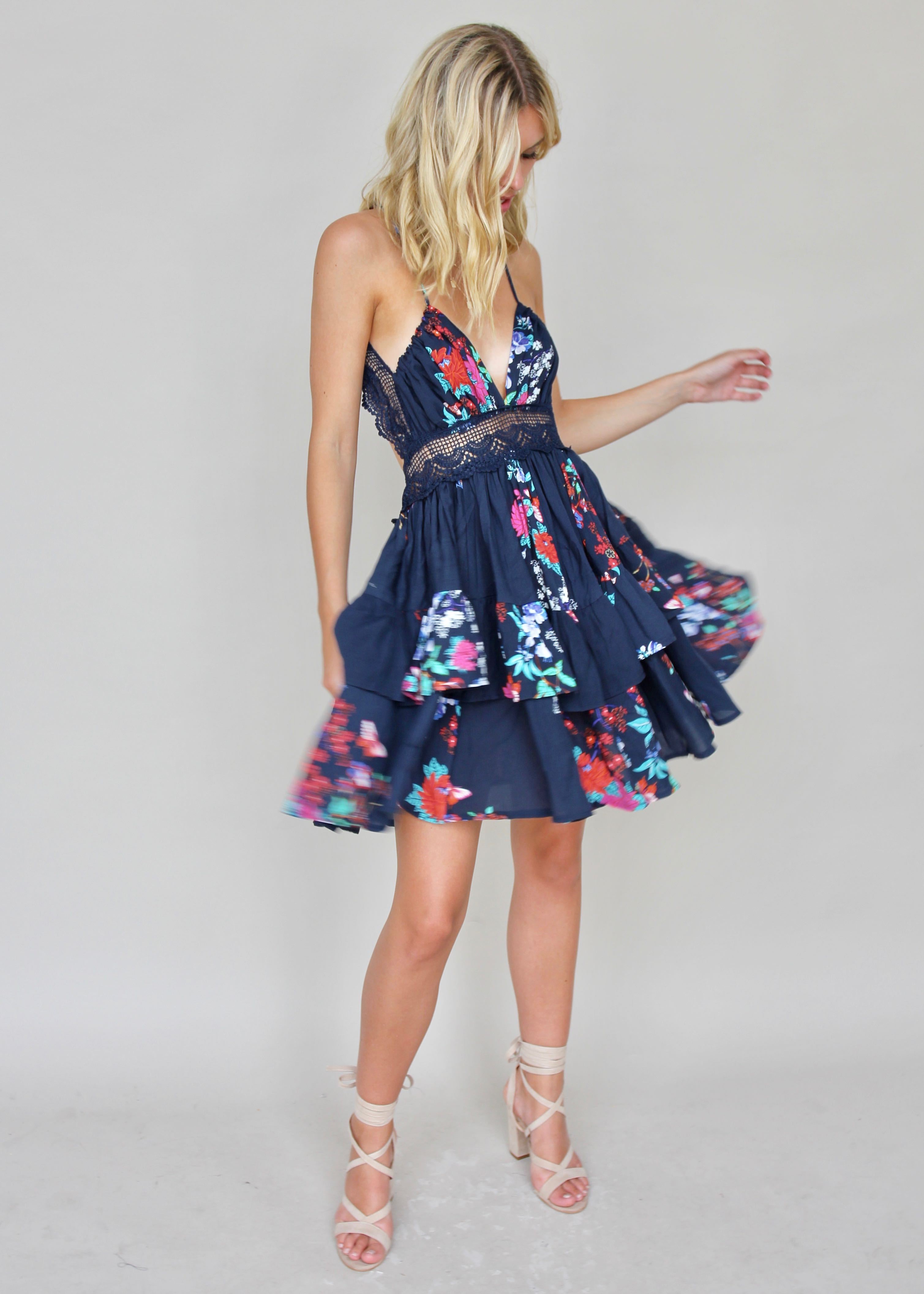 A fun and flirty dress that is perfect for Spring! In a gorgeous dark floral print, you'll love this easy to wear piece. Style it up with our Rocky Sunglasses and Tropez Necklace for ultimate Spring vibes!