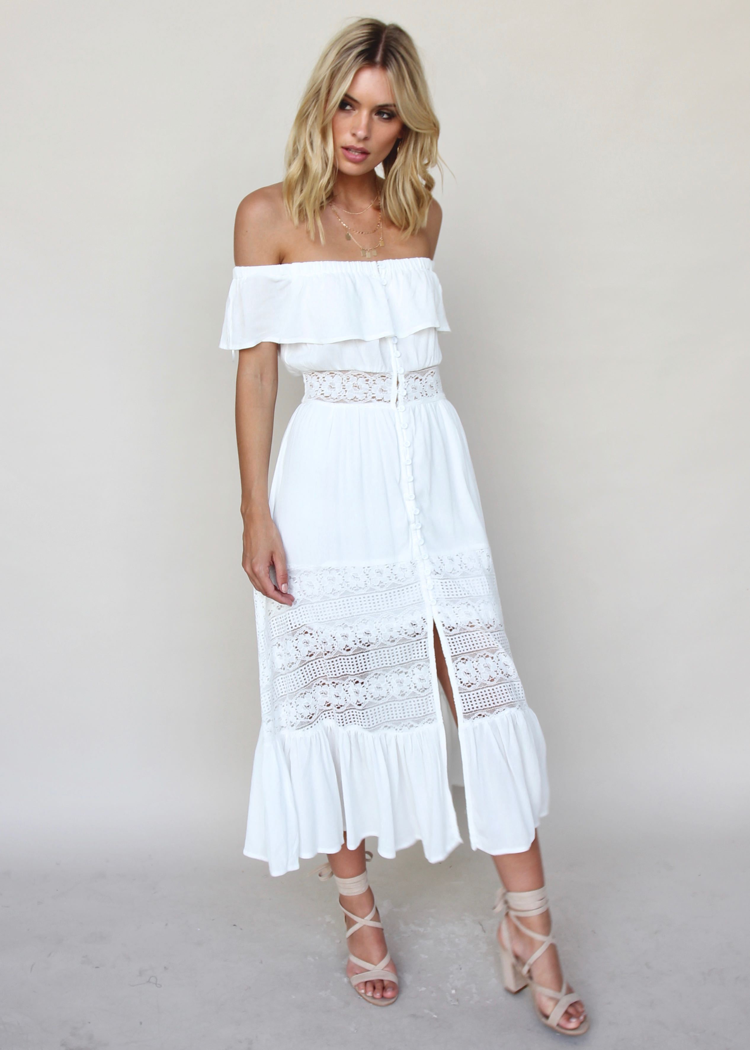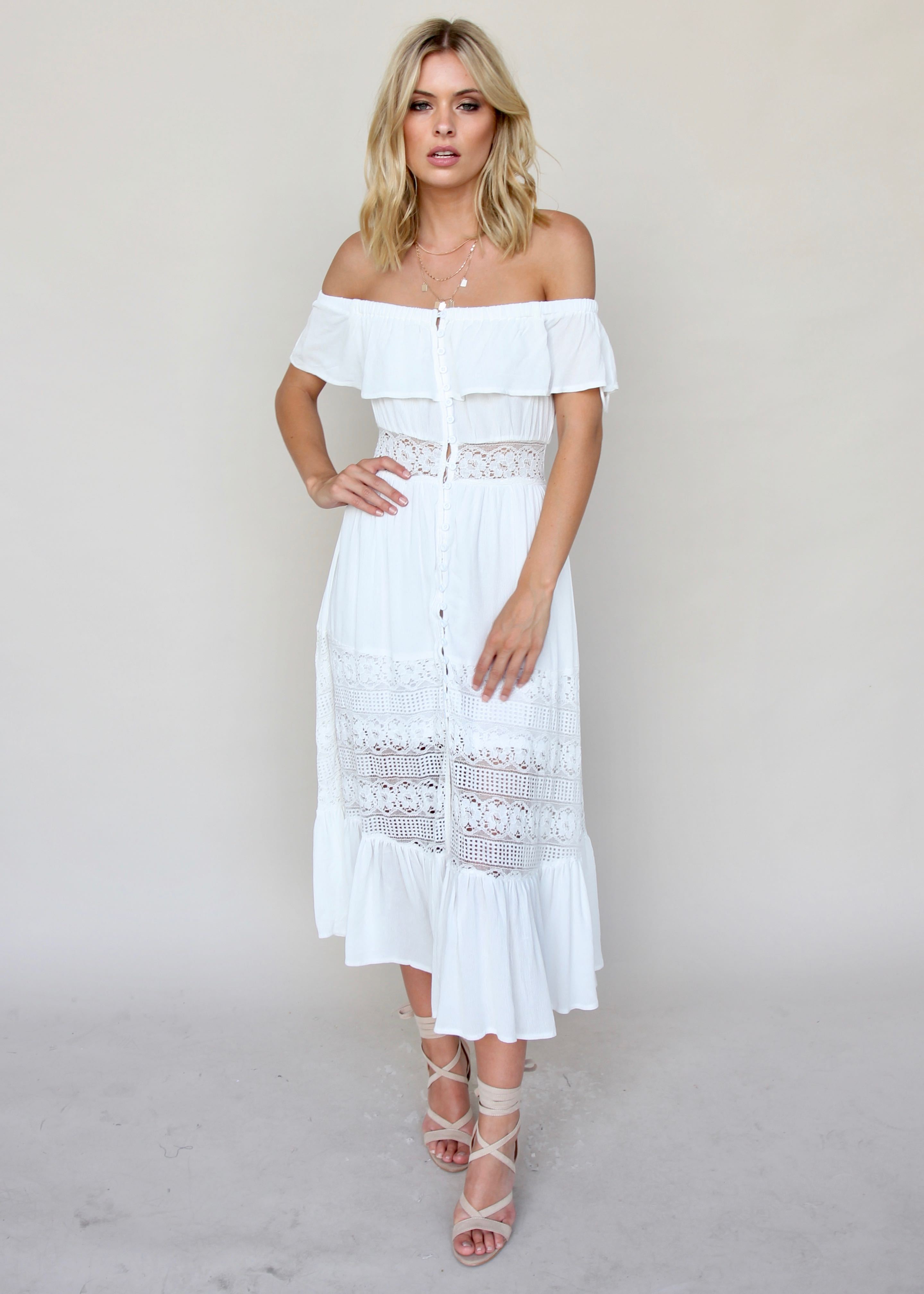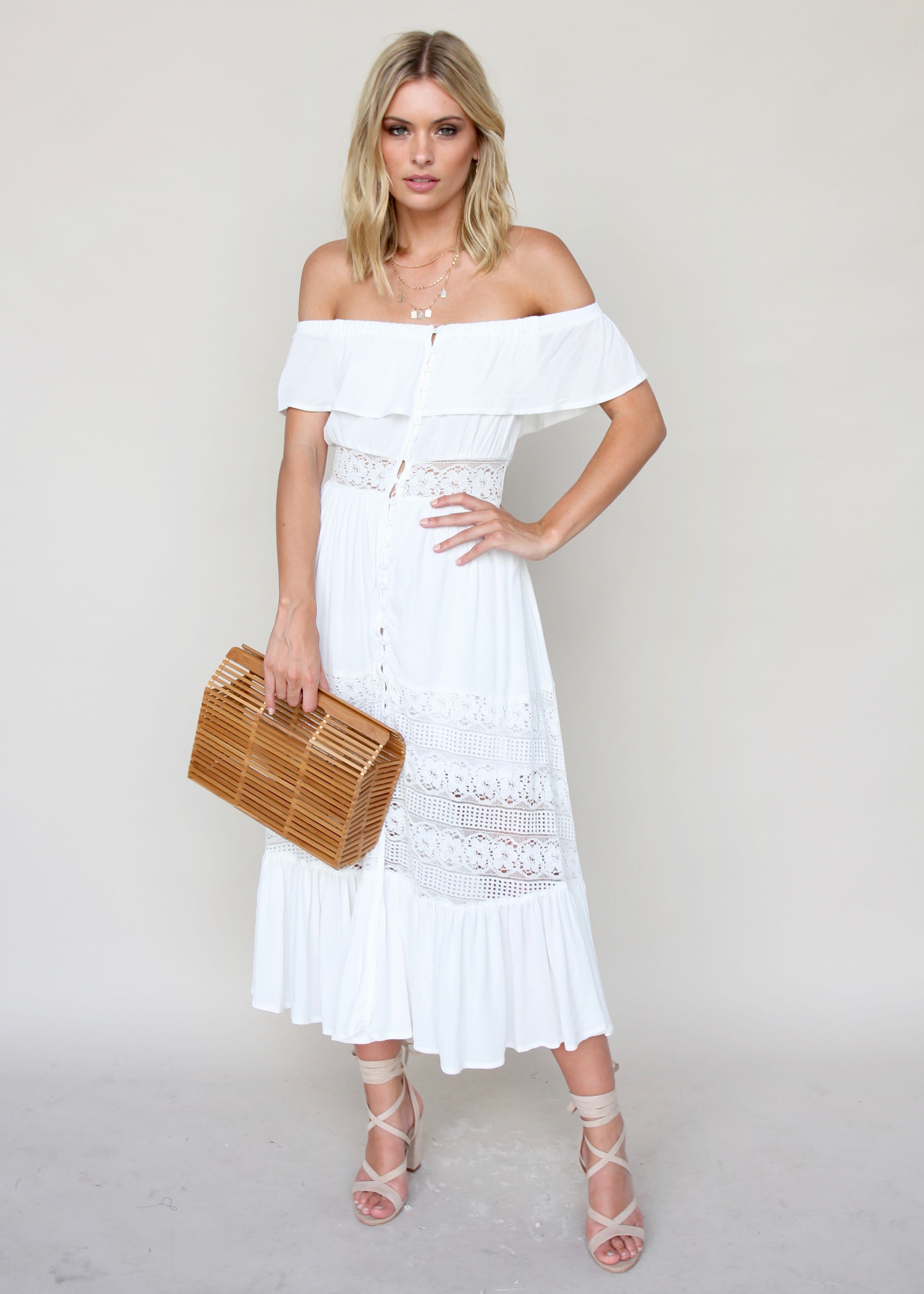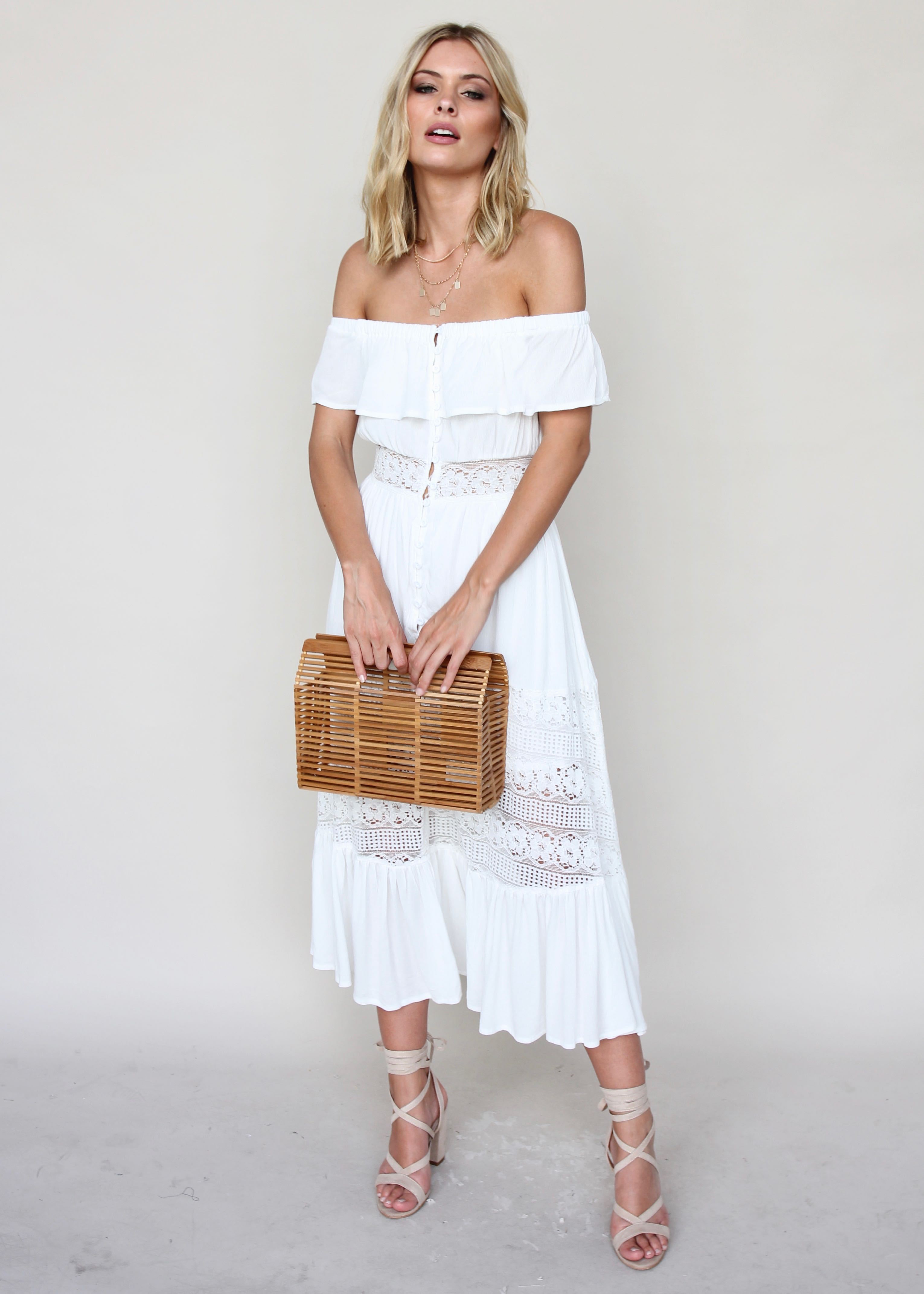 A white maxi is a must-have for Summer! This gorgeous maxi is perfect and freshens up your wardrobe. Finish it with out St Tropez Necklace and white Duskii Earrings.