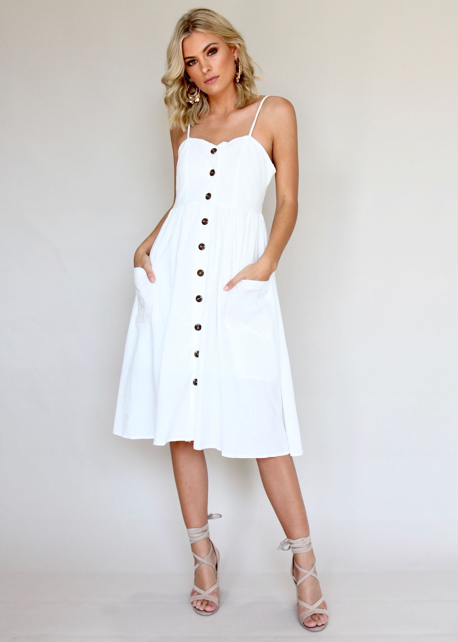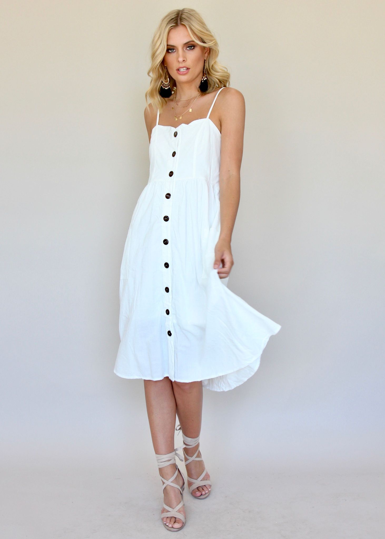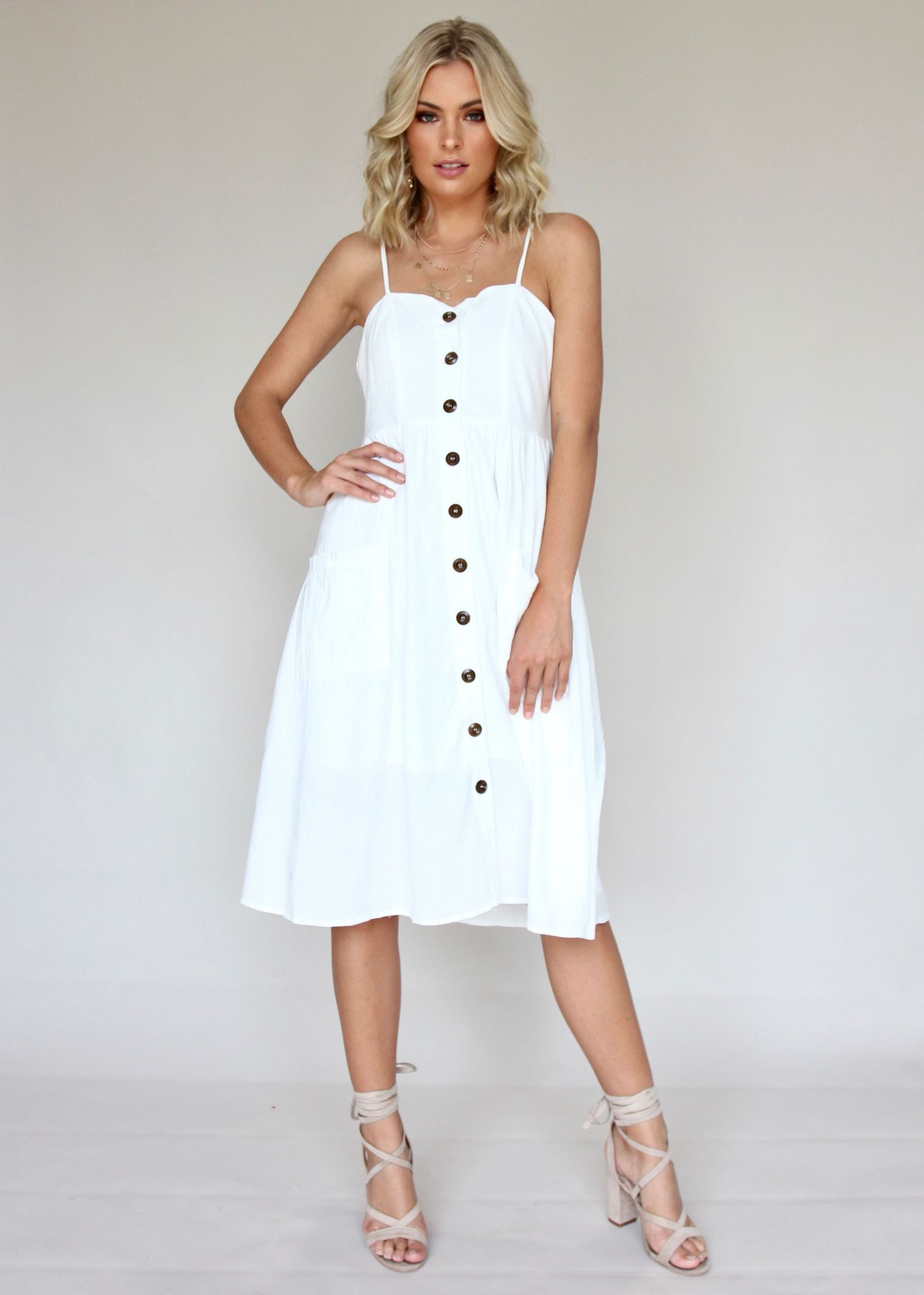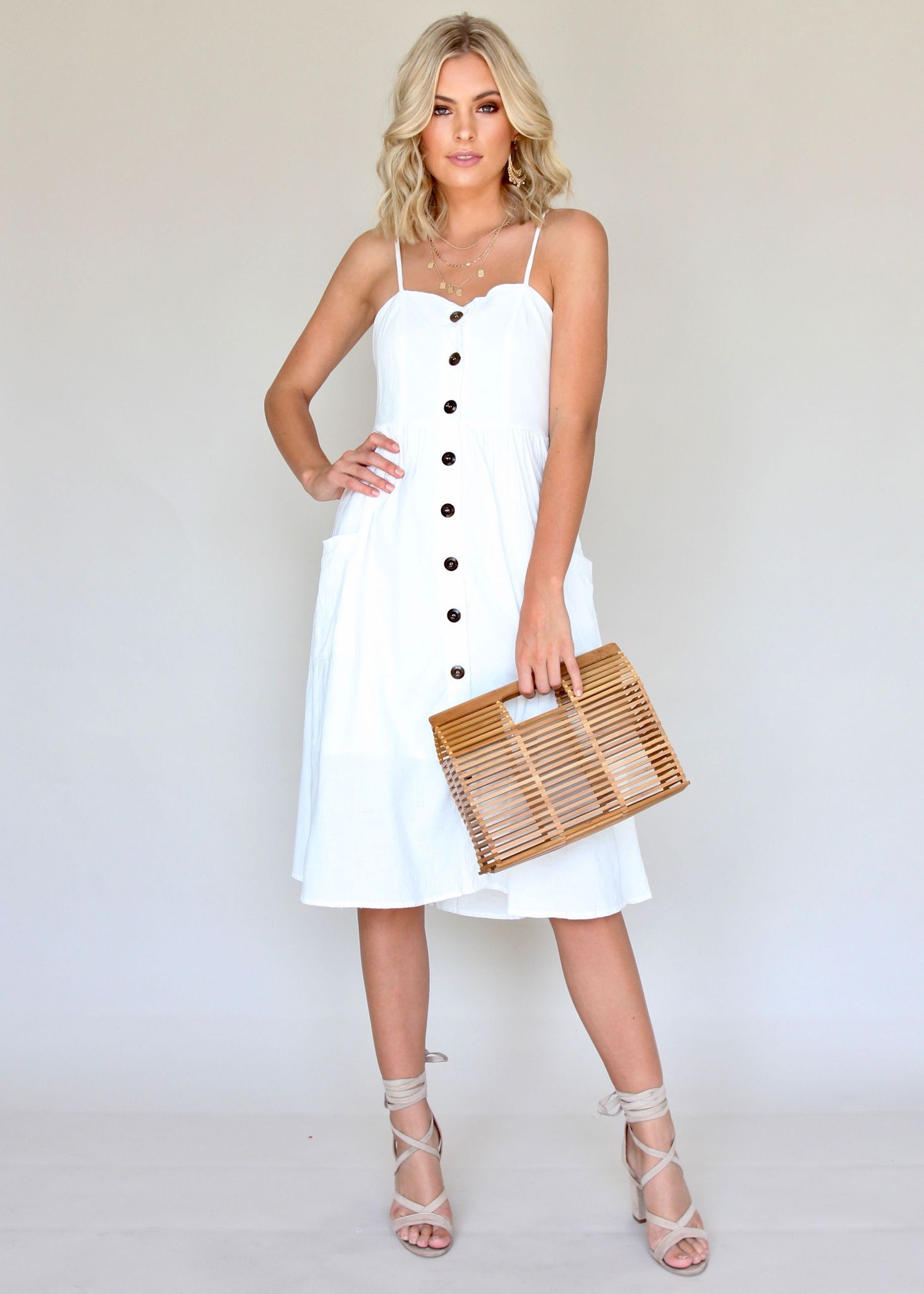 A simple and easy to wear midi dress in a fresh white! A perfect dress as Summer nears. Dress this with our Aruba Hat and Cavo bag for the ultimate boho look!
