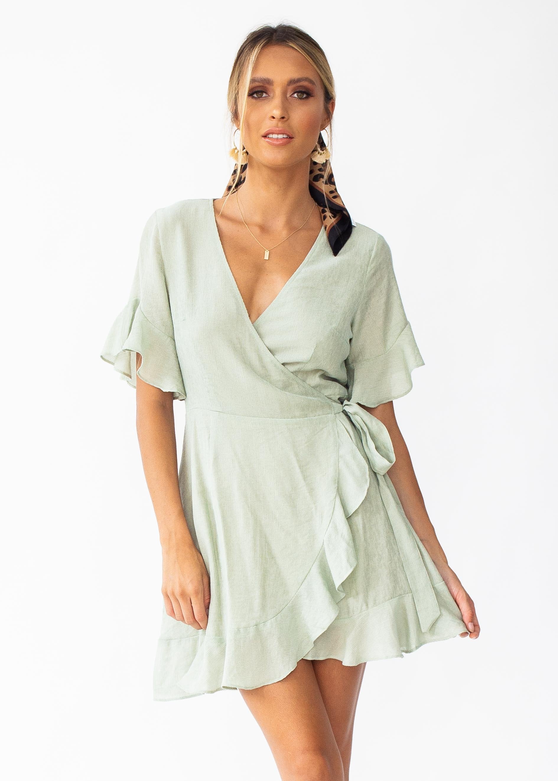 Afterthought Wrap Dress - Light Sage