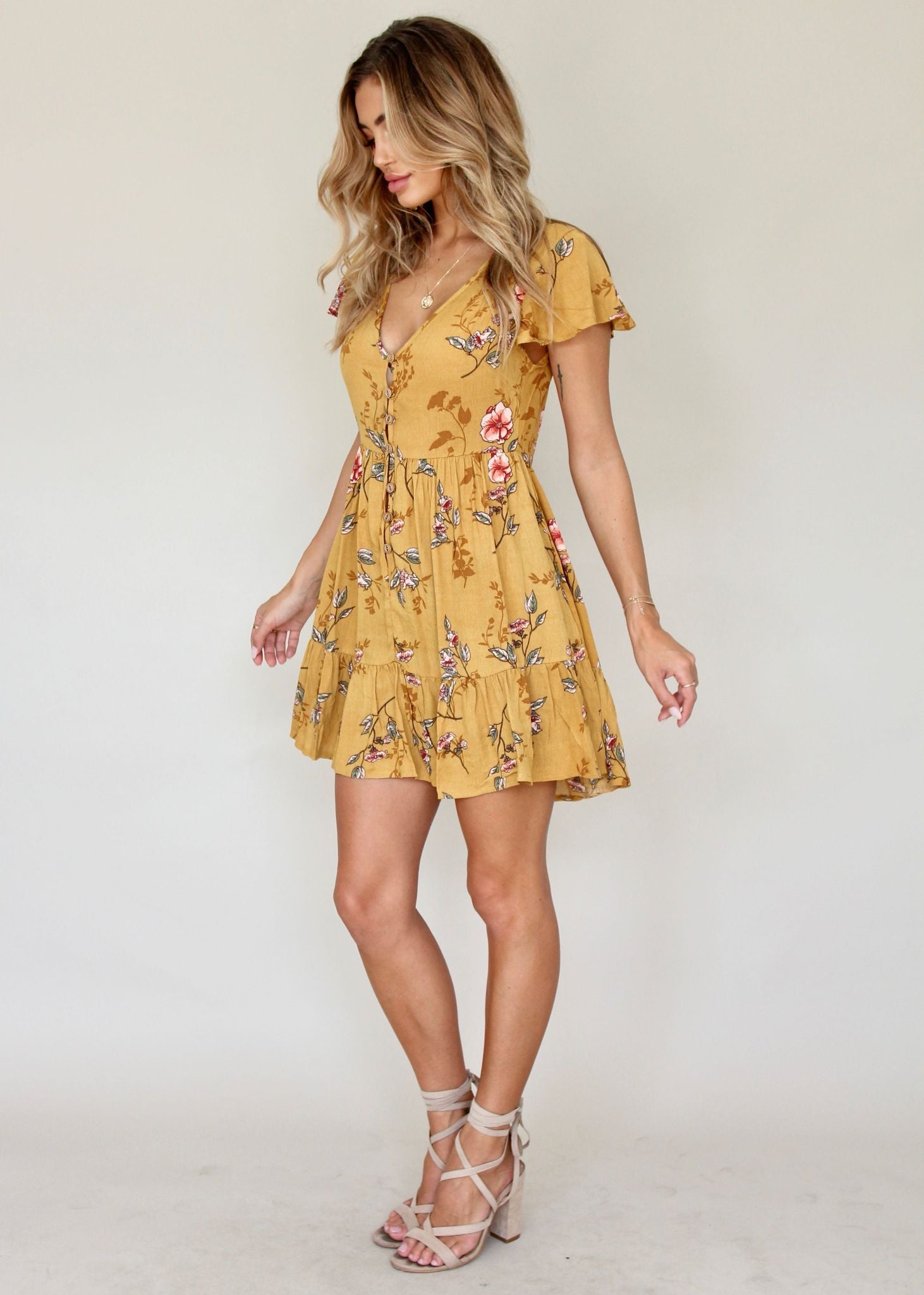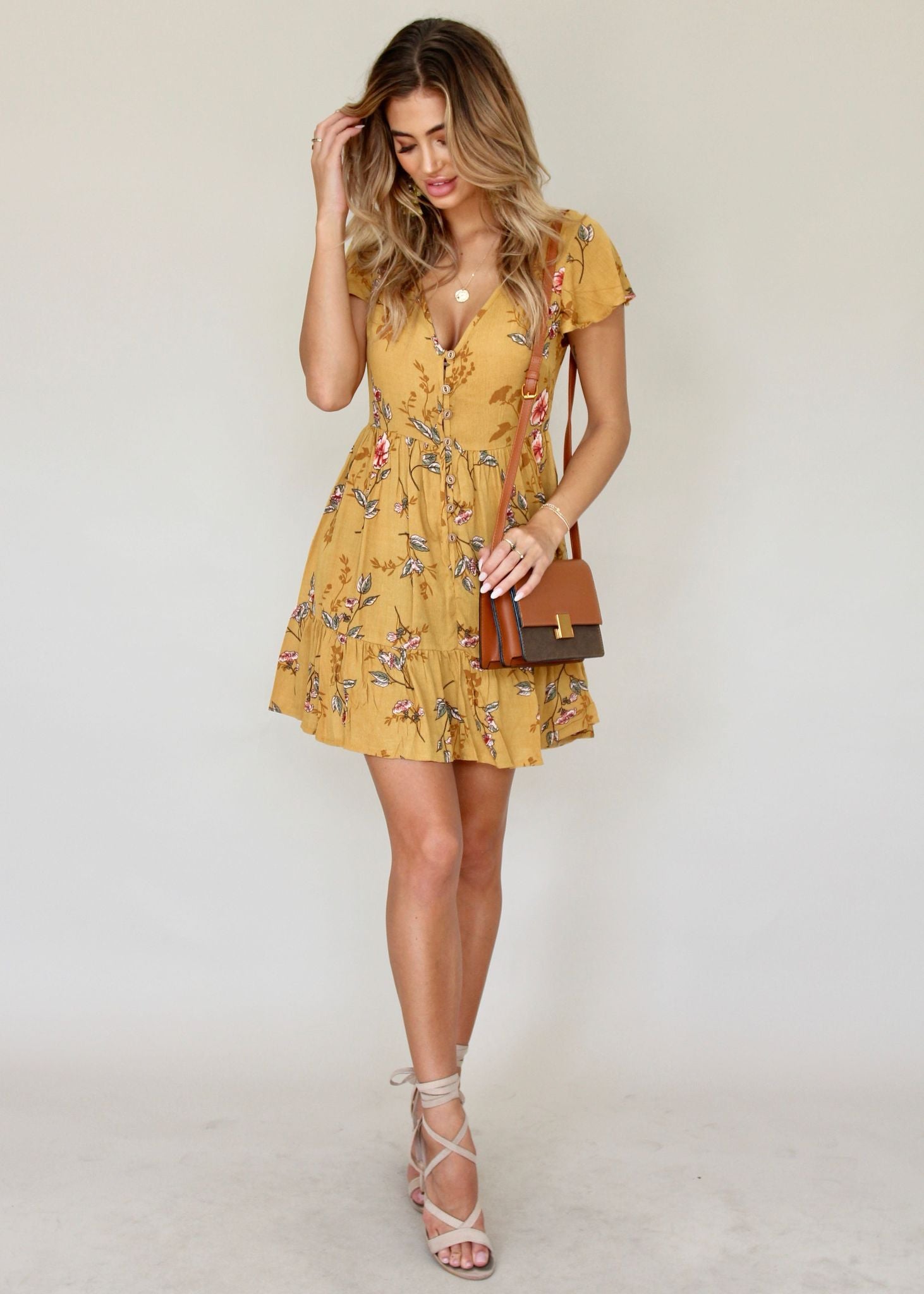 A simple yet stunning little swing dress, in a gorgeous mustard floral! Lightweight and comfortable, this is a great Summer style to have in your wardrobe. Finish off the look with our Aruba Hat and Portobello Bag for the ultimate boho look.