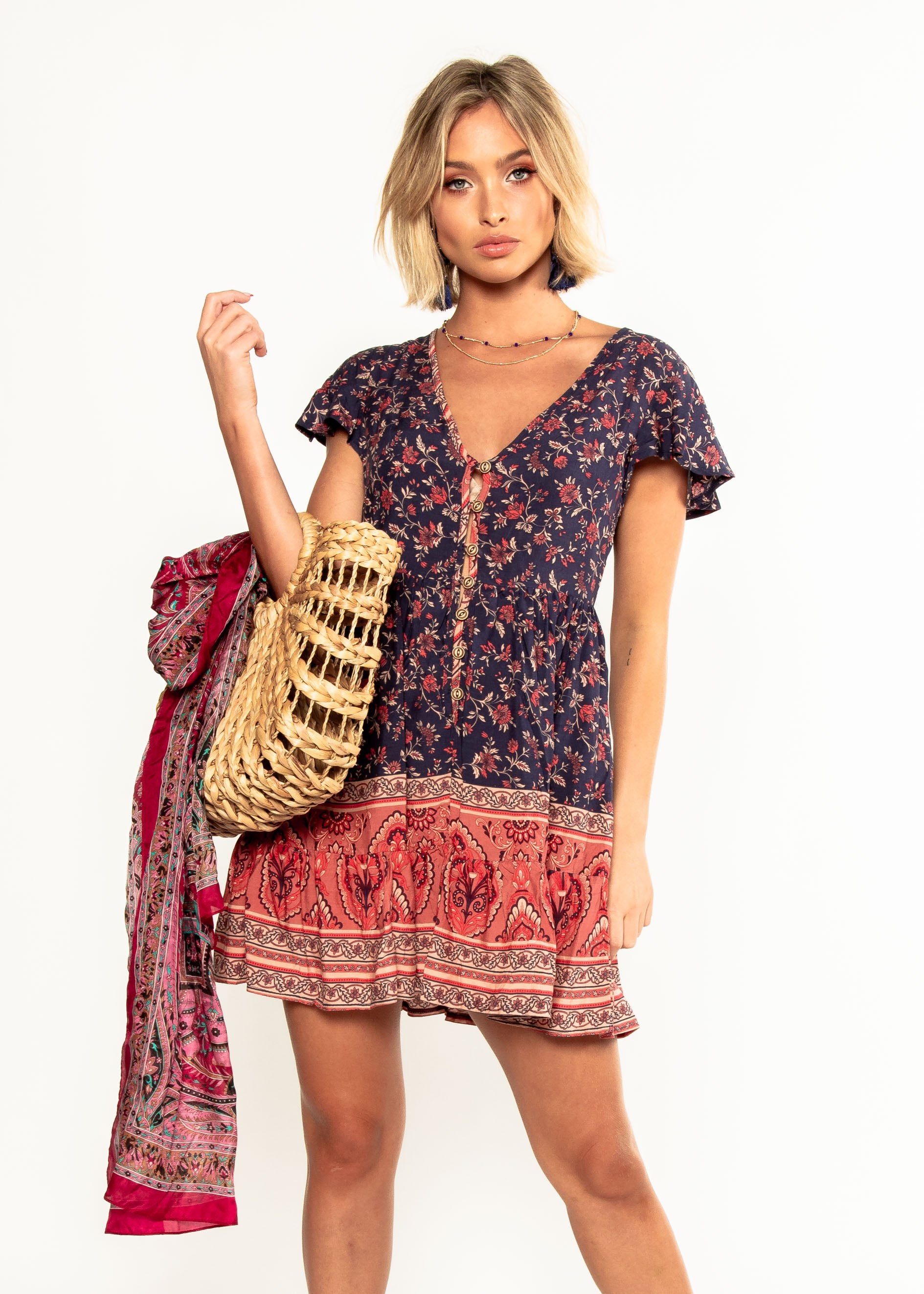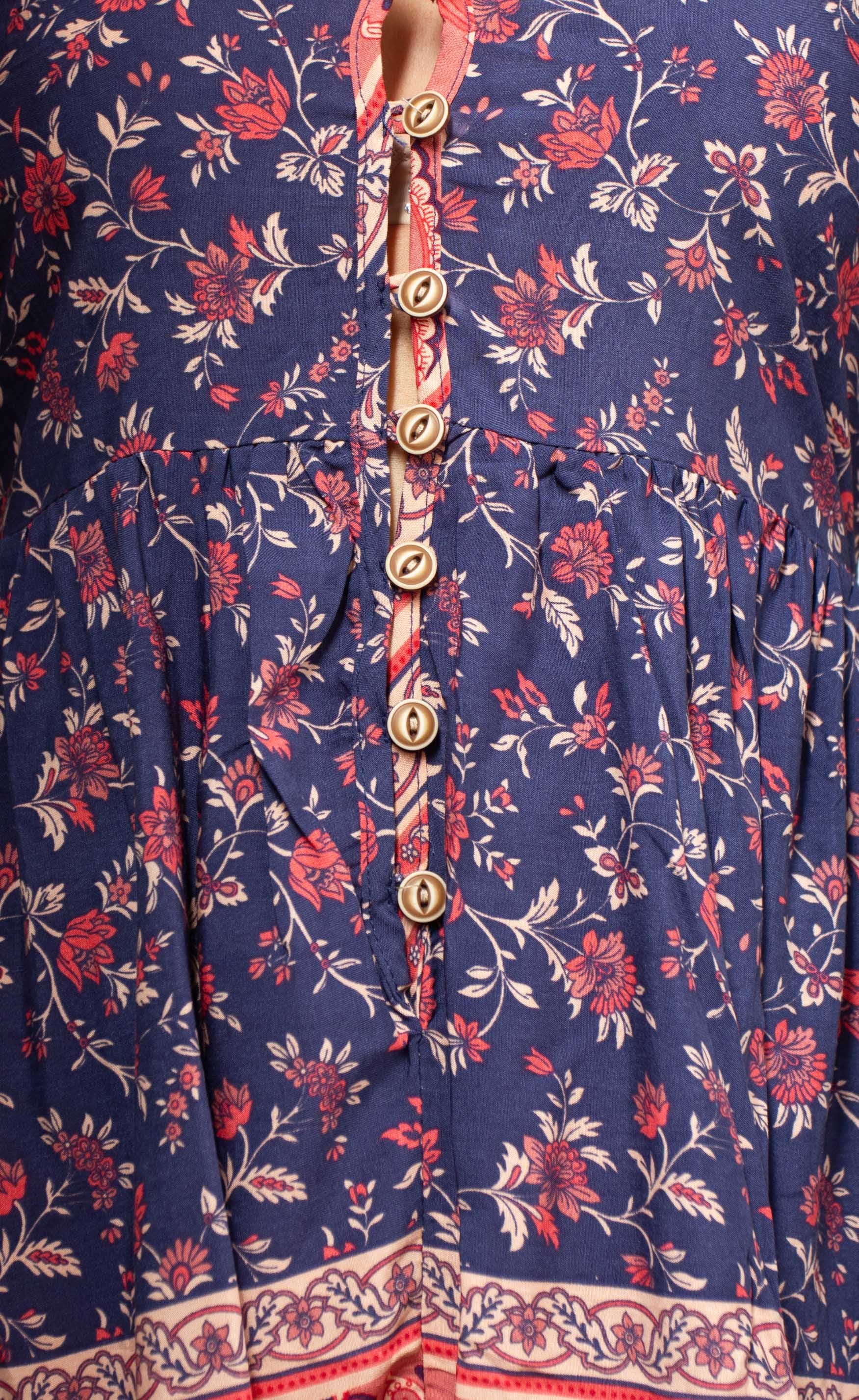 A simple yet stunning little swing dress, in a gorgeous blue floral! Lightweight and comfortable, this is a great Summer style to have in your wardrobe. Finish off the look with our a cute hat and bag for the ultimate Summer look.