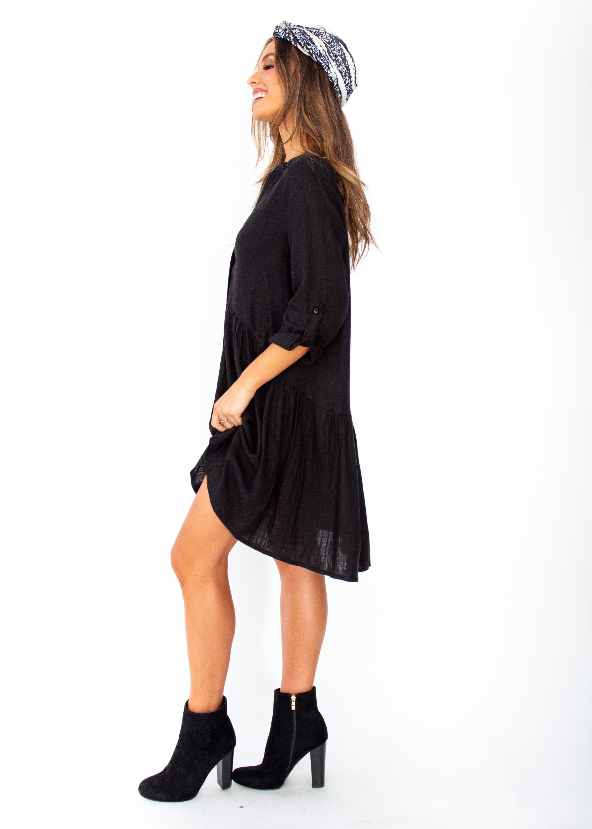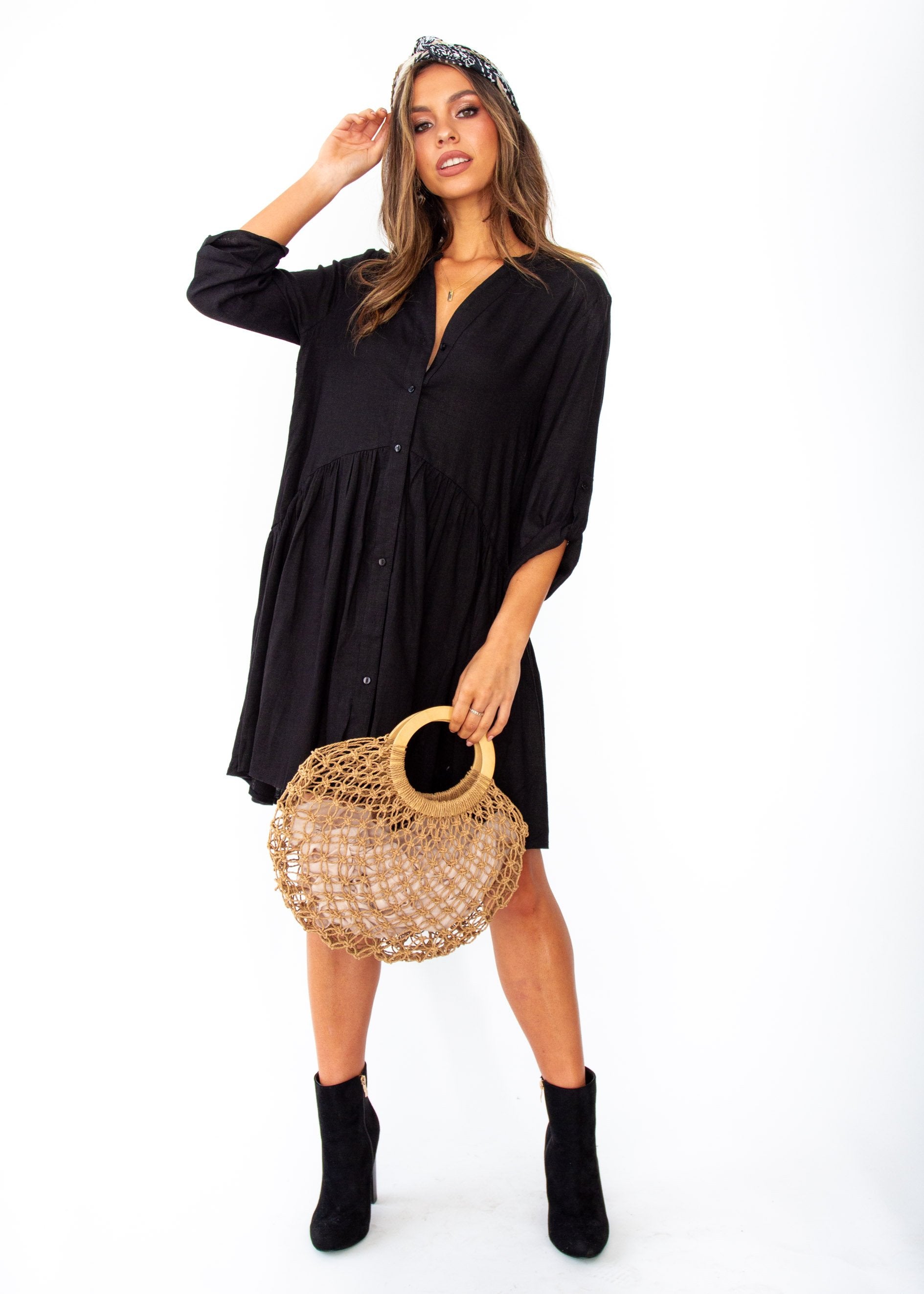 This linen tunic dress is the ideal transeasonal piece! Perfect for lazy days or your next event, this black dress will be your ultimate go-to.