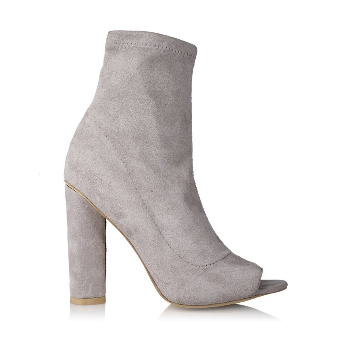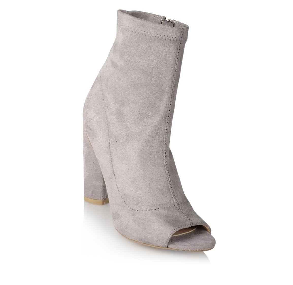 Parody by Billini is a must-have peeptoe bootie. Featuring a open peeptoe, sock bootie upper and inner zipper fastening on a mid block heel. Available in Black Suede, Stone Suede, Light Grey Suede and Dark Mauve Suede. Man made upper, lining and outsole. Heel height 9.3cm