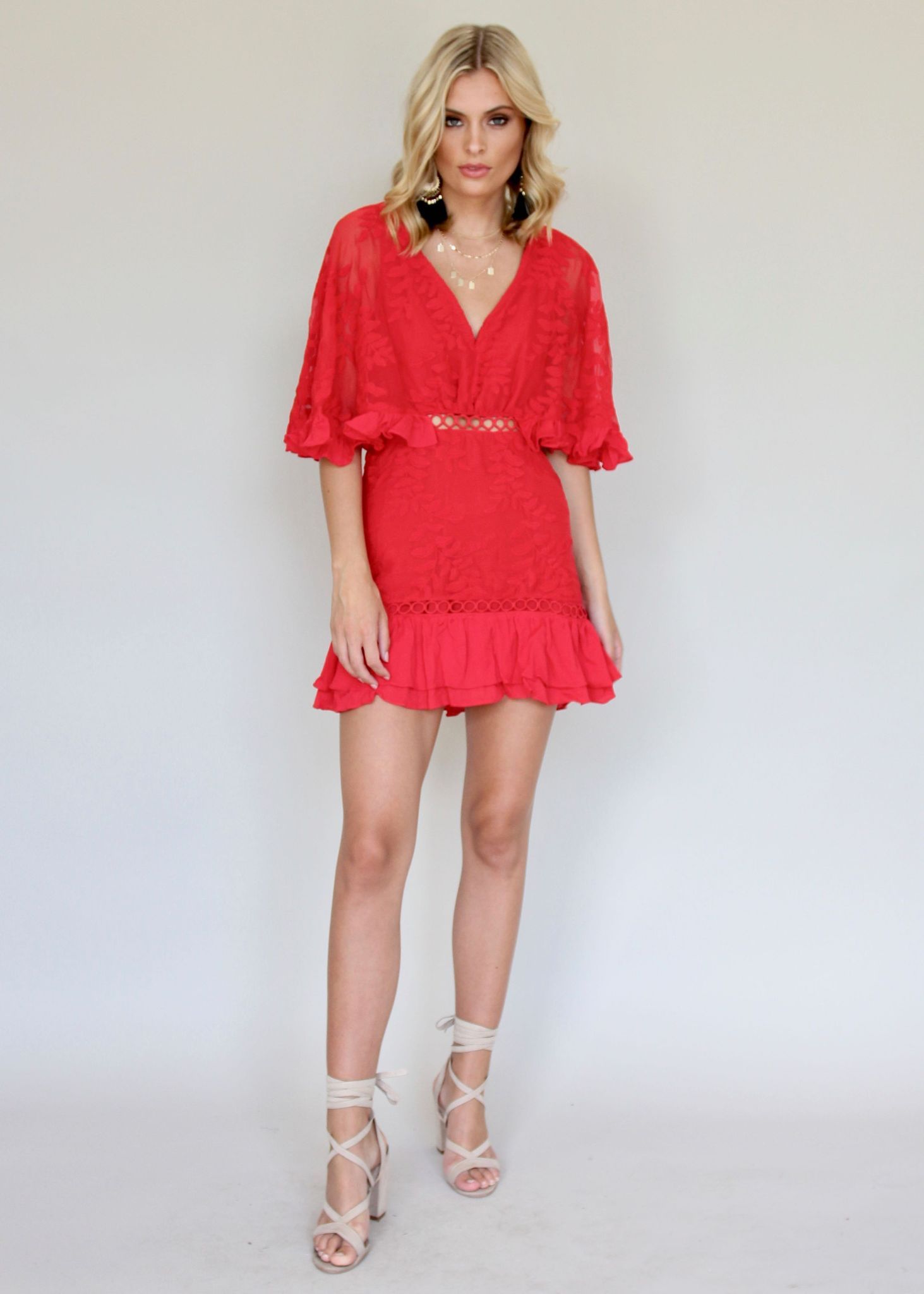 A lace detailed dress, perfect for the upcoming weather! Wear this to your next event! This dress is a head-turner!