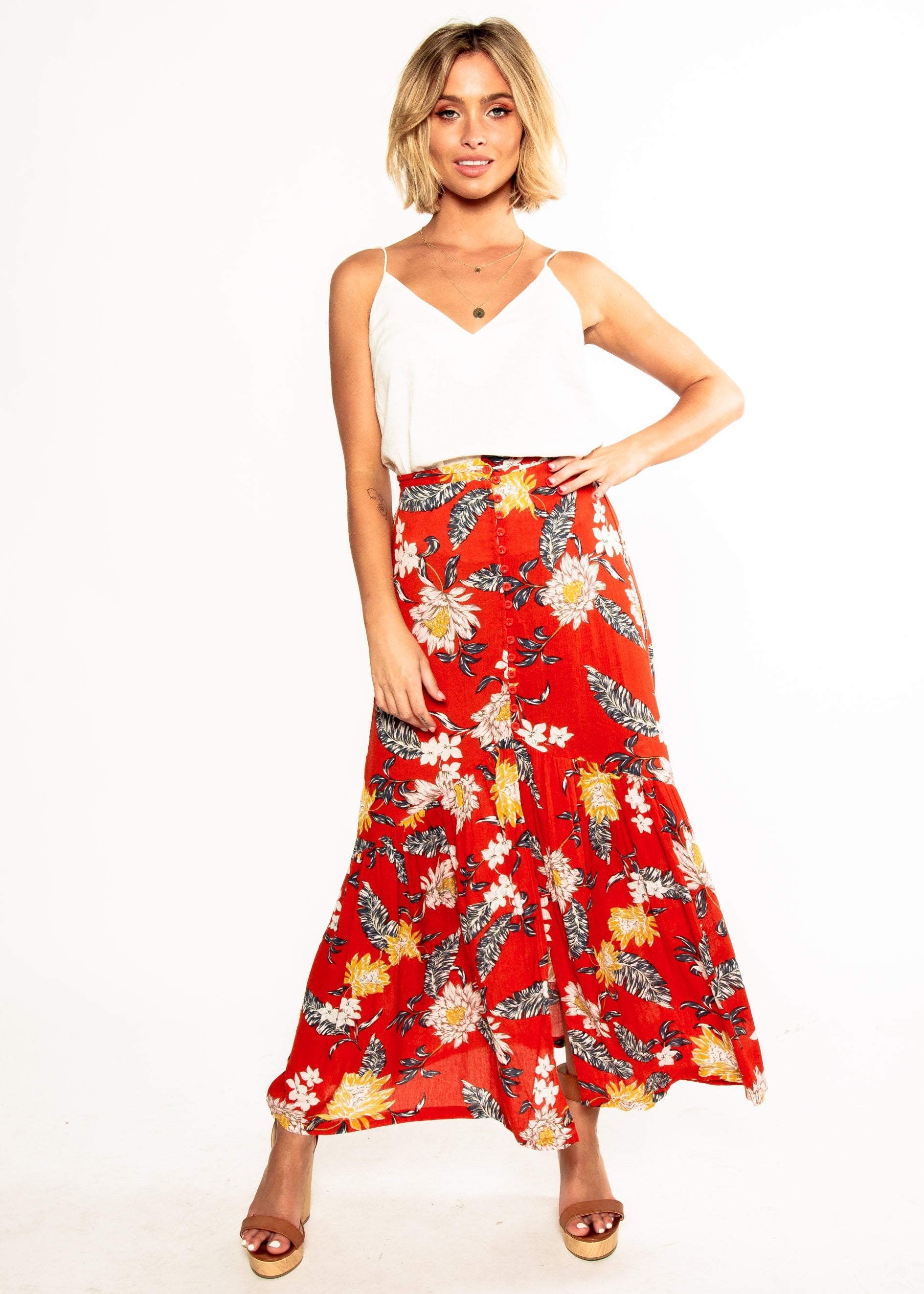 Camelia Maxi Skirt - Red Floral