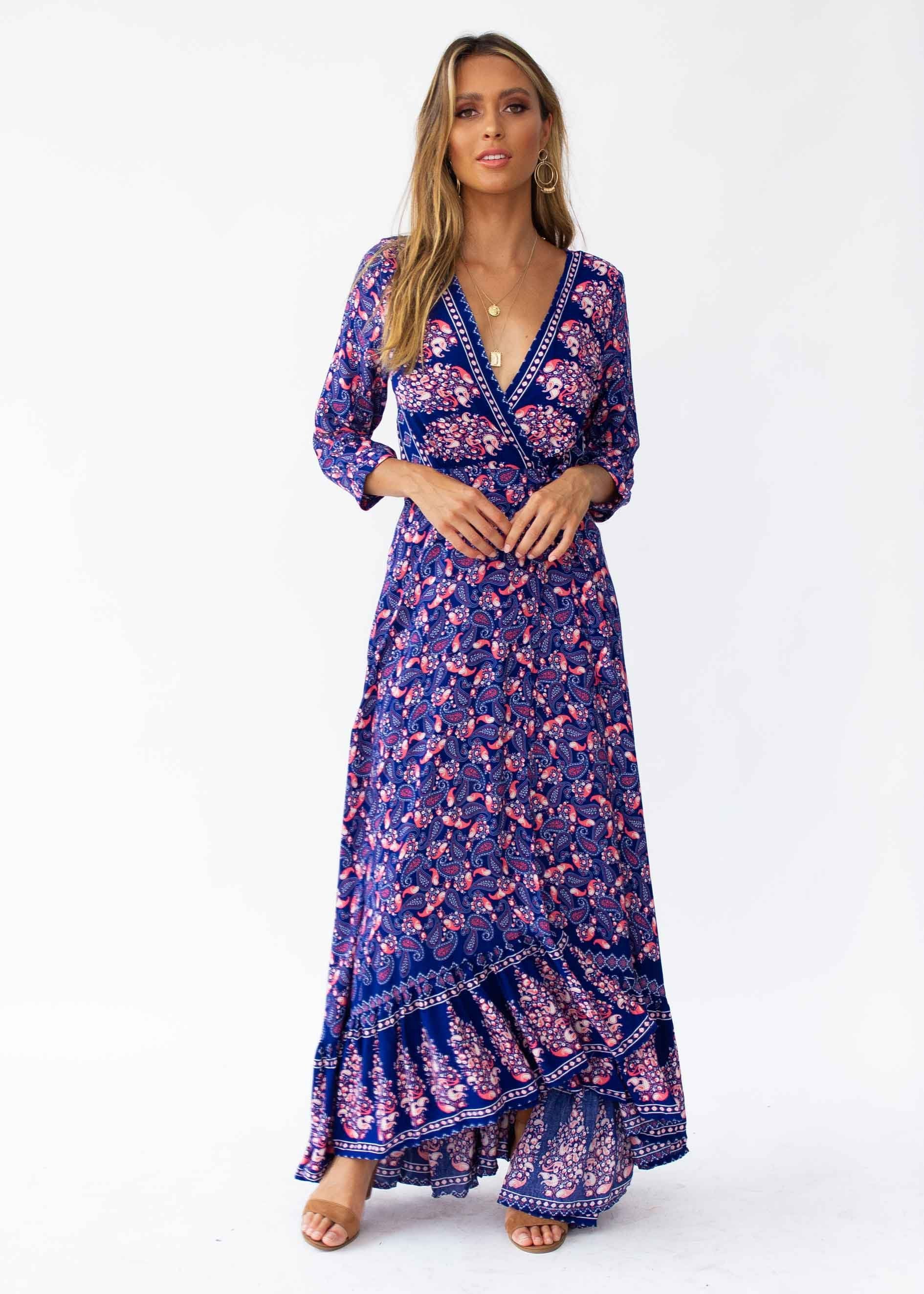 Print heaven!! You'll never want to get out of this gorgeous, lightweight wrap maxi.