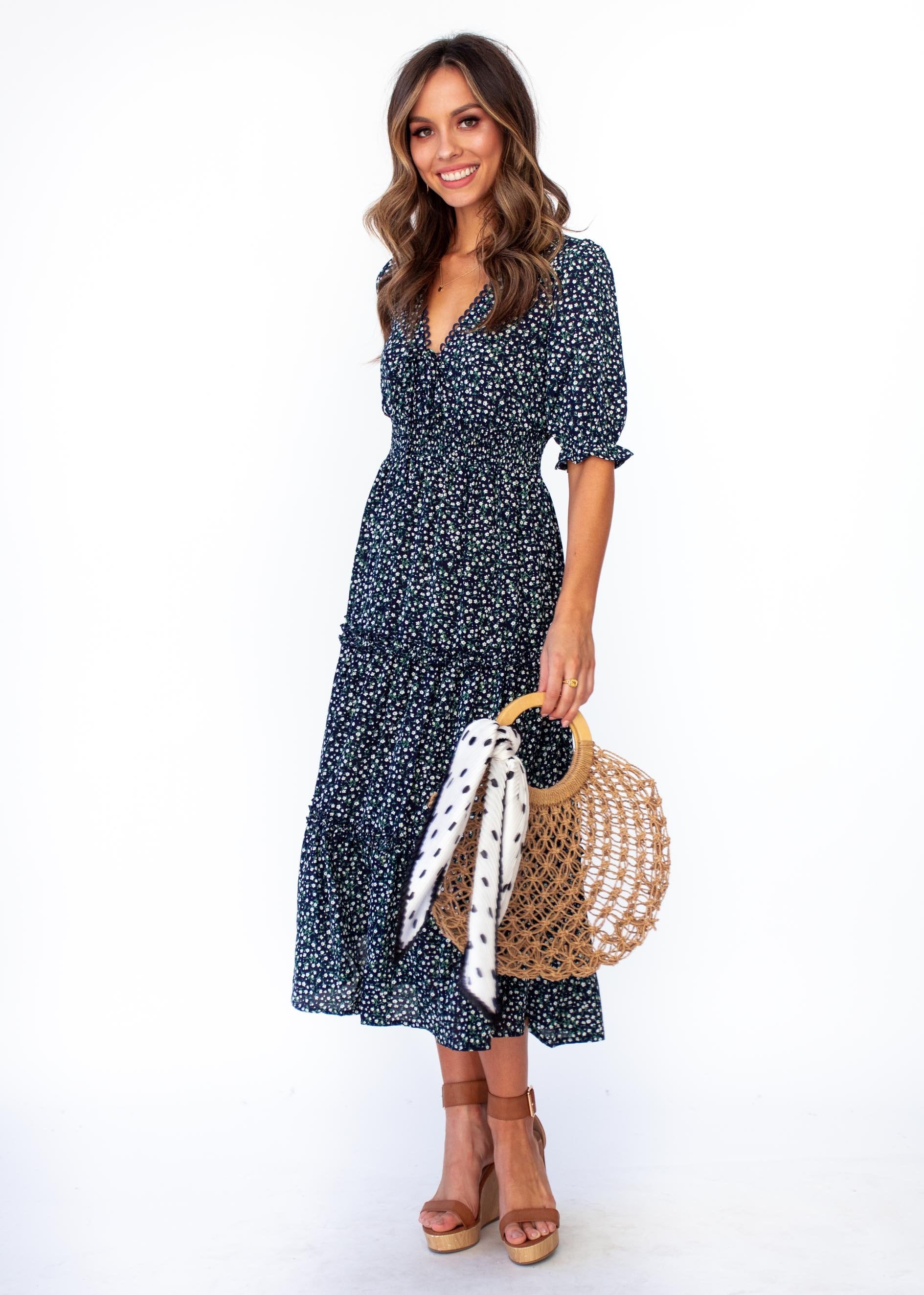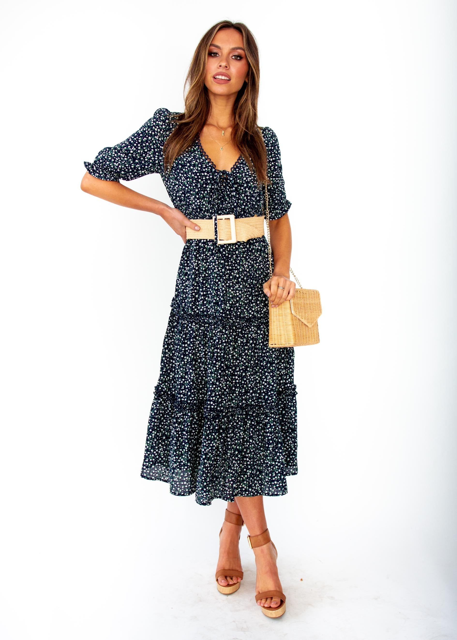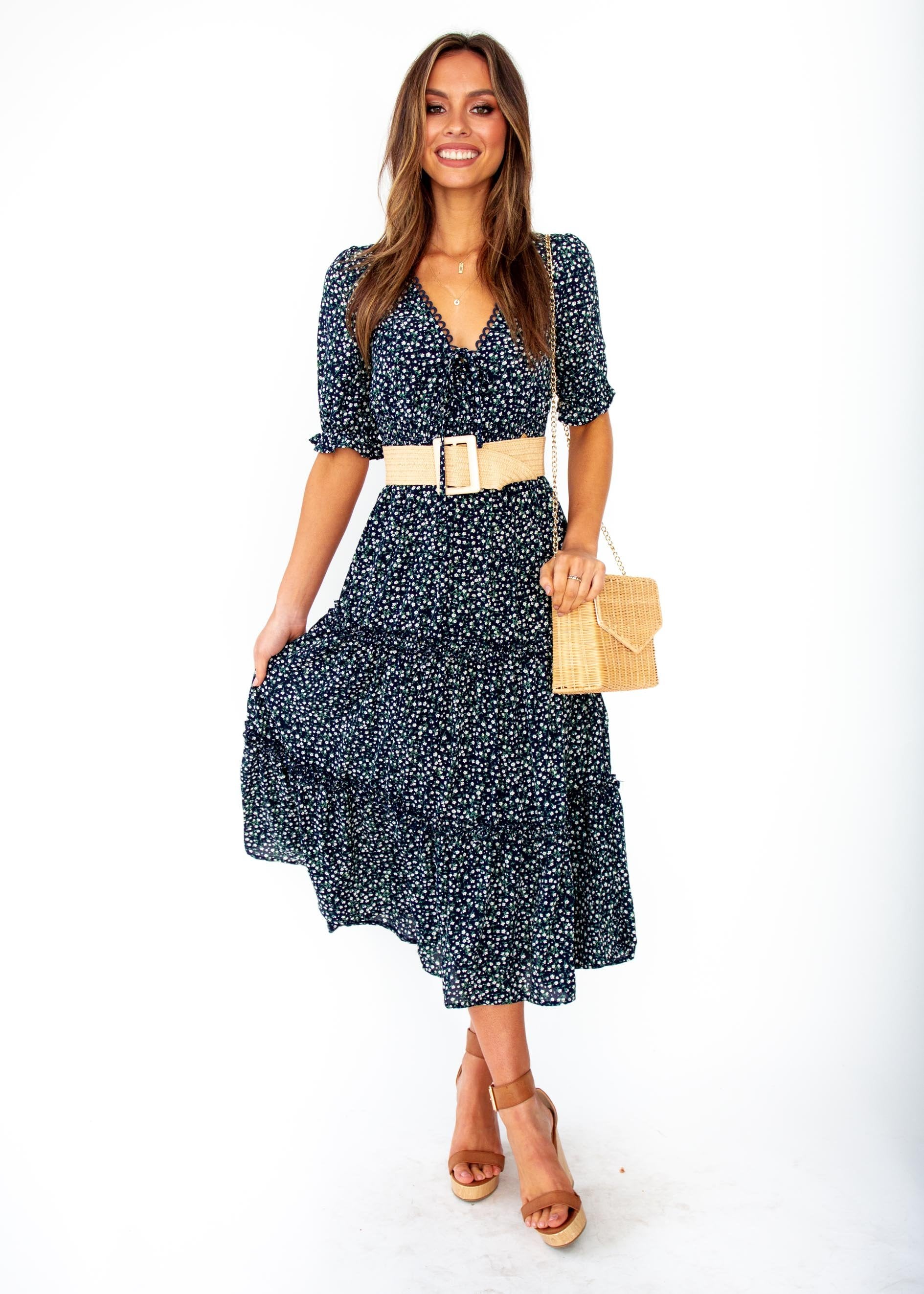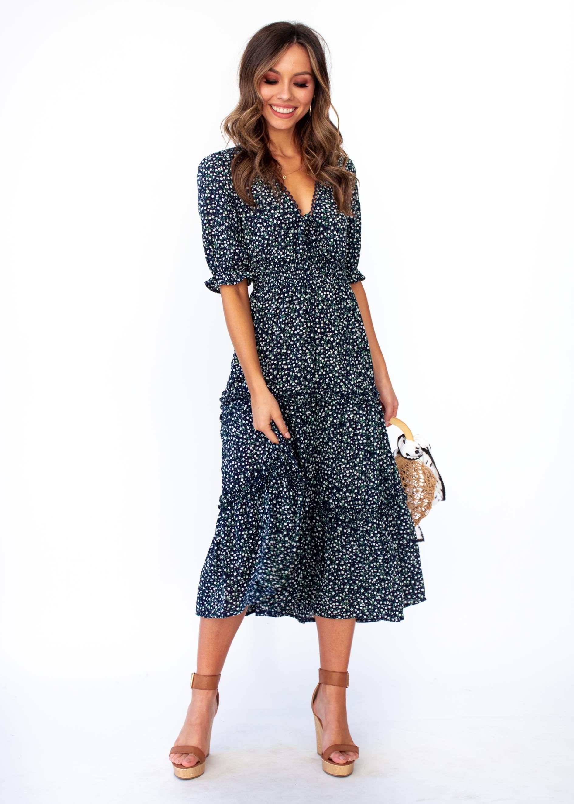 The dress to fall in love with and in, this gorgeous navy floral midi will have you feeling the romance and looking beautiful.