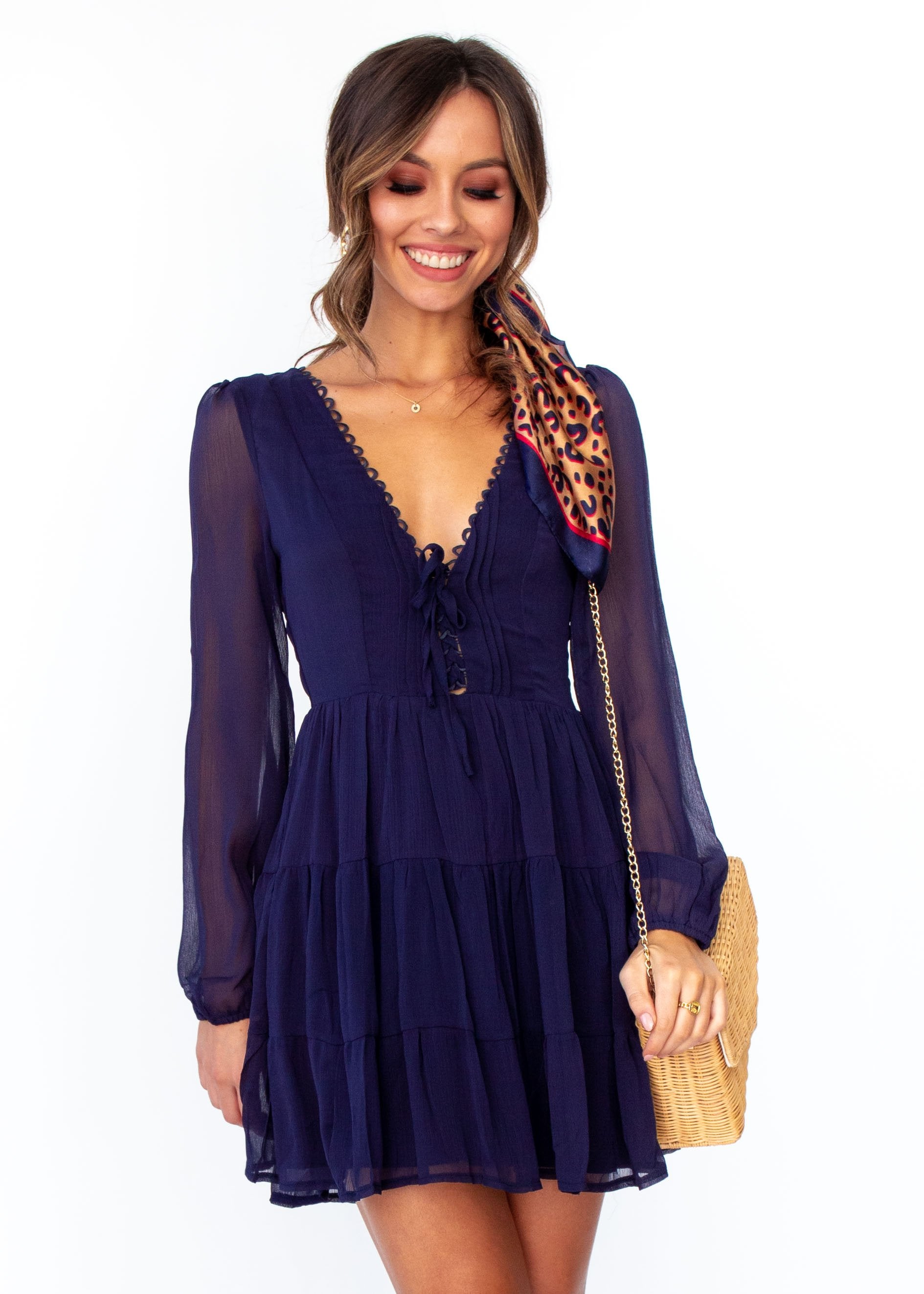 The perfect little dress, this navy long sleeve swing dress is perfect for your next occasion or just a casual day out.