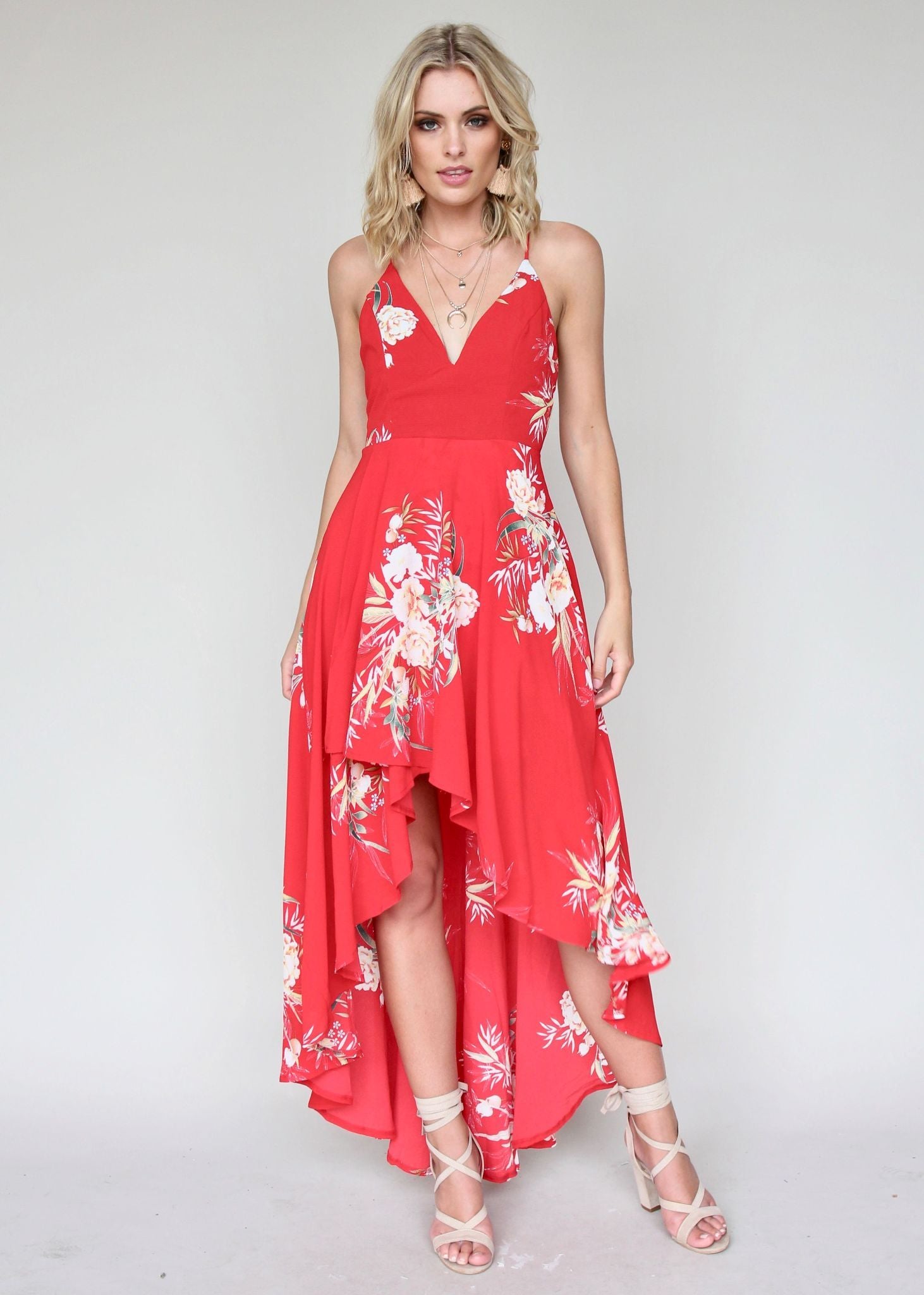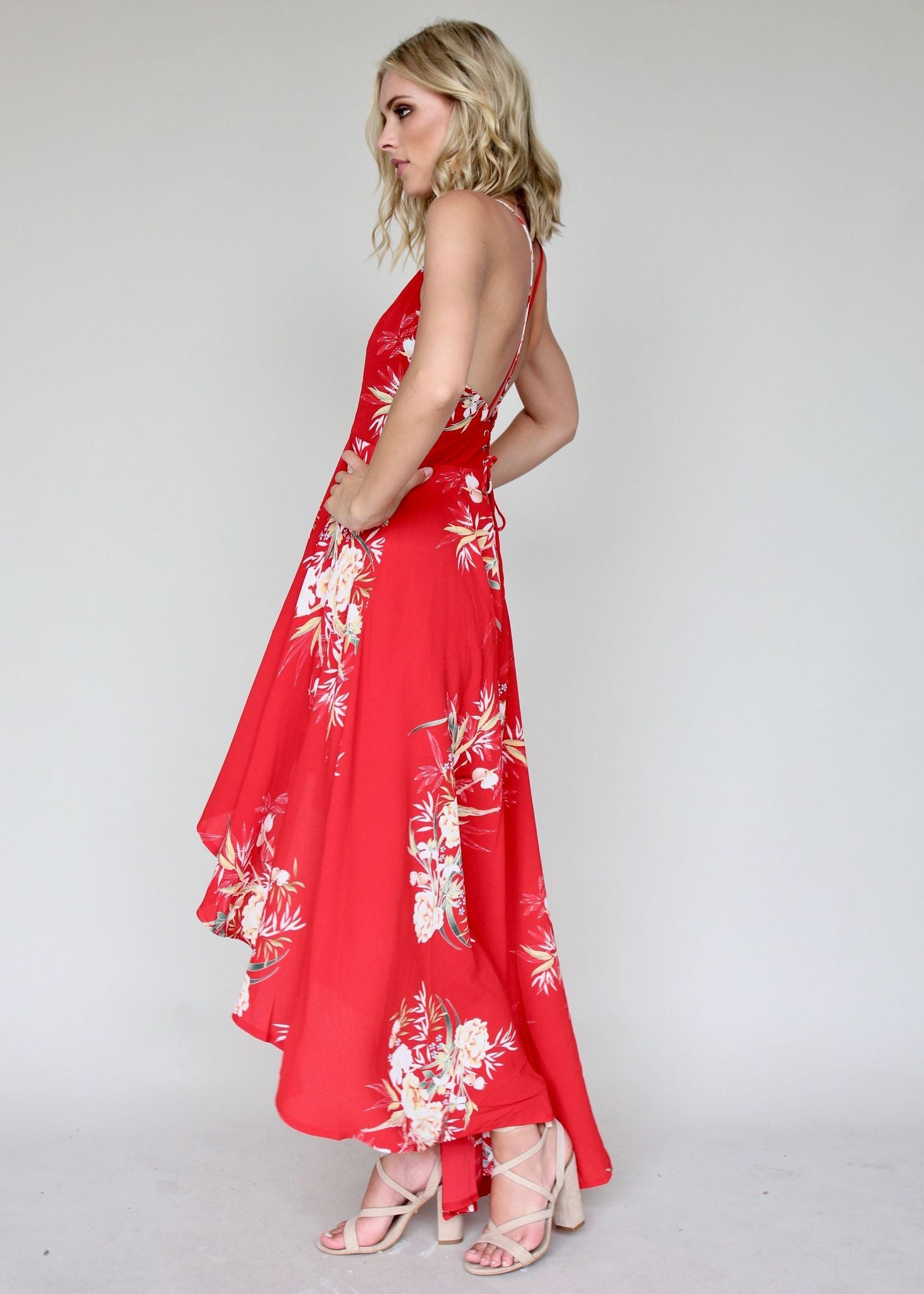 Turn heads with our gorgeous Home Bound Dress! In a stunning red floral, this is great for your next Summer event.