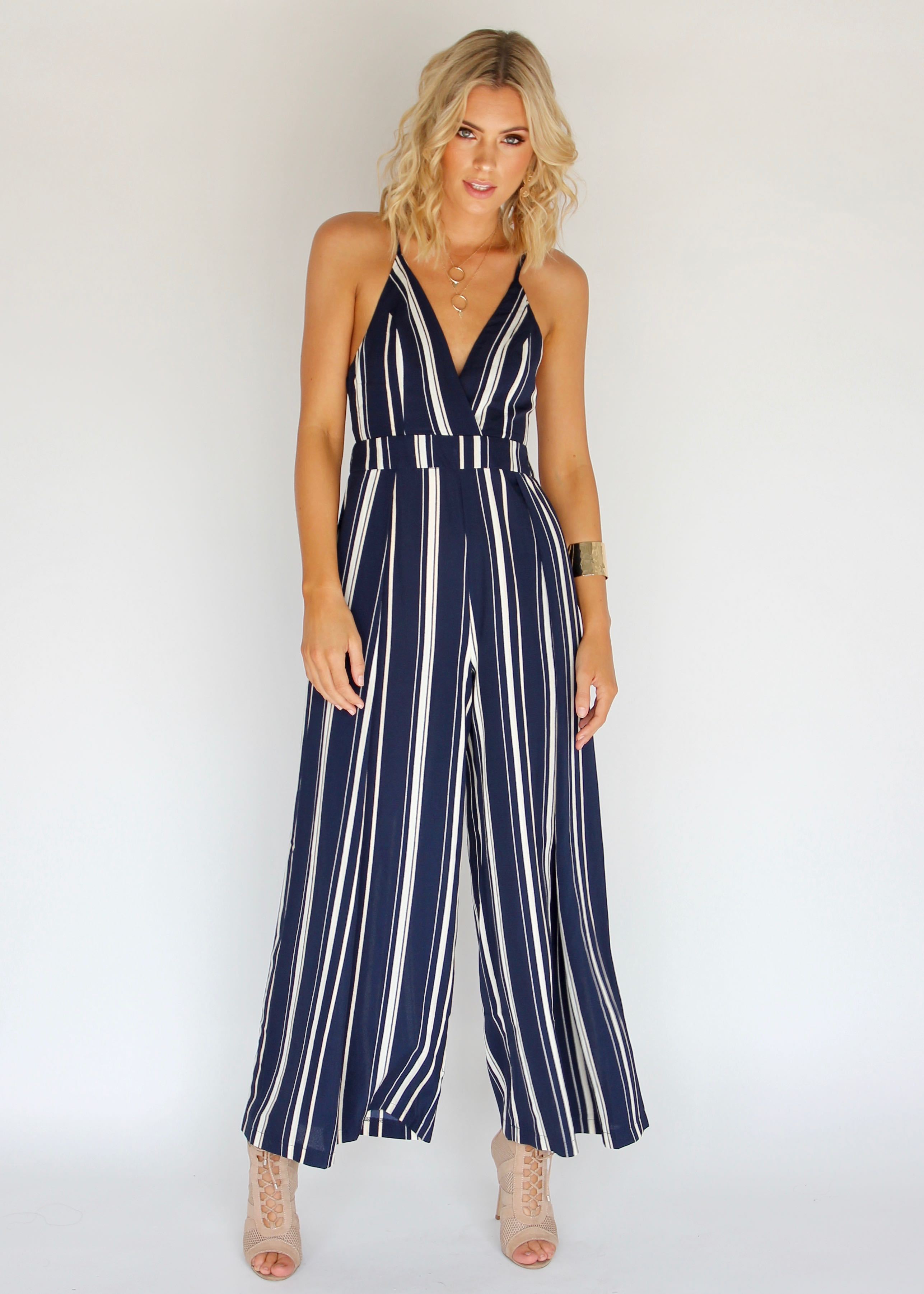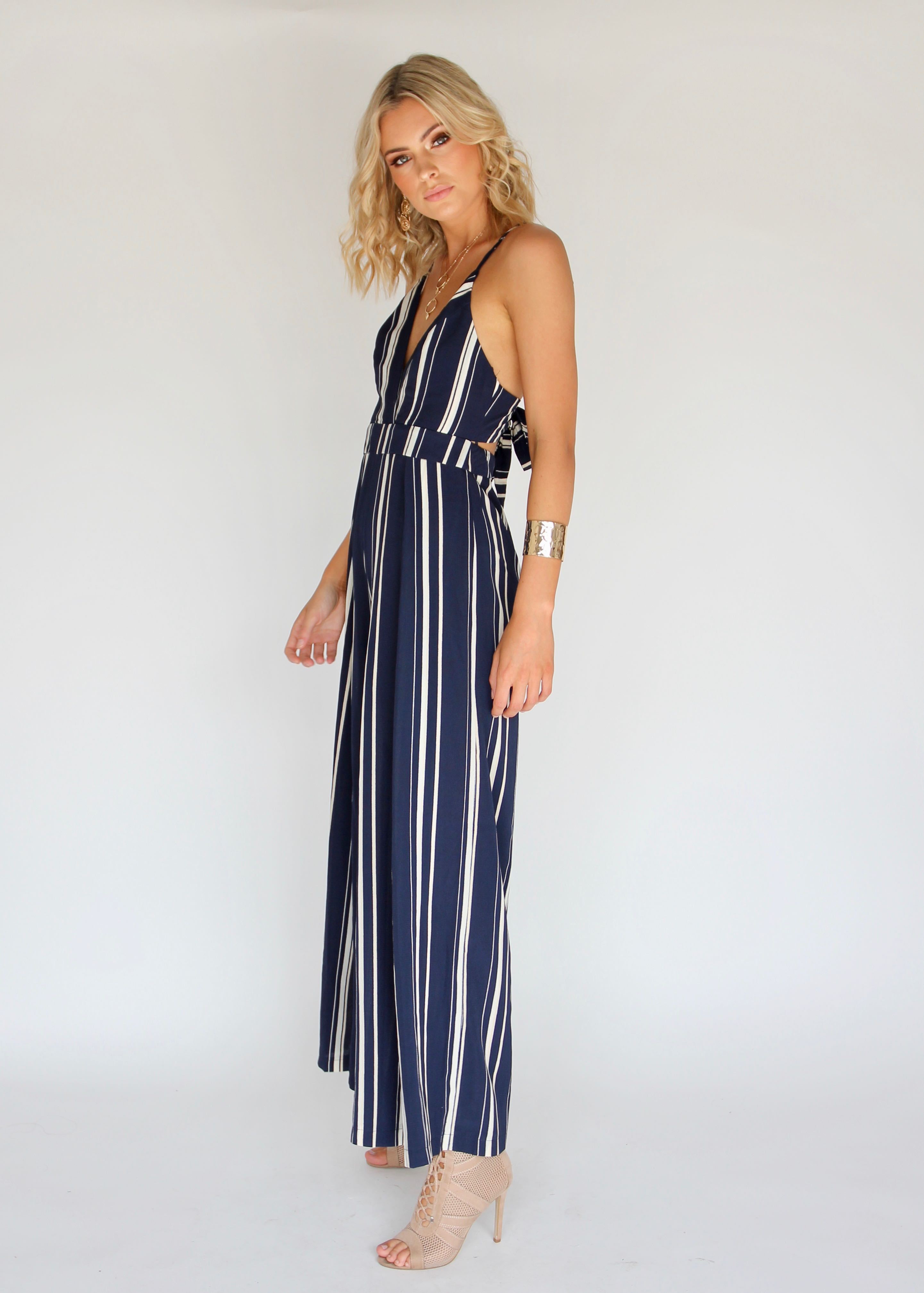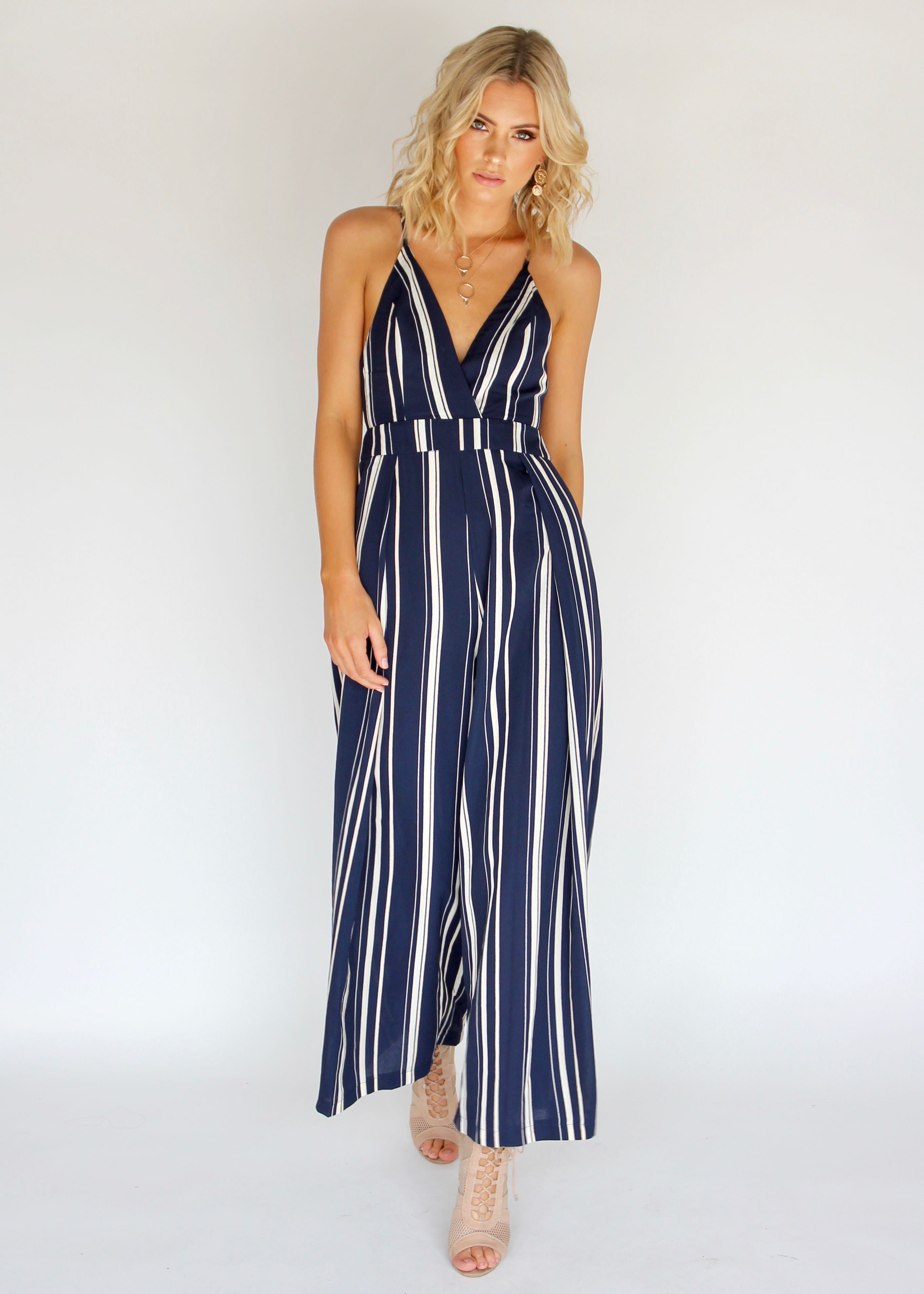 The perfect all in one outfit, ready to go! In a gorgeous stripe print, you will not want to miss this as Spring nears.