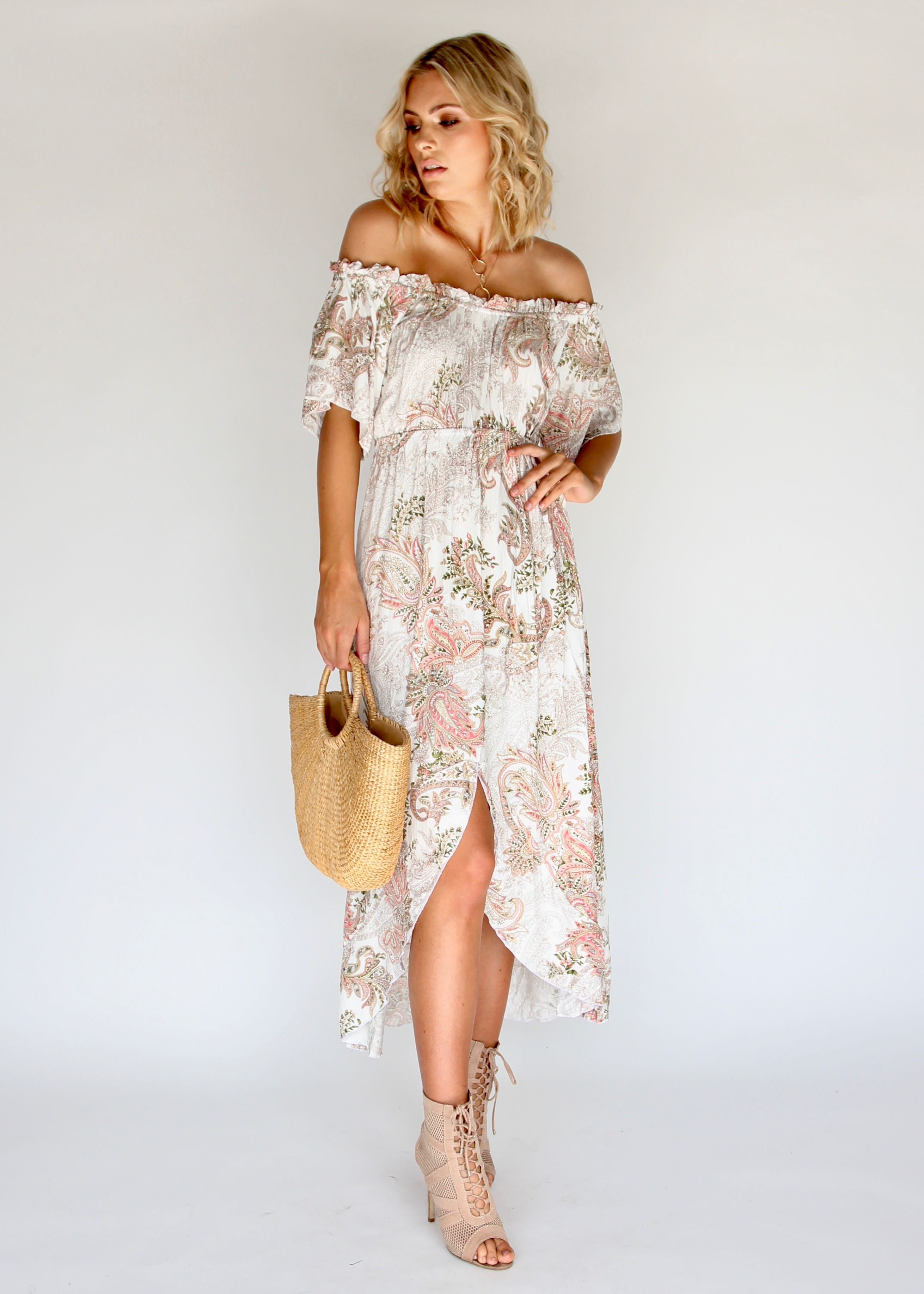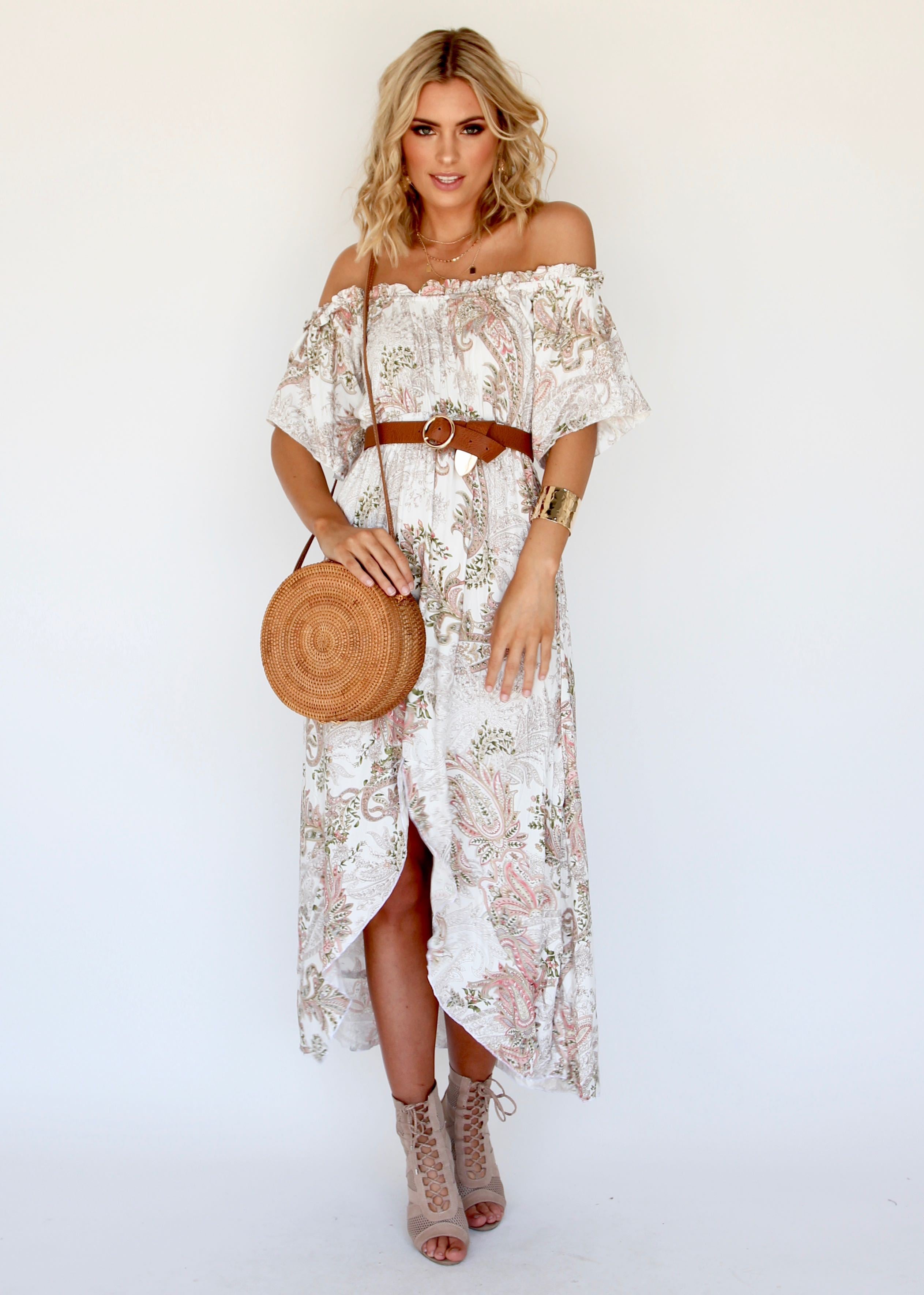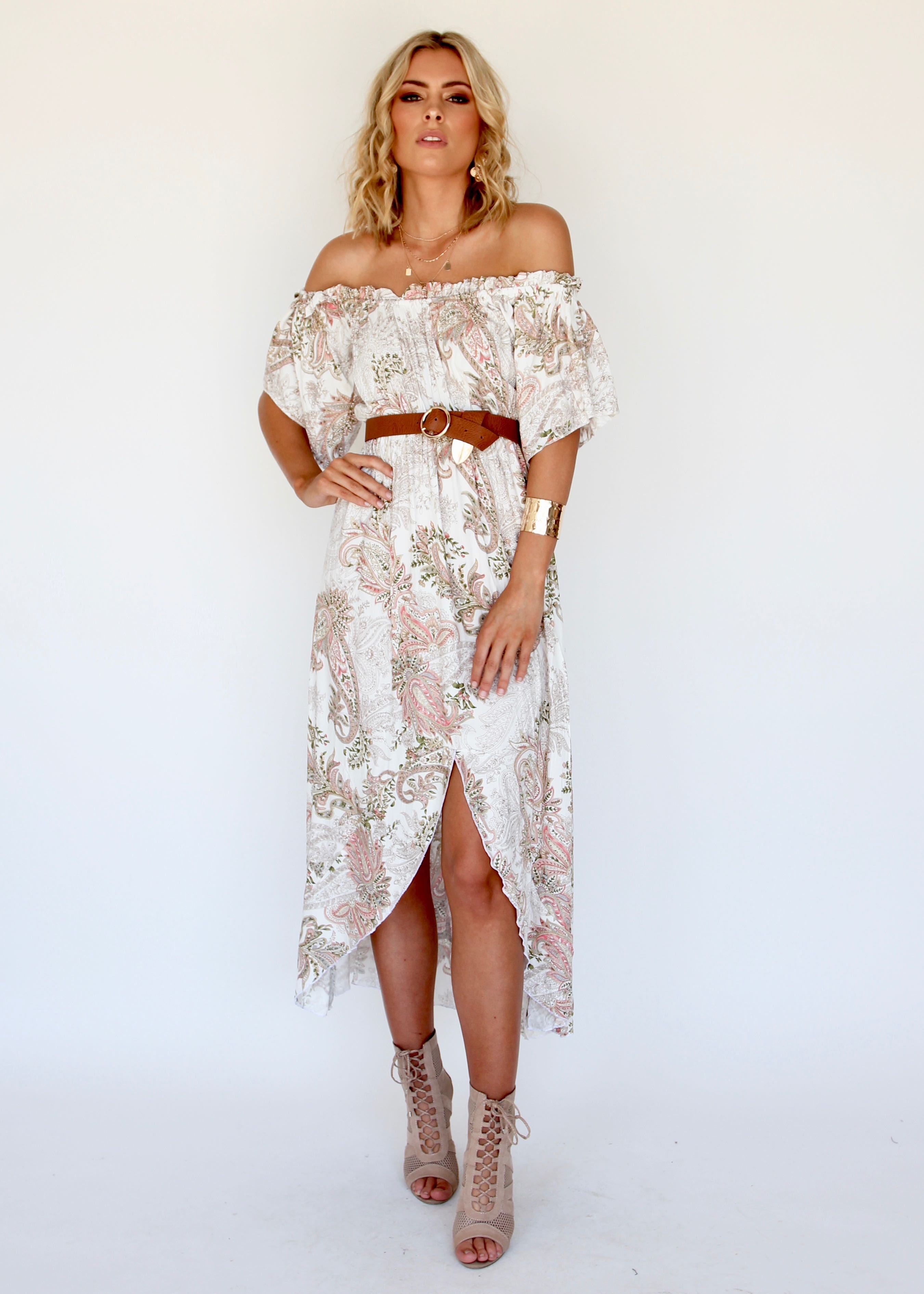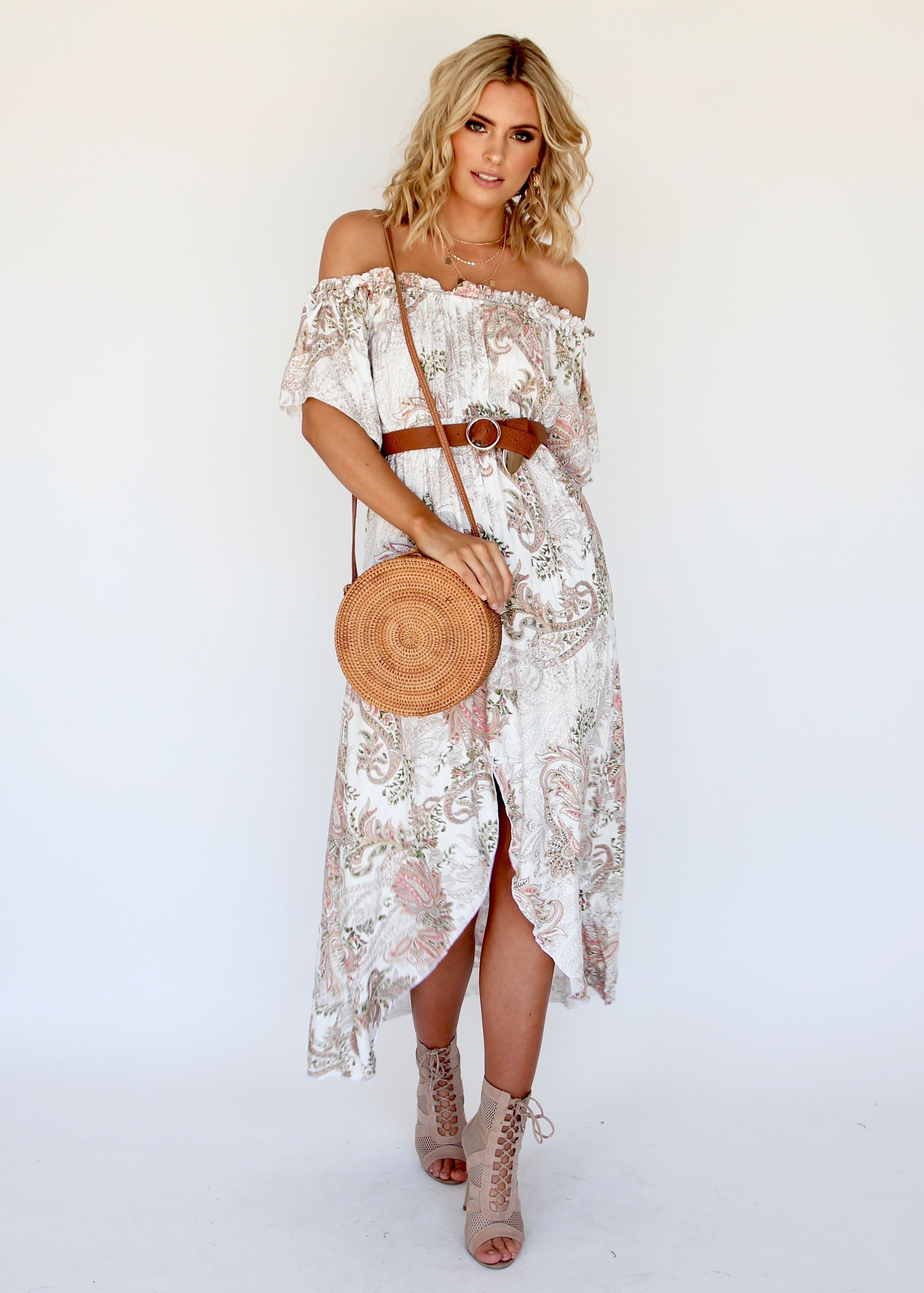 Calling all boho lovers, this one is for you! An easy to wear swing dress in a gorgeous light paisley print.