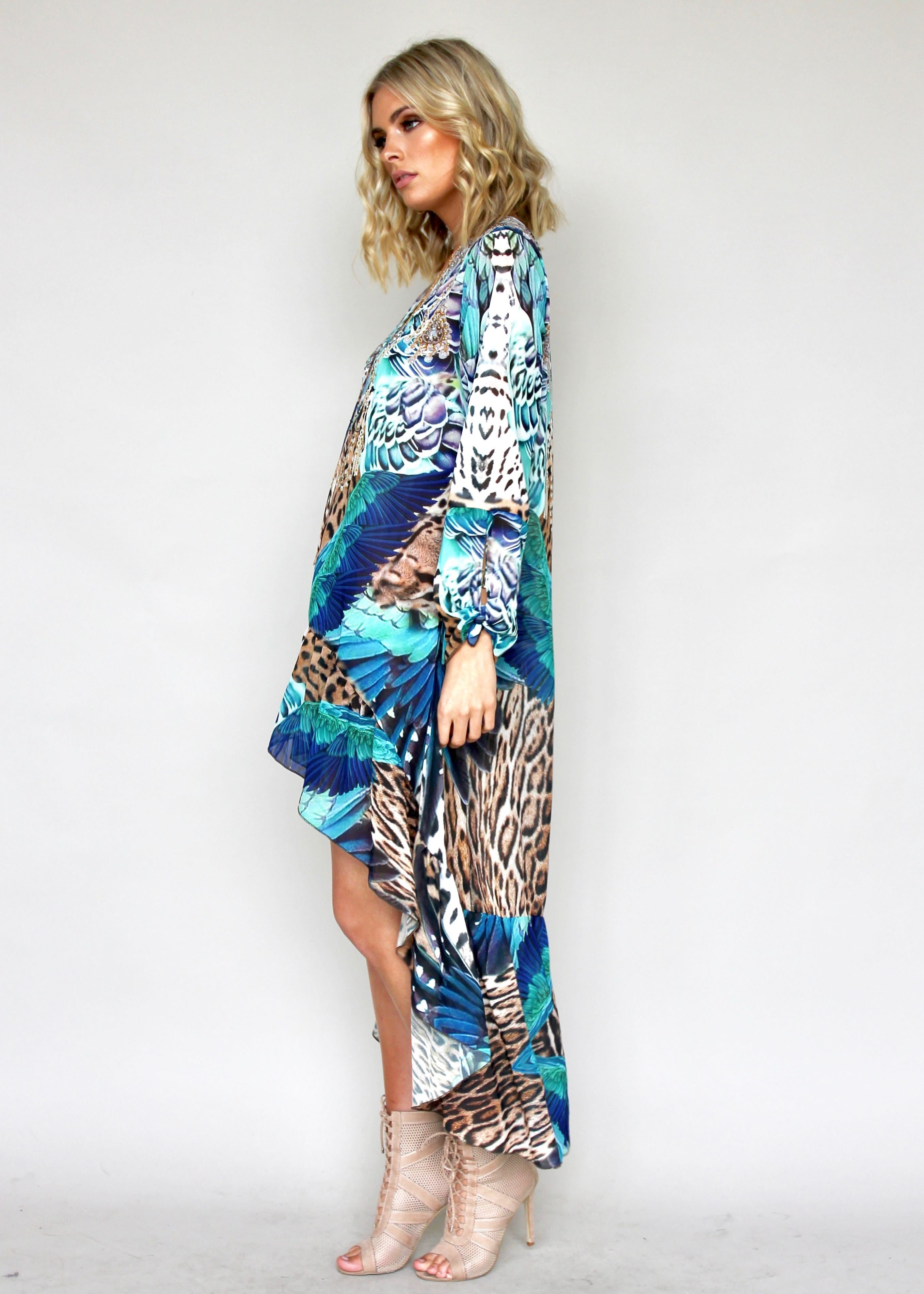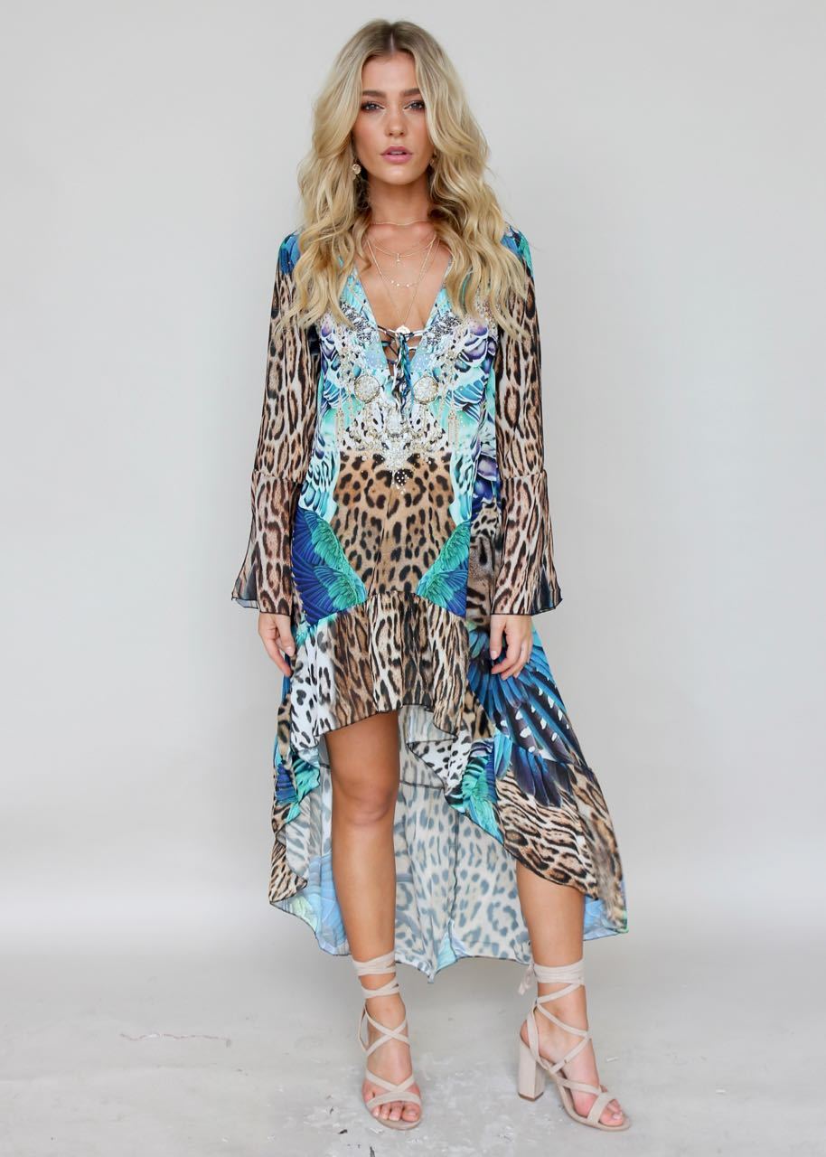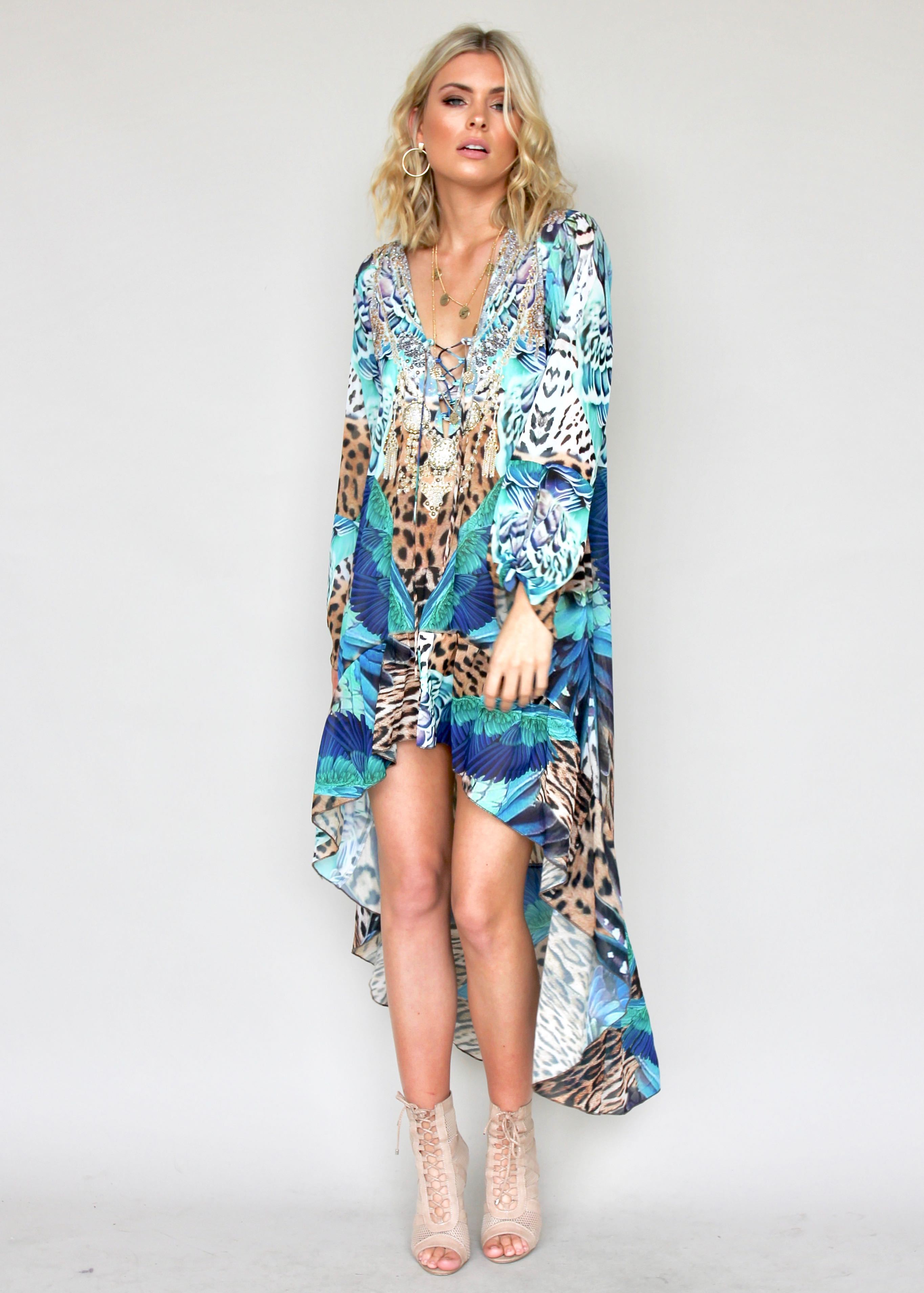 Holiday mode never looked so good with our easy to wear Off Shores Kaftan! In a gorgeous print, you'll love this. A perfect addition to your Summer wardrobe! Wear it over your swimwear, or on it's own as a loose kaftan.